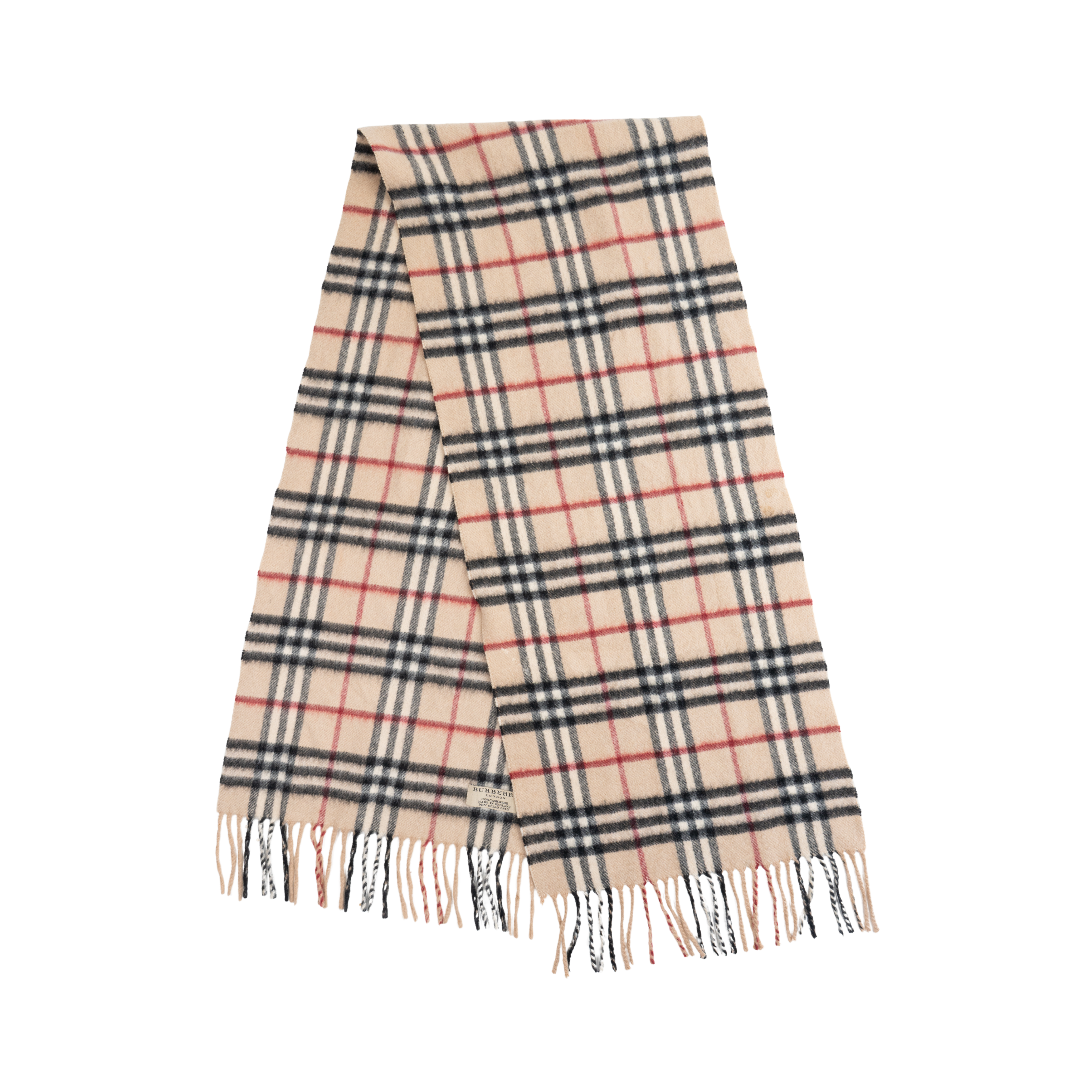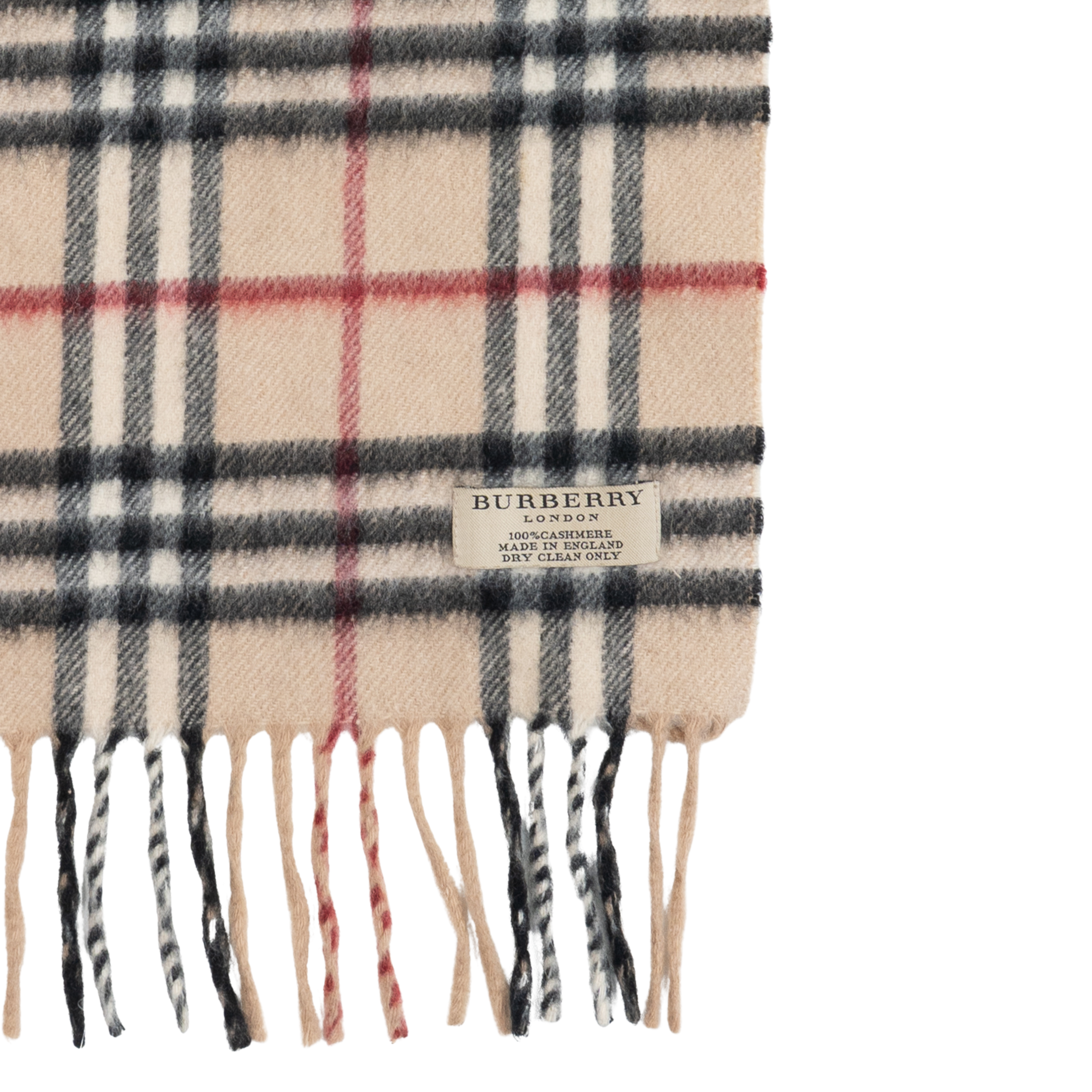 Burberry scarf in beige classic 'novacheck' patterned cashmere with tassel ends and a small logo tag.