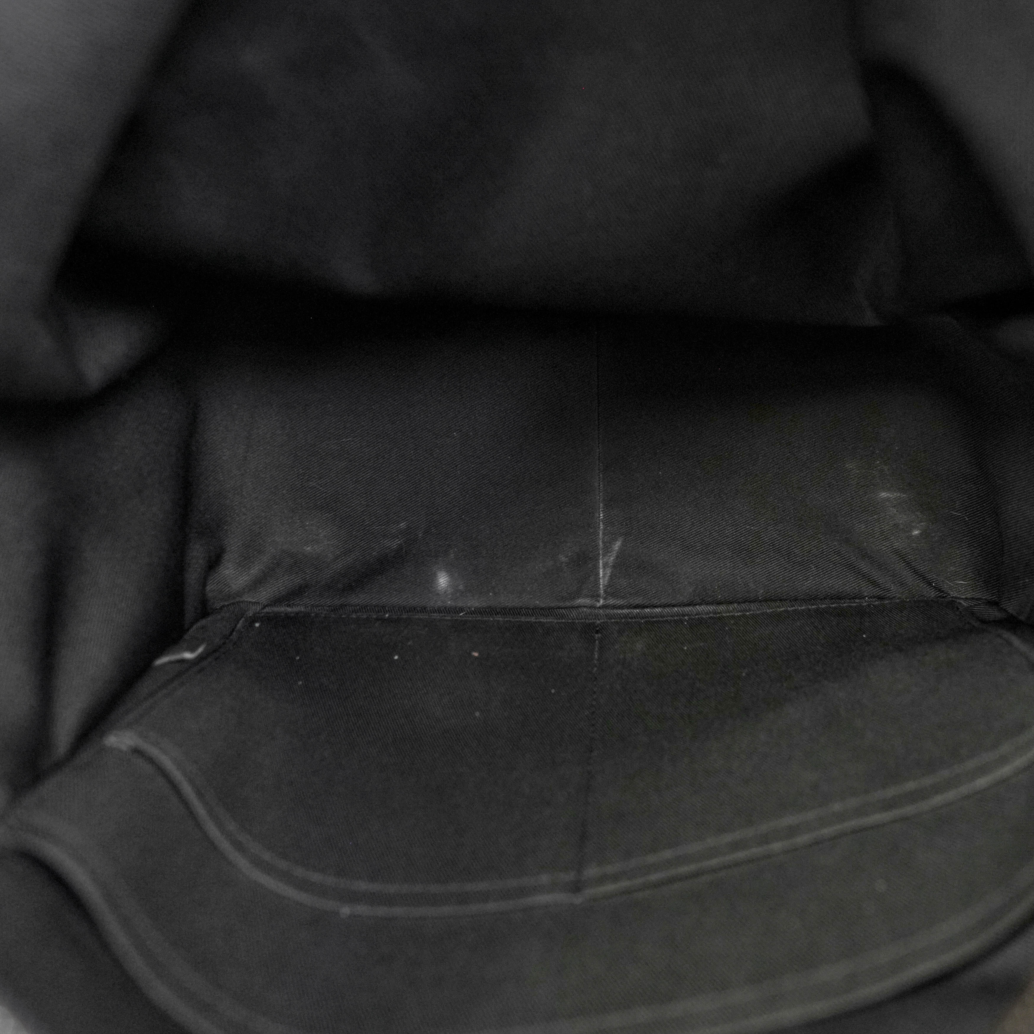 Good. Light wear to canvas and leather at front pocket, some scratching at left side by base, light wear to leather straps.