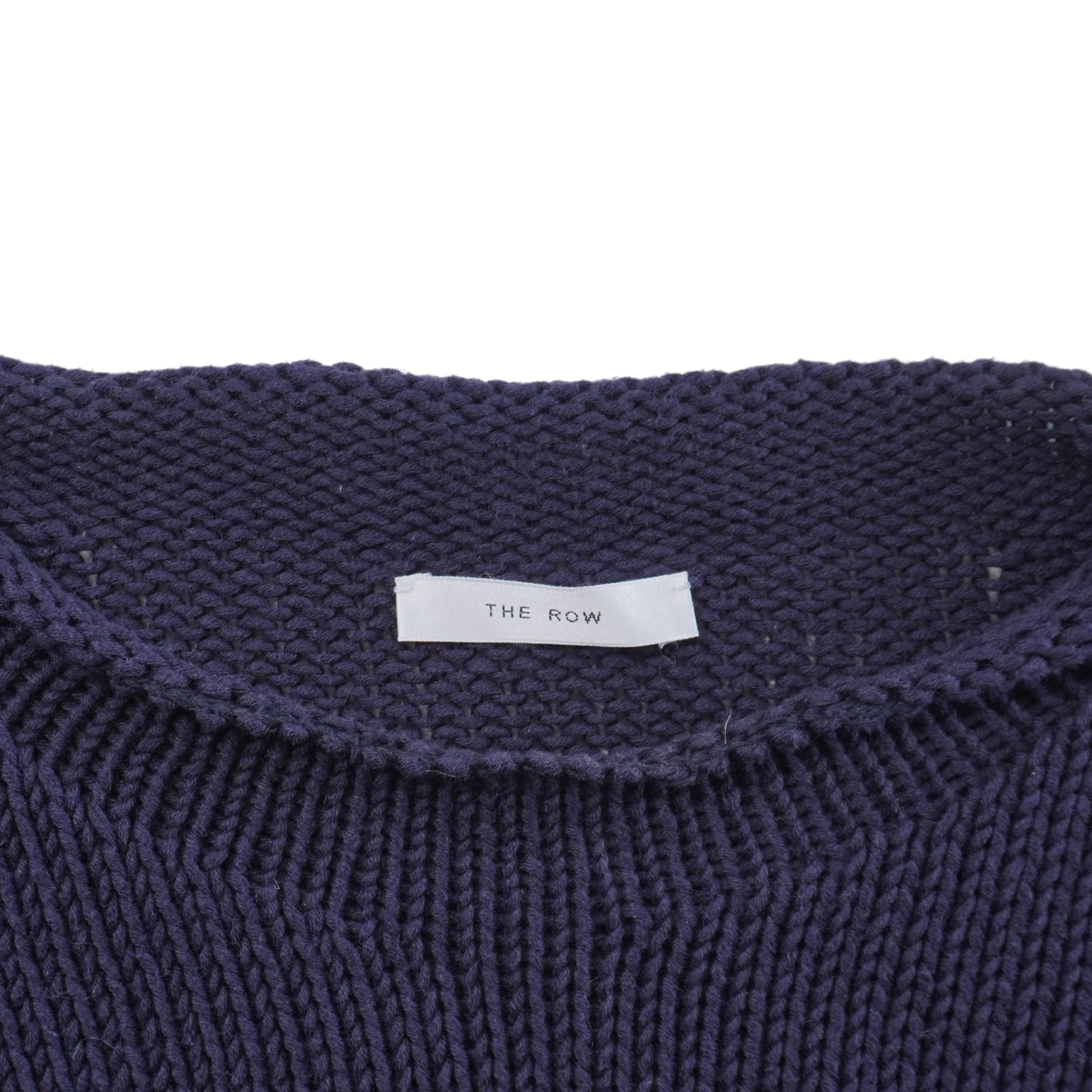 The Row oversized knit sweater in a navy cotton and cashmere blend.