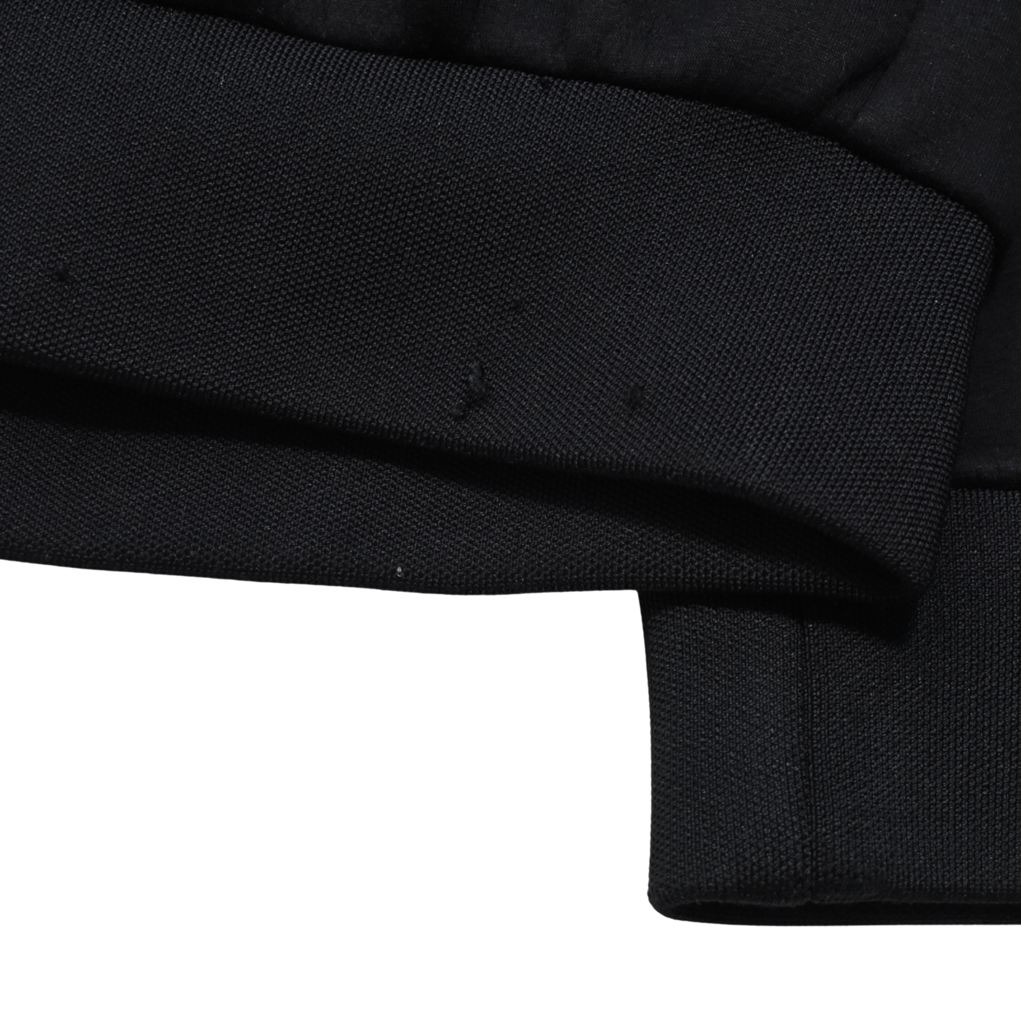 Fendi black bomber jacket in padded cotton with black, blue, and yellow leather butterfly featuring signature 'Monster Eyes' motif. Features a black two-way zipper, slit pockets, and navy logo embroidery along the waistband.