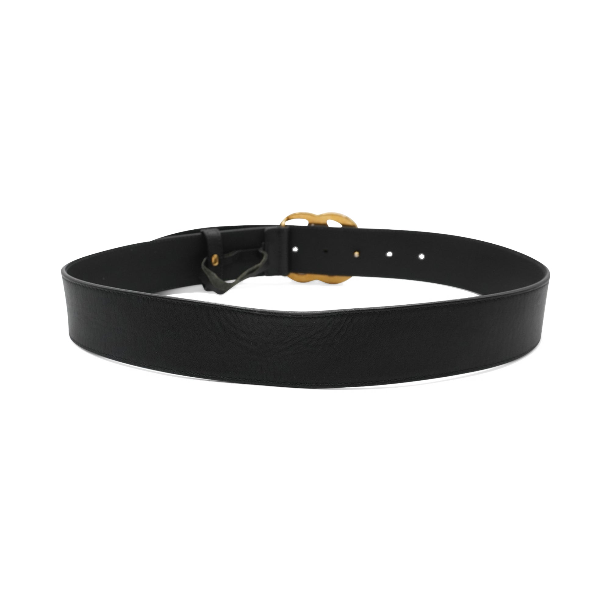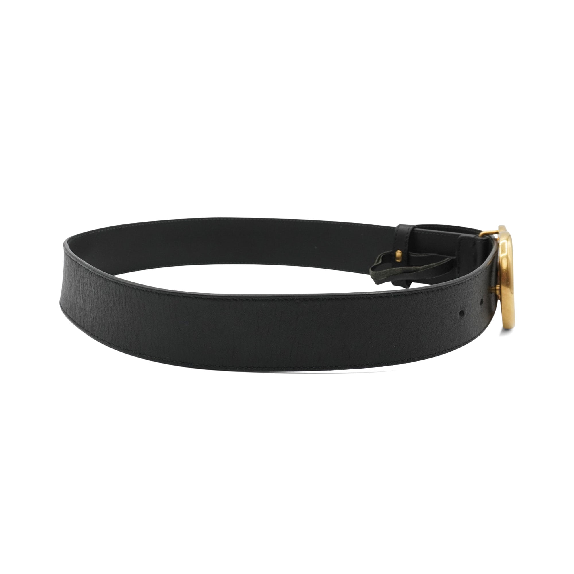 Gucci 'Marmont' belt in black smooth leather with a gold 'GG Marmont' buckle.