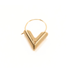 Louis Vuitton 'Essential V' old hoop earrings with thick gold V details and a thin hoop through the ear.