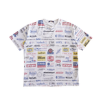Louis Vuitton 'Logomania' t-shirt in white cotton with an all-over multicolour logo graphic print.