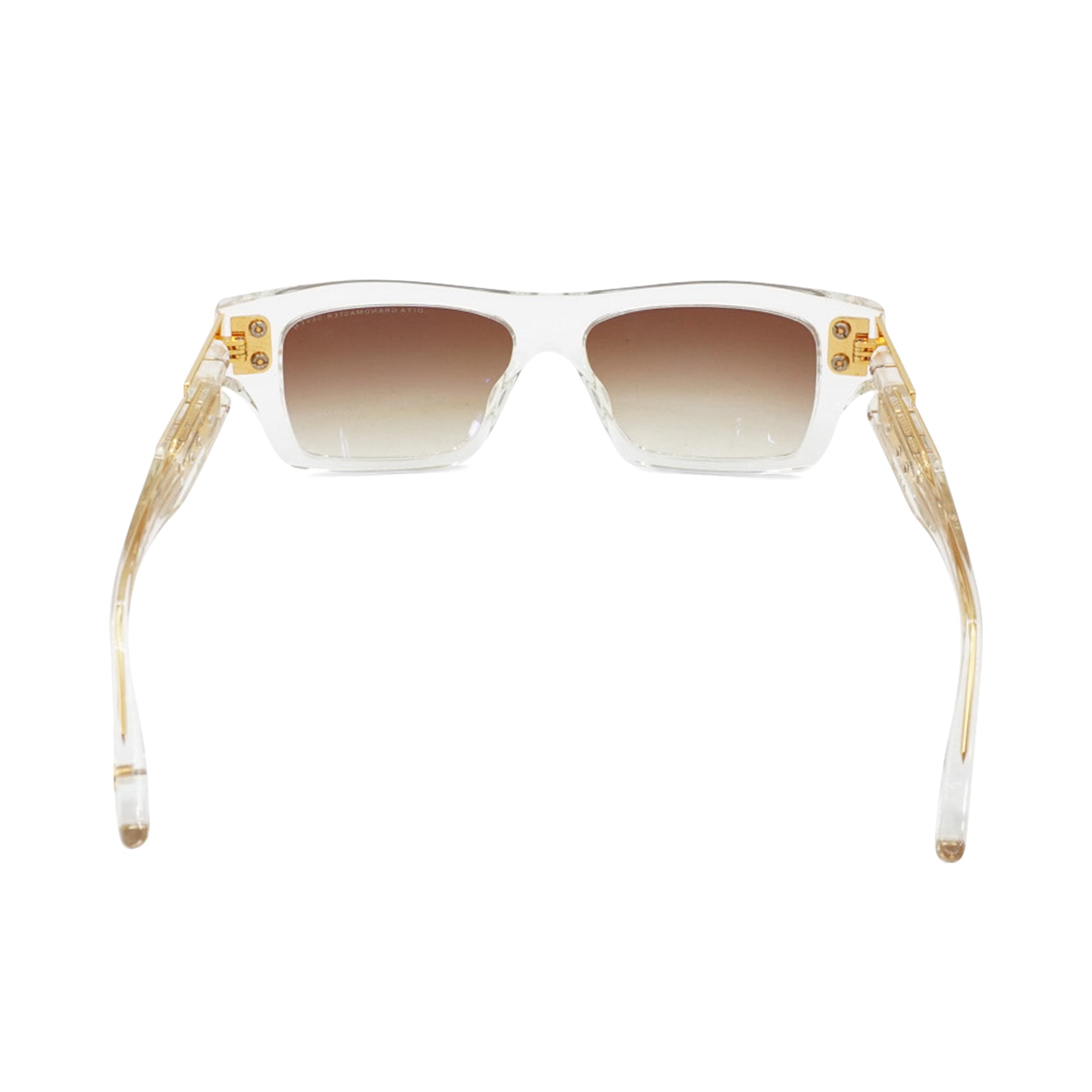 Dita 'Grandmaster 7' wayfarer sunglasses in clear acetate with gold hardware trim on the arms and a brown ombre lens.