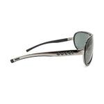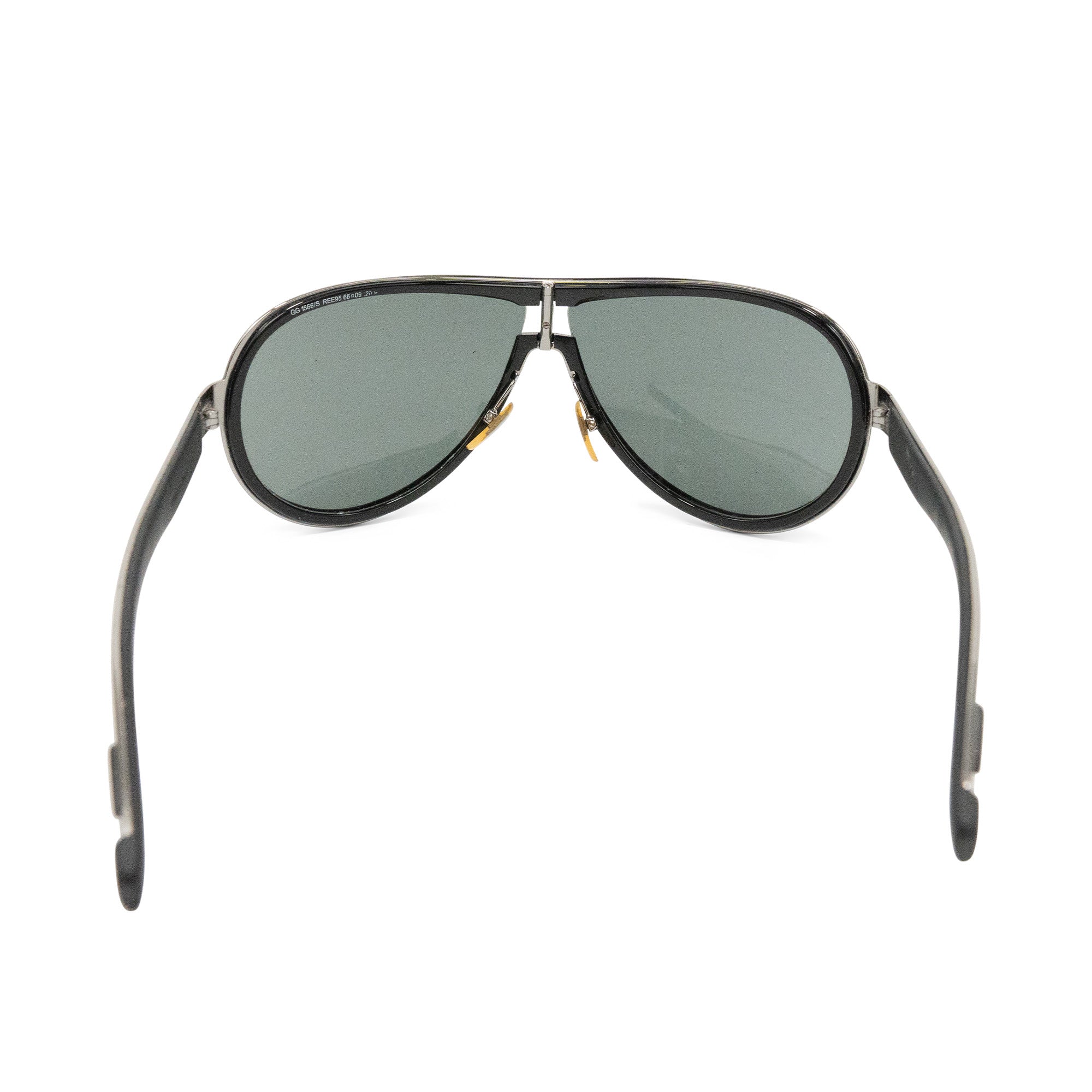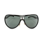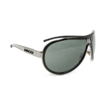 Gucci aviator sunglasses in black acetate with silver arms and rubber logo.