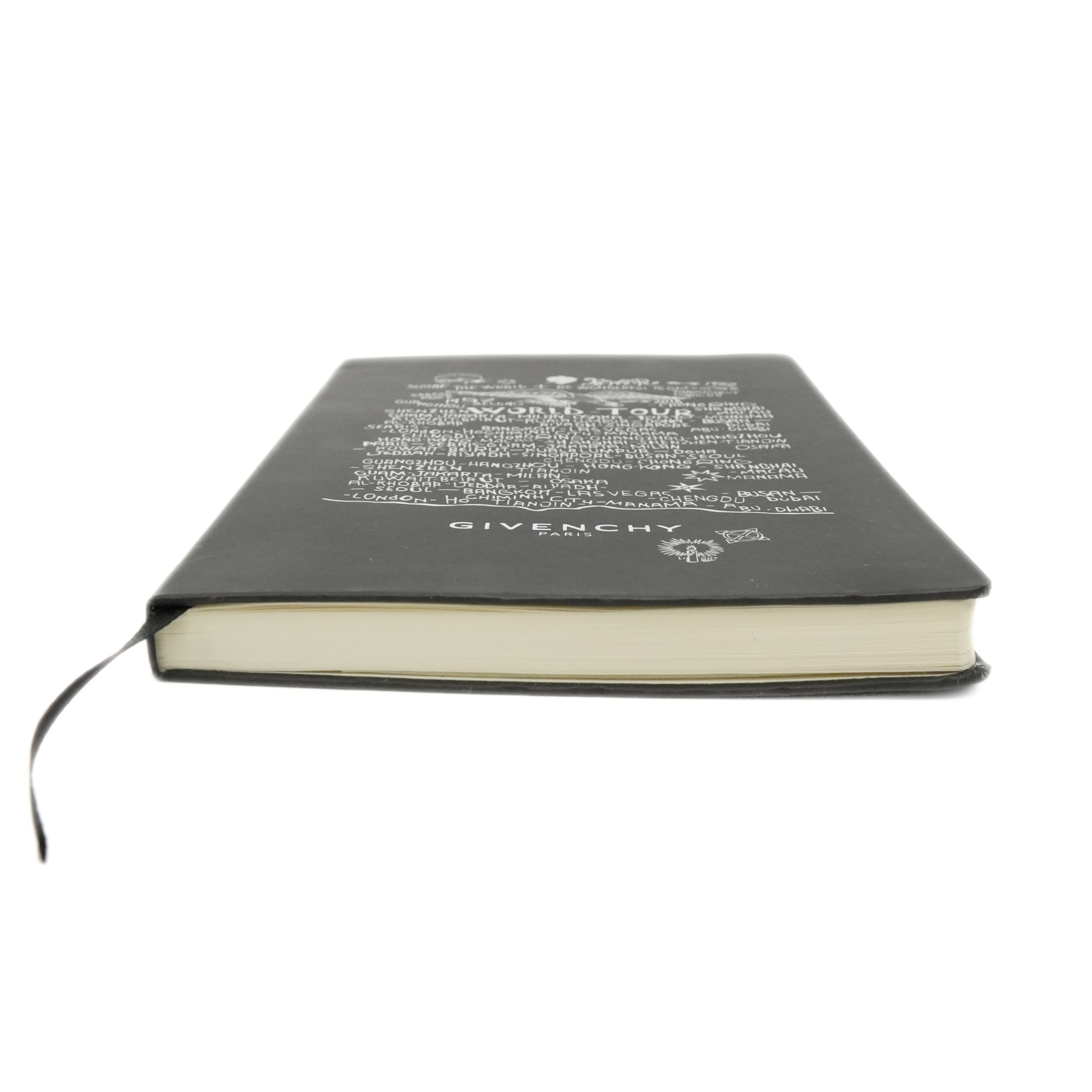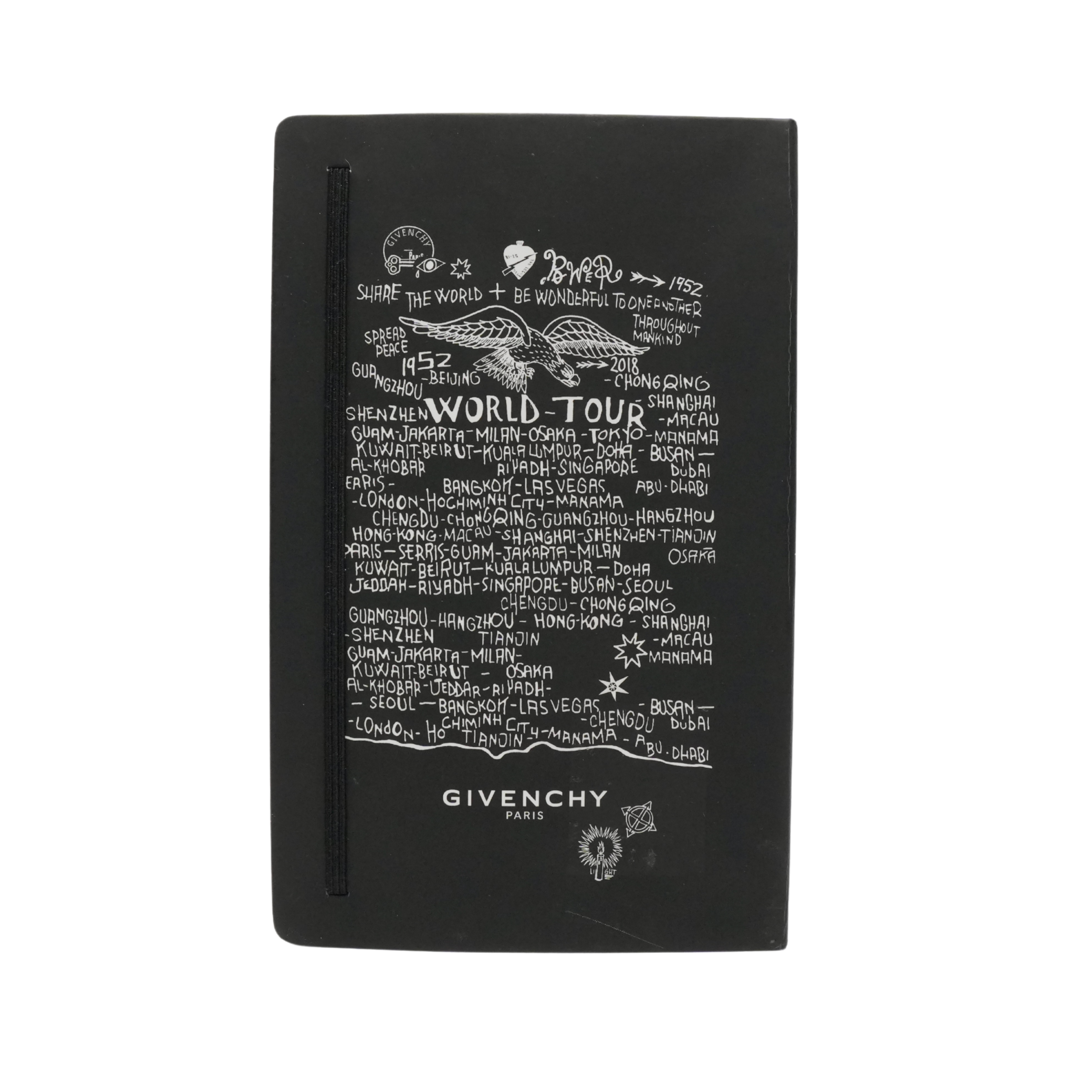 Givenchy 'World Tour' notebook with a black cover with white 'World Tour' logo doodle graphics across the front.