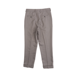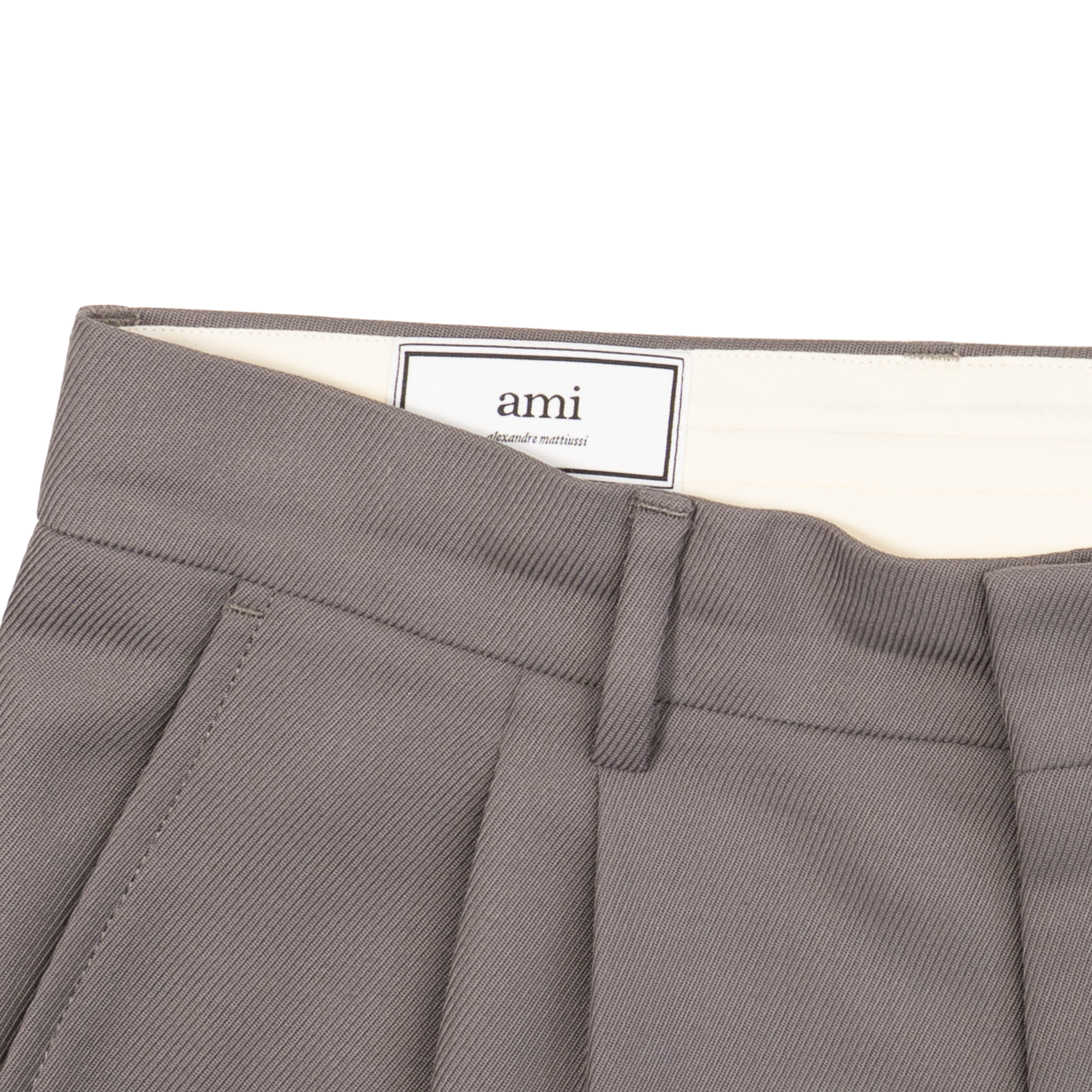 Ami high waisted, slim straight trousers in a medium grey. Features pleating on the legs, belt loops, a hidden hook closure, cuffs at the ankles, hand pockets on the front, and welt pockets on the back.