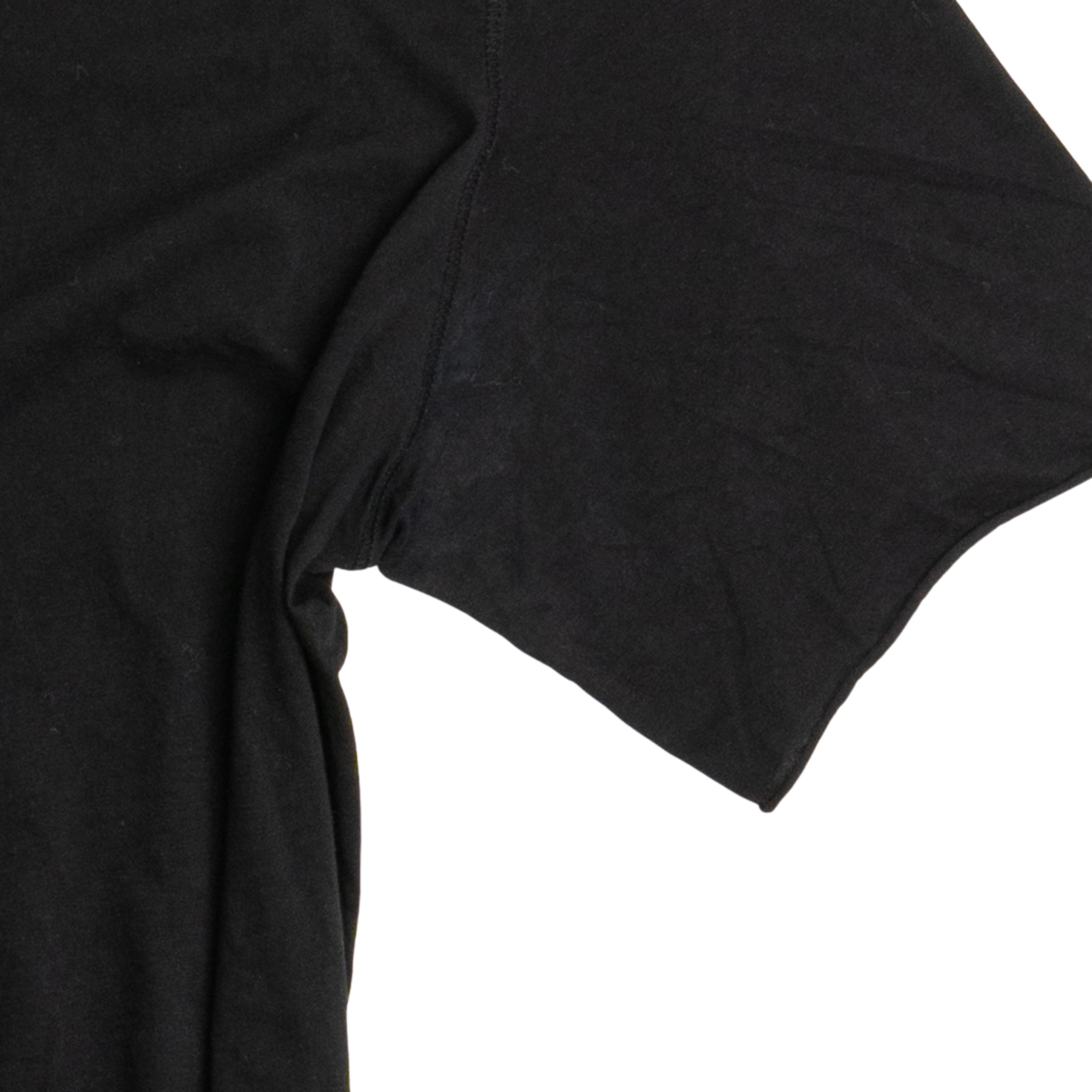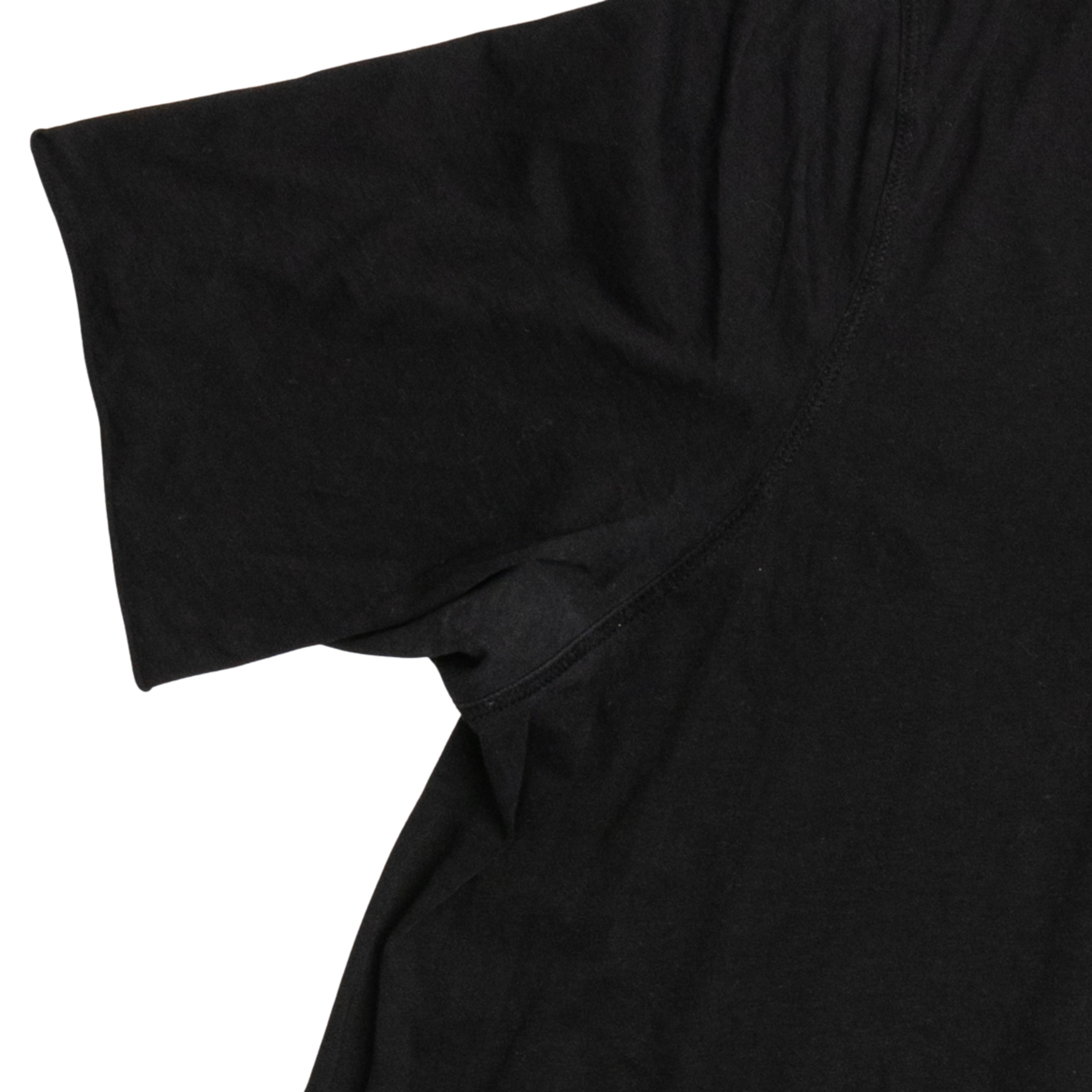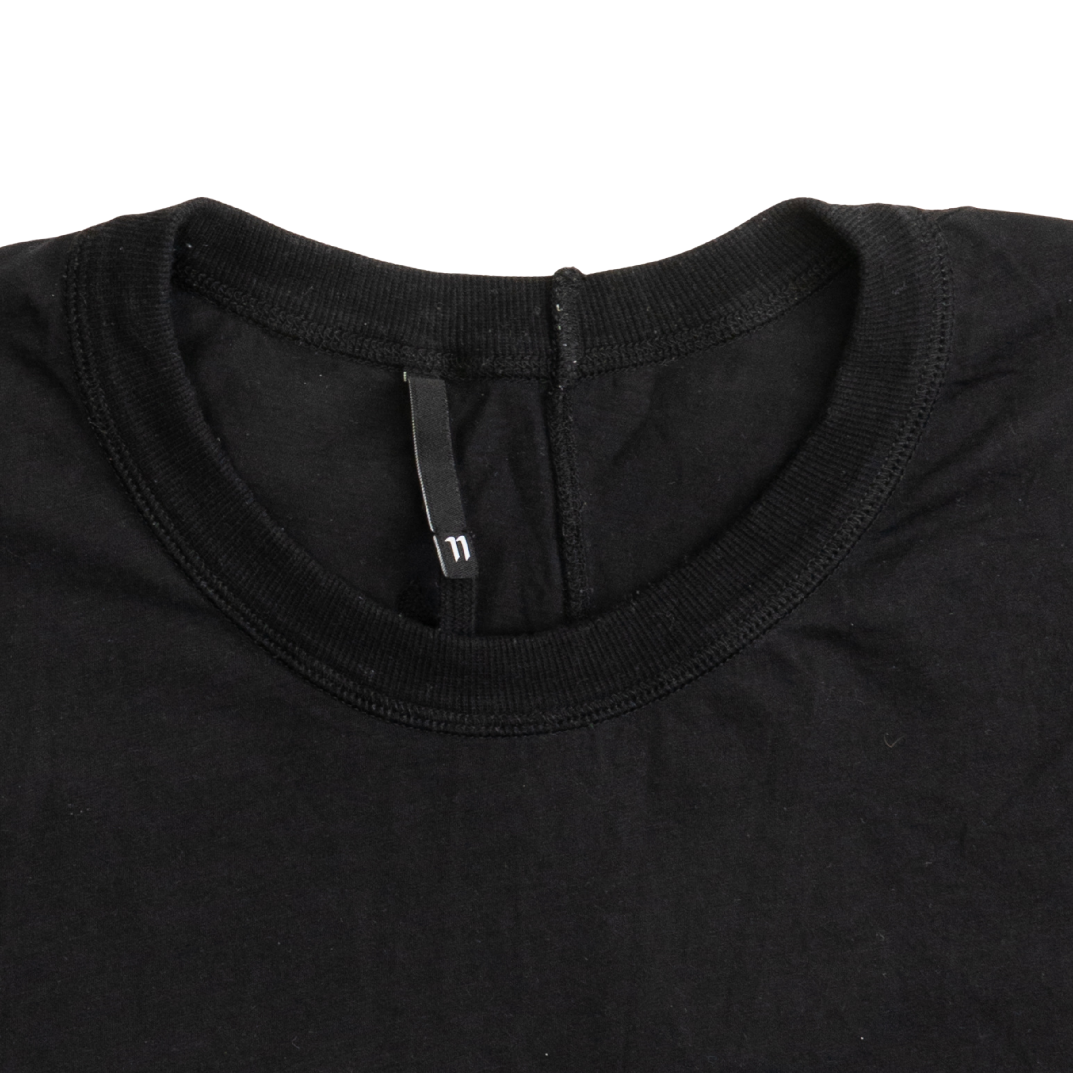 Boris Bidjan Saberi long t-shirt in black cotton with black seam, raw hems and ribbed neckline.