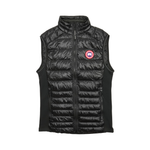 Canada Goose 'Hybridge Lite' quilted, light weight puffer vest in black nylon with stretch panels on the sides. Features embroidered logo patch on front, double zip closure and zipper pockets on the front.