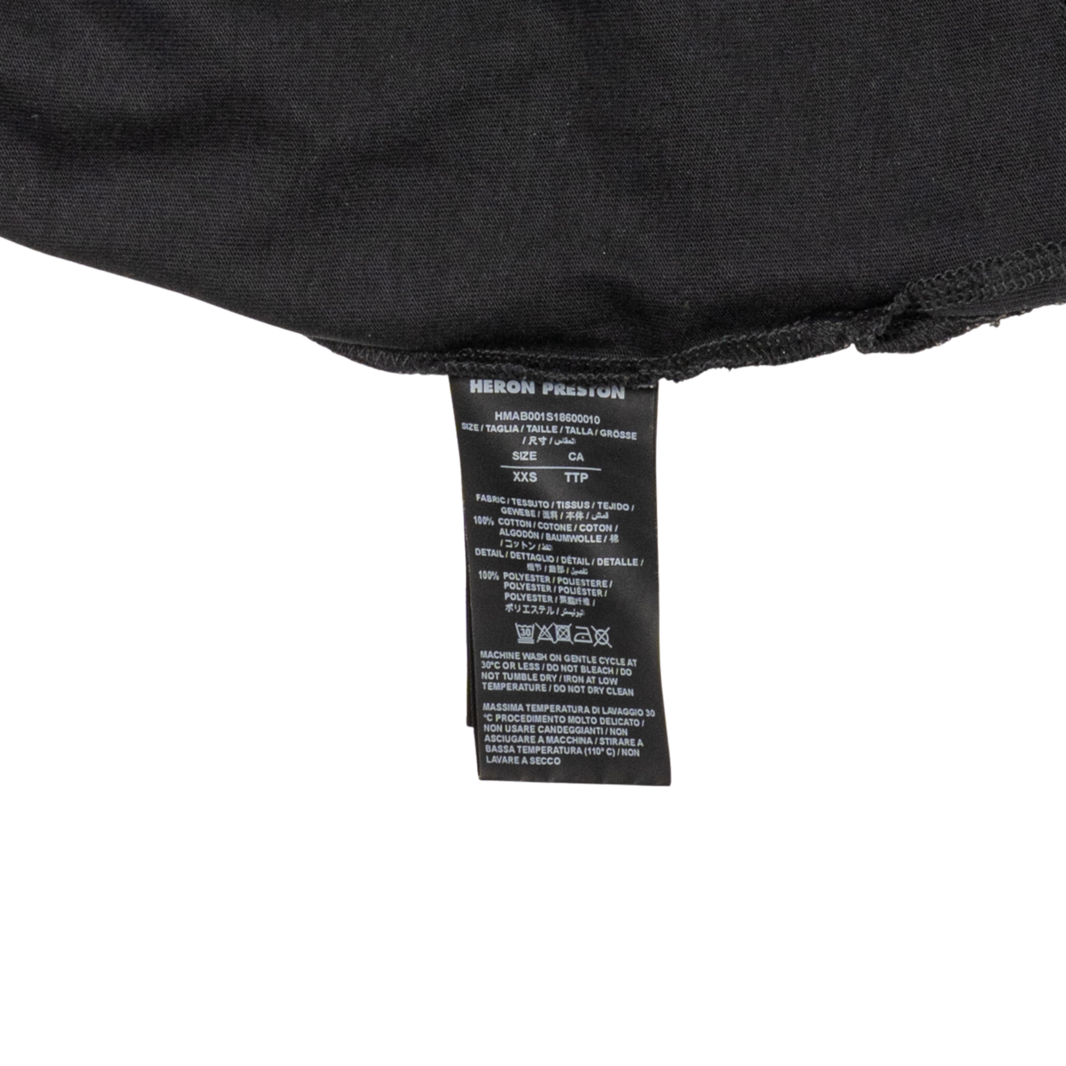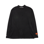 Heron Preston longsleeve mock neck shirt in black cotton with white cyrillic logo and signature orange tag on the sleeve.