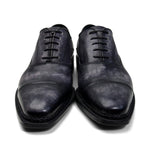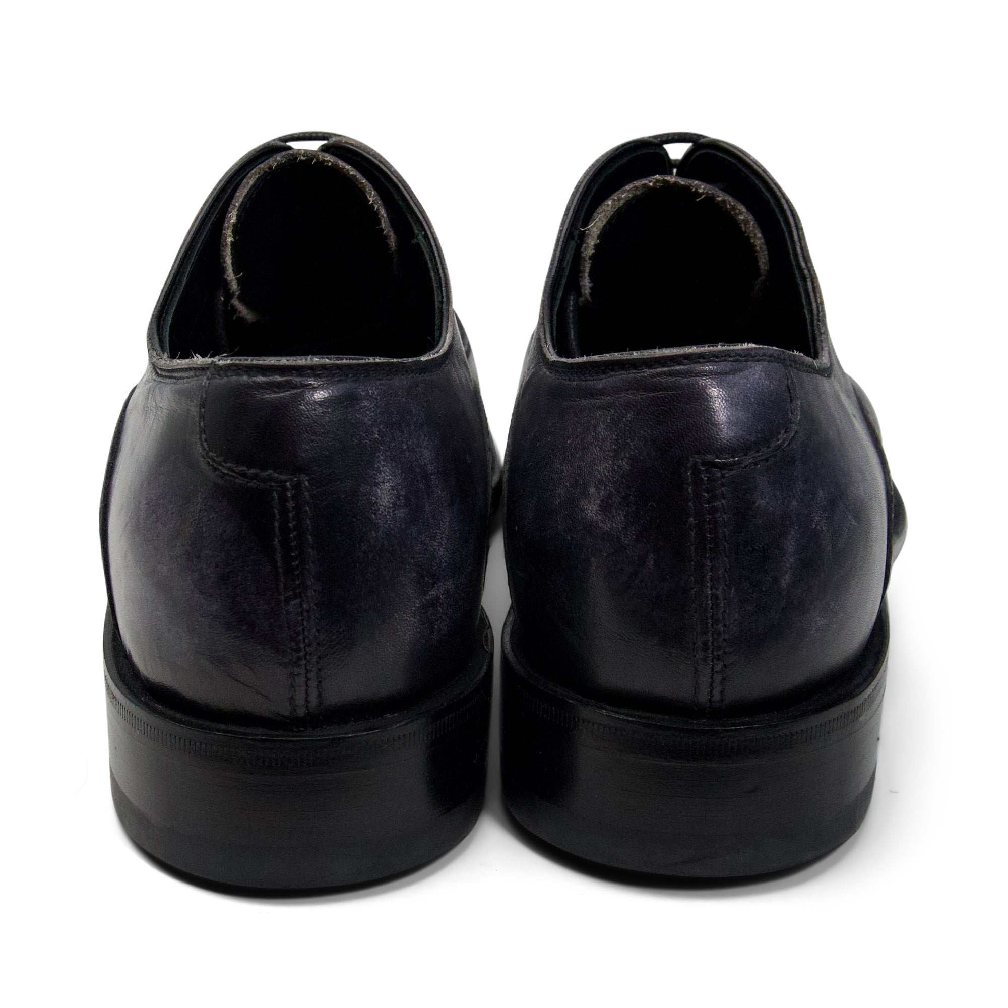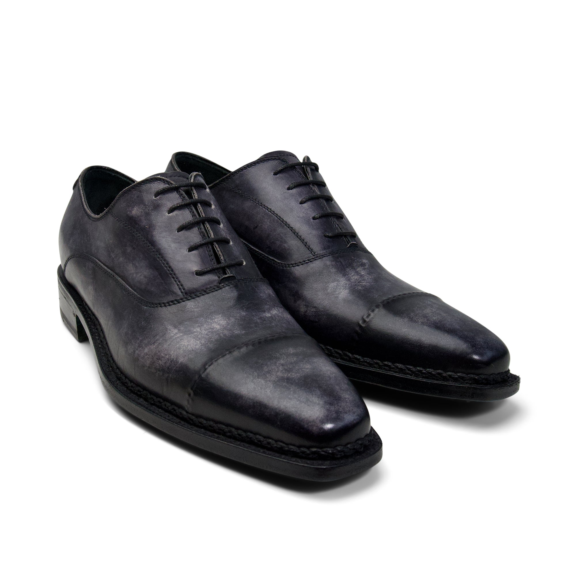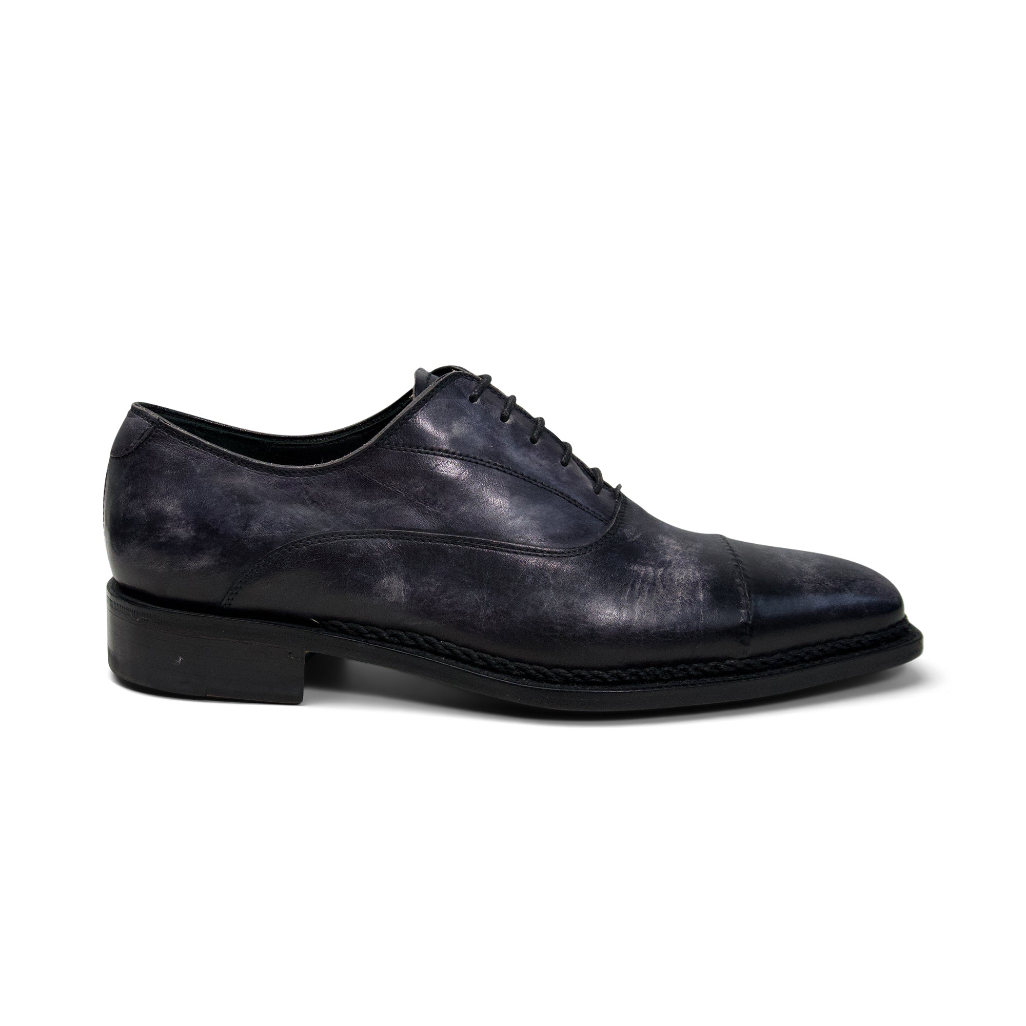 Otto dress shoes in black faded aged leather with a lace up closure and a woven detail around the sole.