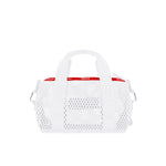 Supreme small mesh duffle bag in white mesh with two webbing top handles and an optional adjustable crossbody strap. Featuring a red box logo on the front and logo zipper tape.