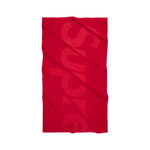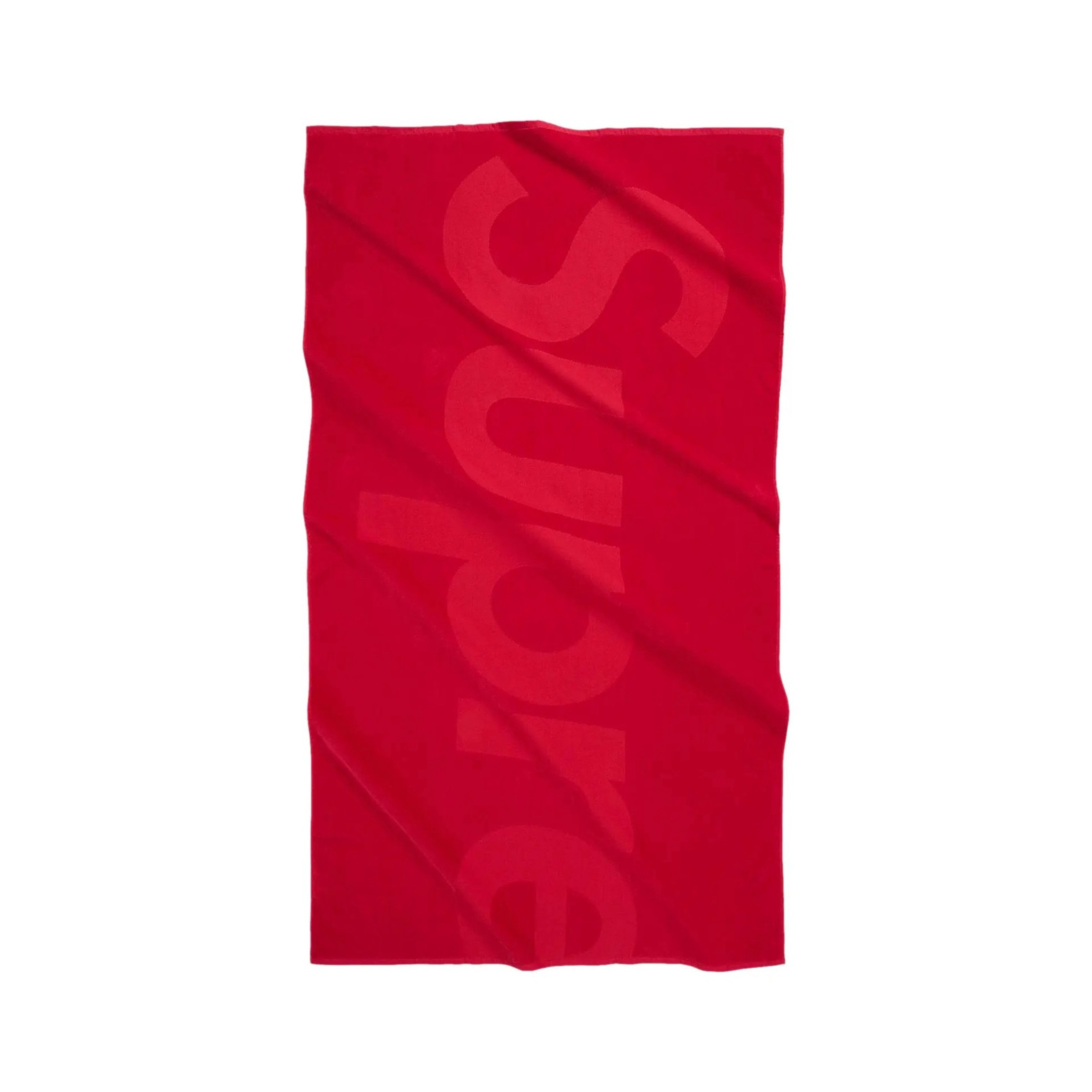 Supreme 'SS23 Tonal Logo' beach towel in red cotton featuring debossed jacquard woven logo.