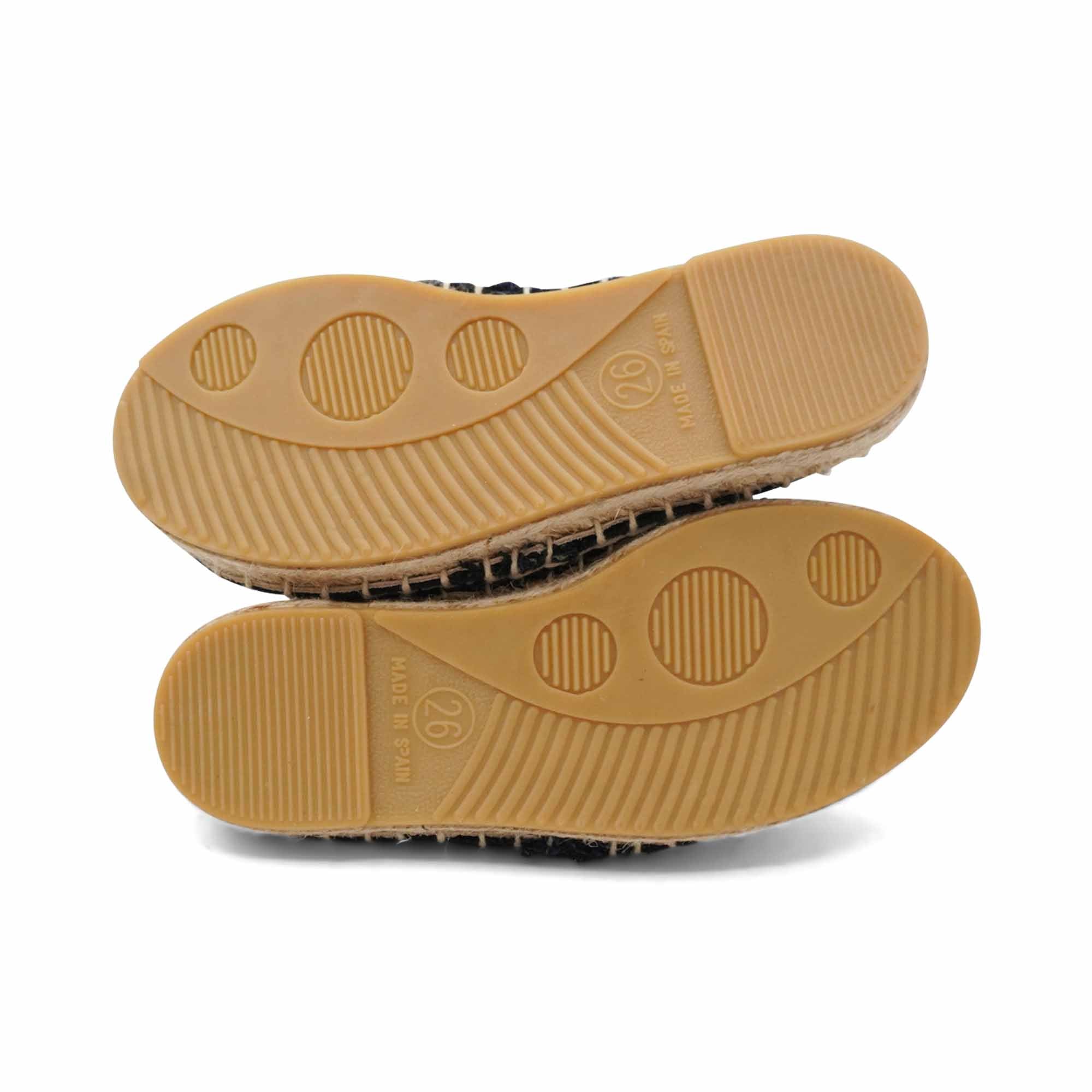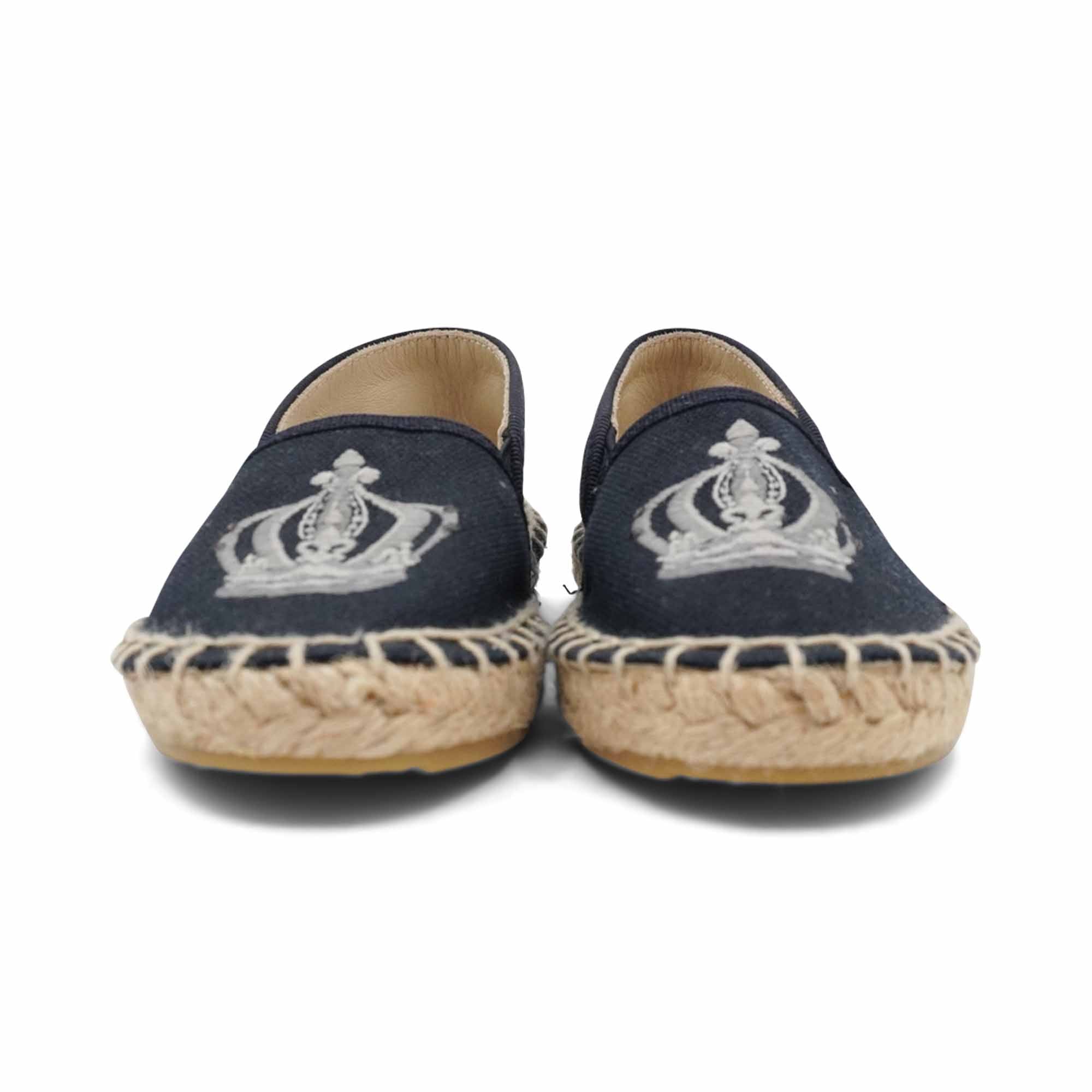 Dolce & Gabbana kids espadrilles in navy blue canvas with grey crown embroidery on the upper and a beige raffia sole.