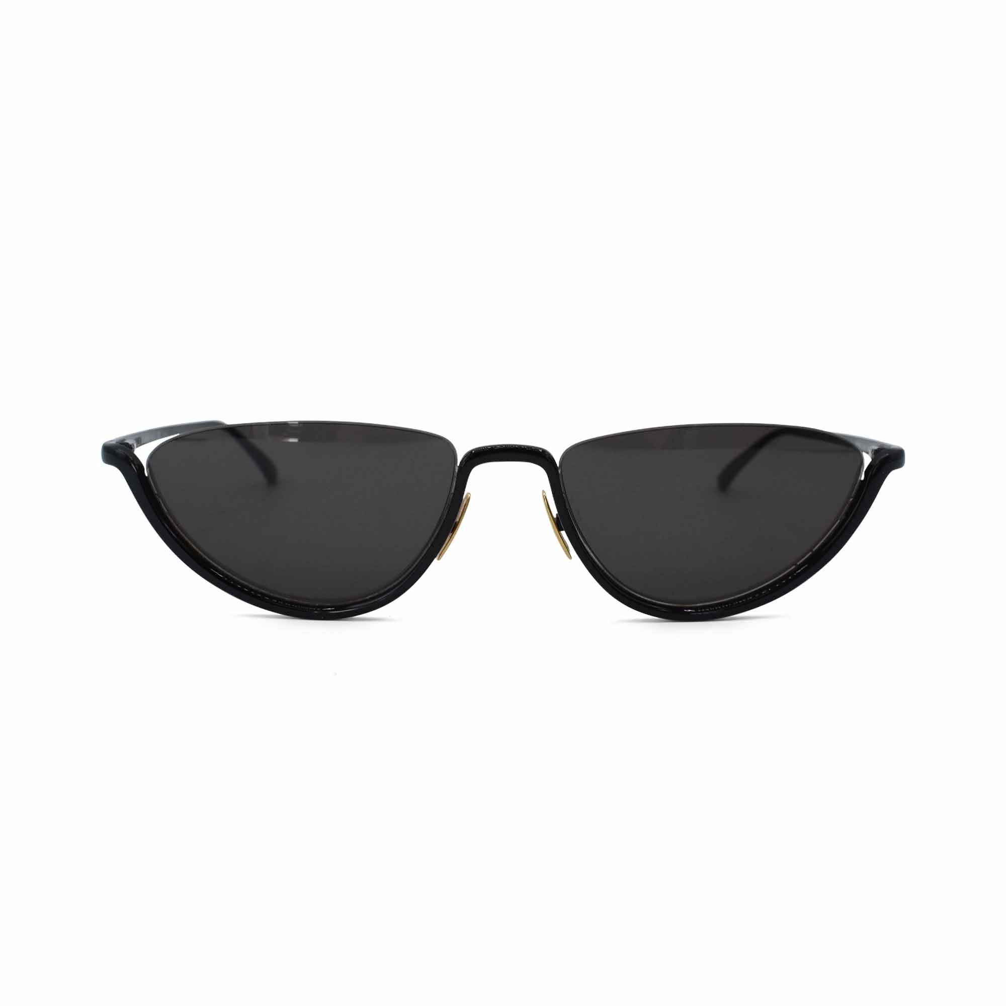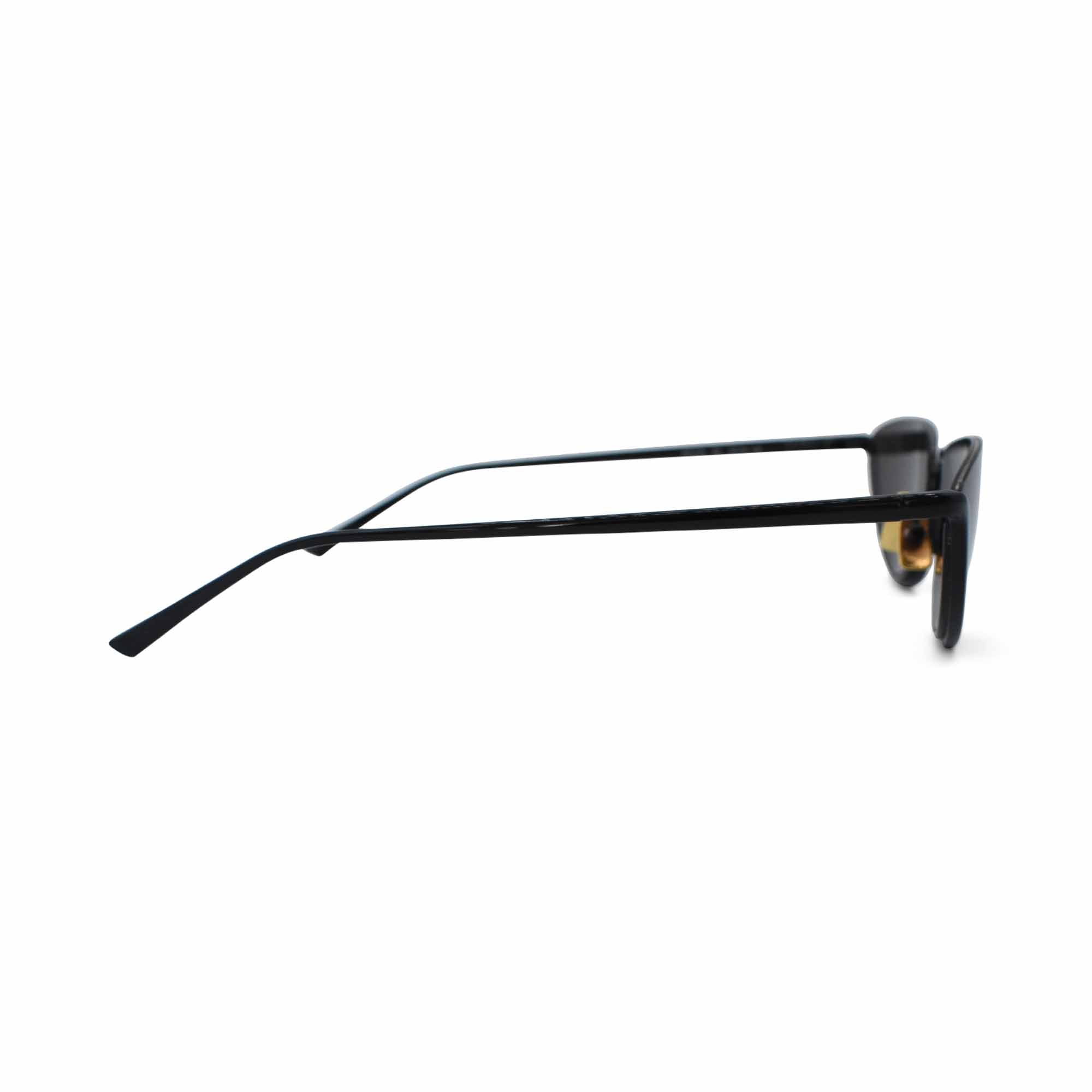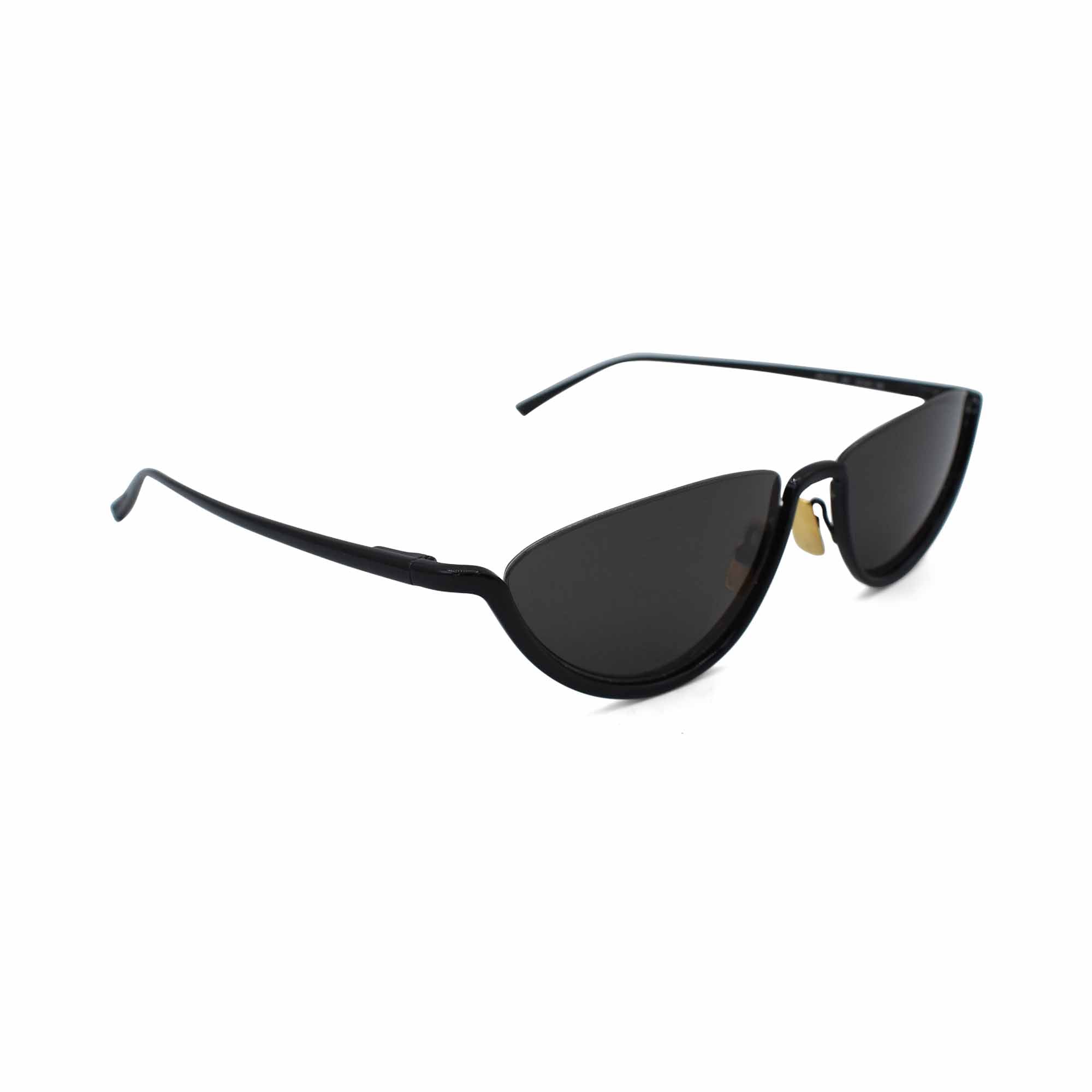 Bottega Veneta cat-eye sunglasses in black metal with a half frame design and gold nose pads.