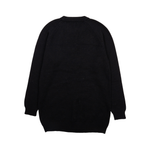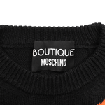 Boutique Moschino pullover sweater in black knit cotton with an orange, purple and green abstract shape graphic on the front.