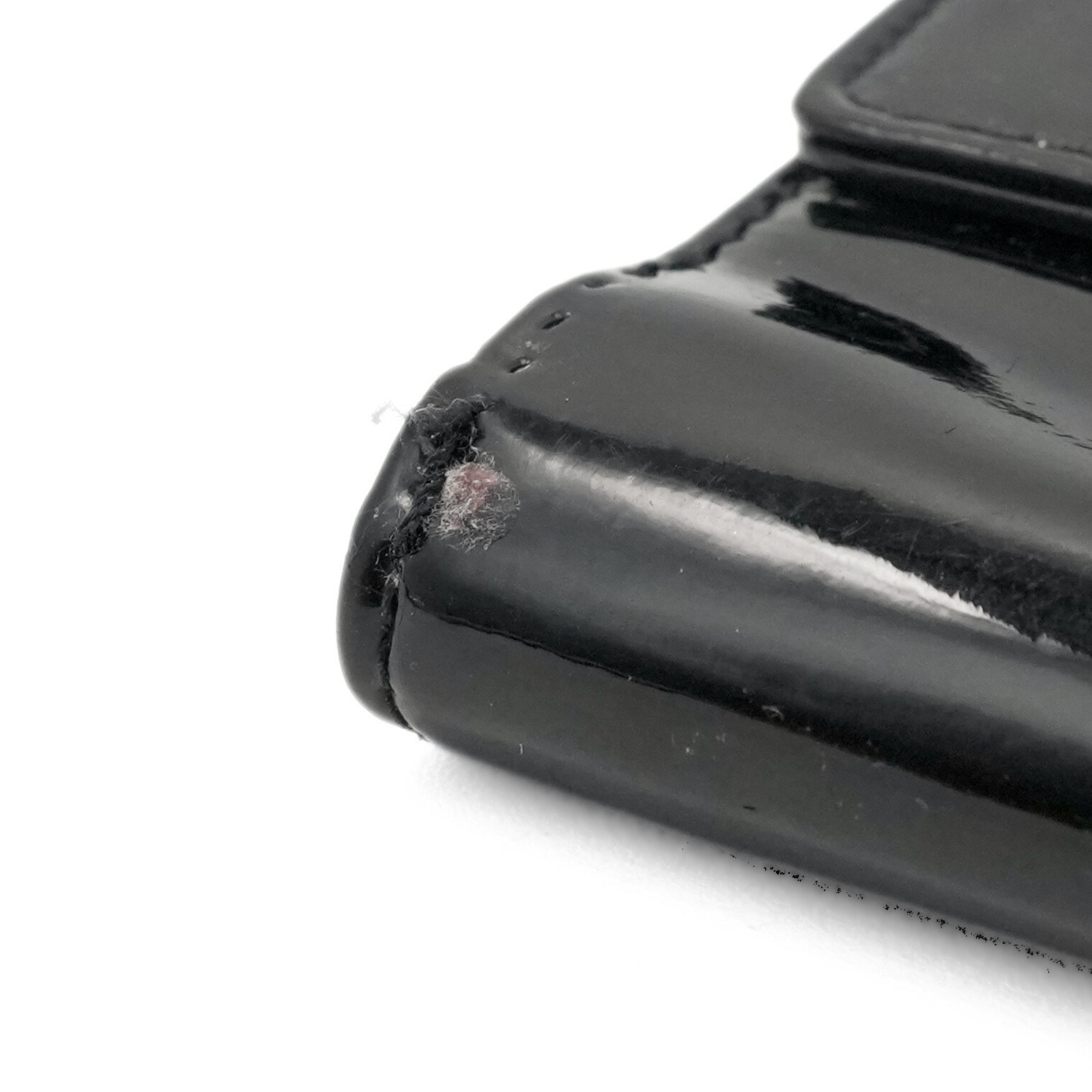 As is. Scratching and scuff marks throughout patent leather, discolouration to floral appliqués, wear to trim and corners, scratching to interior.