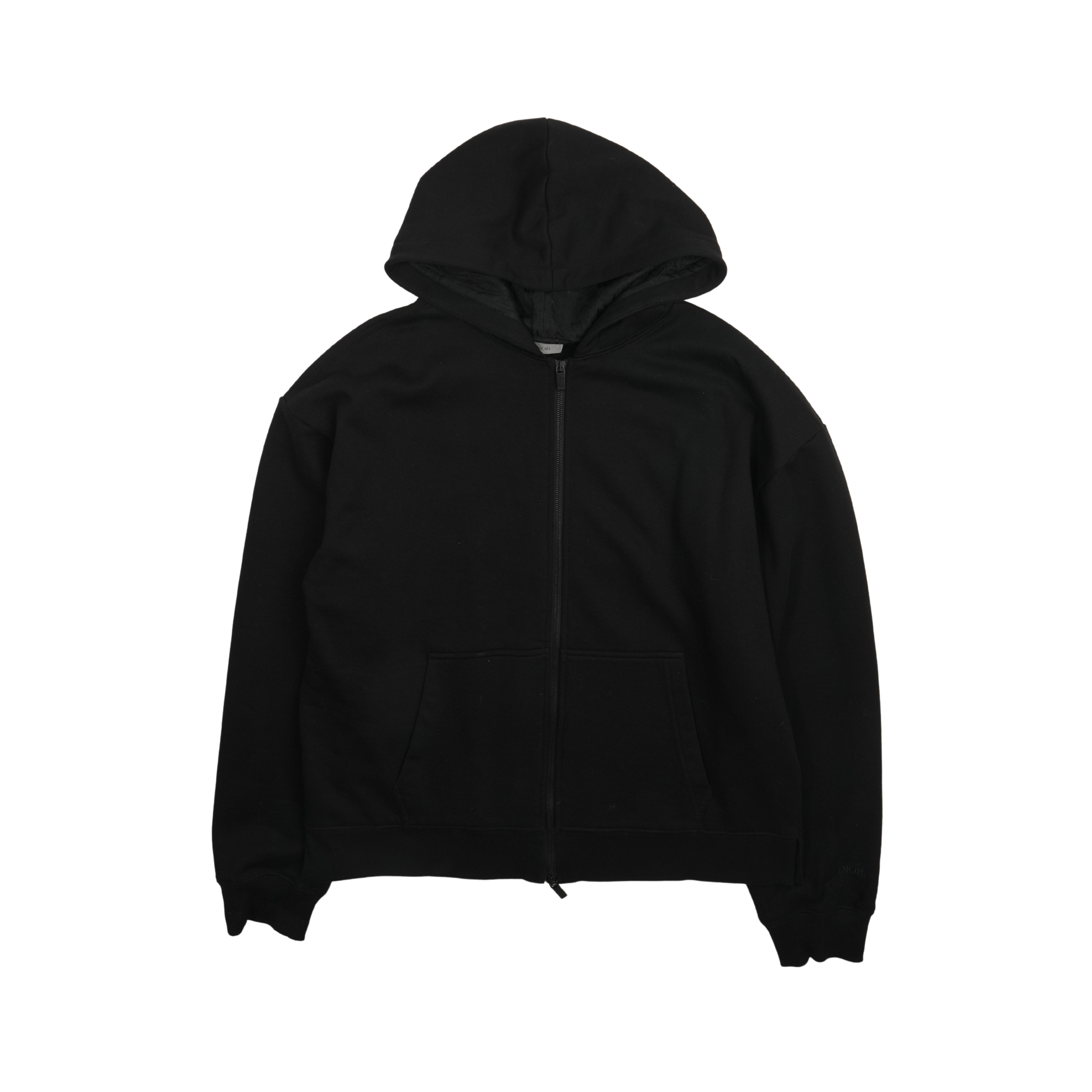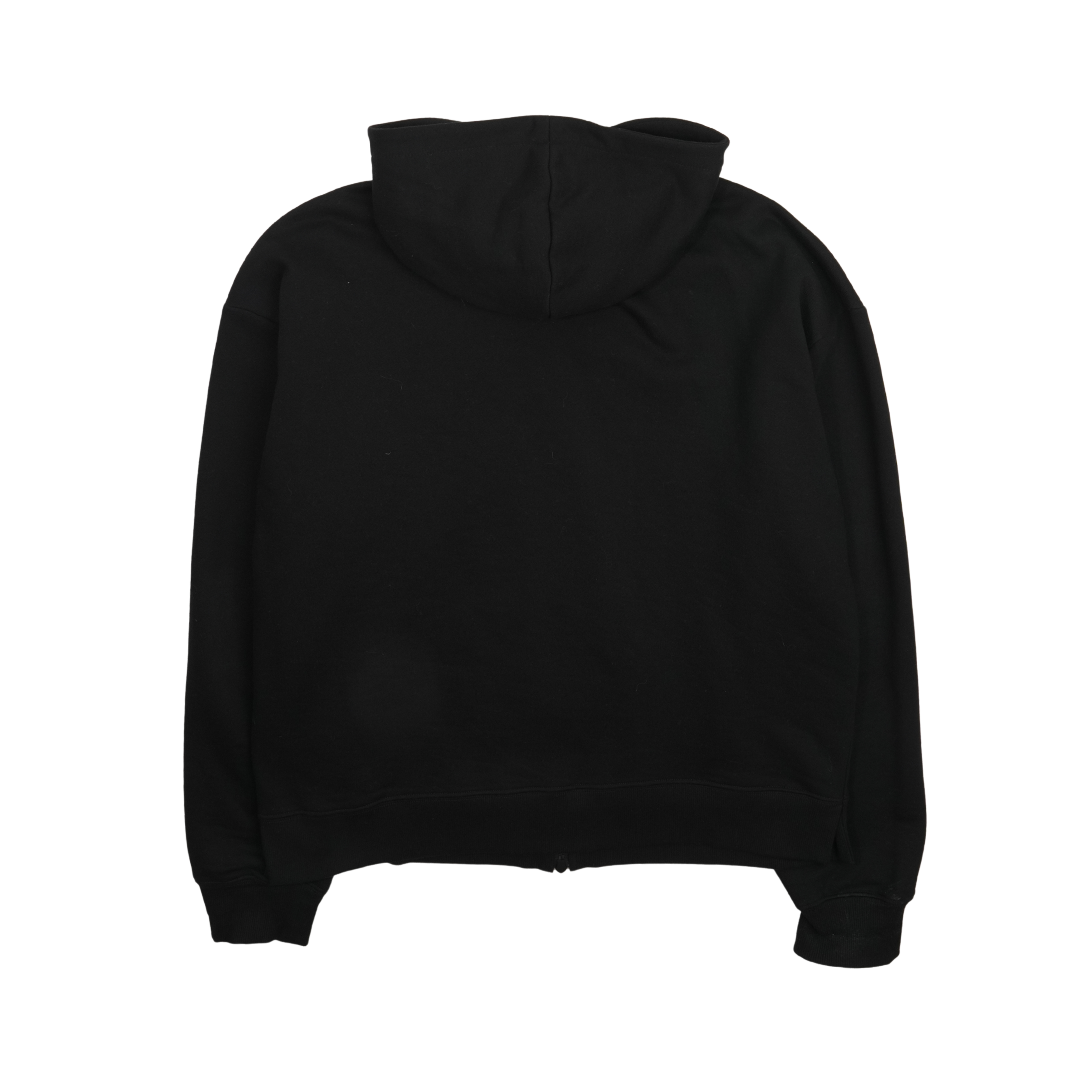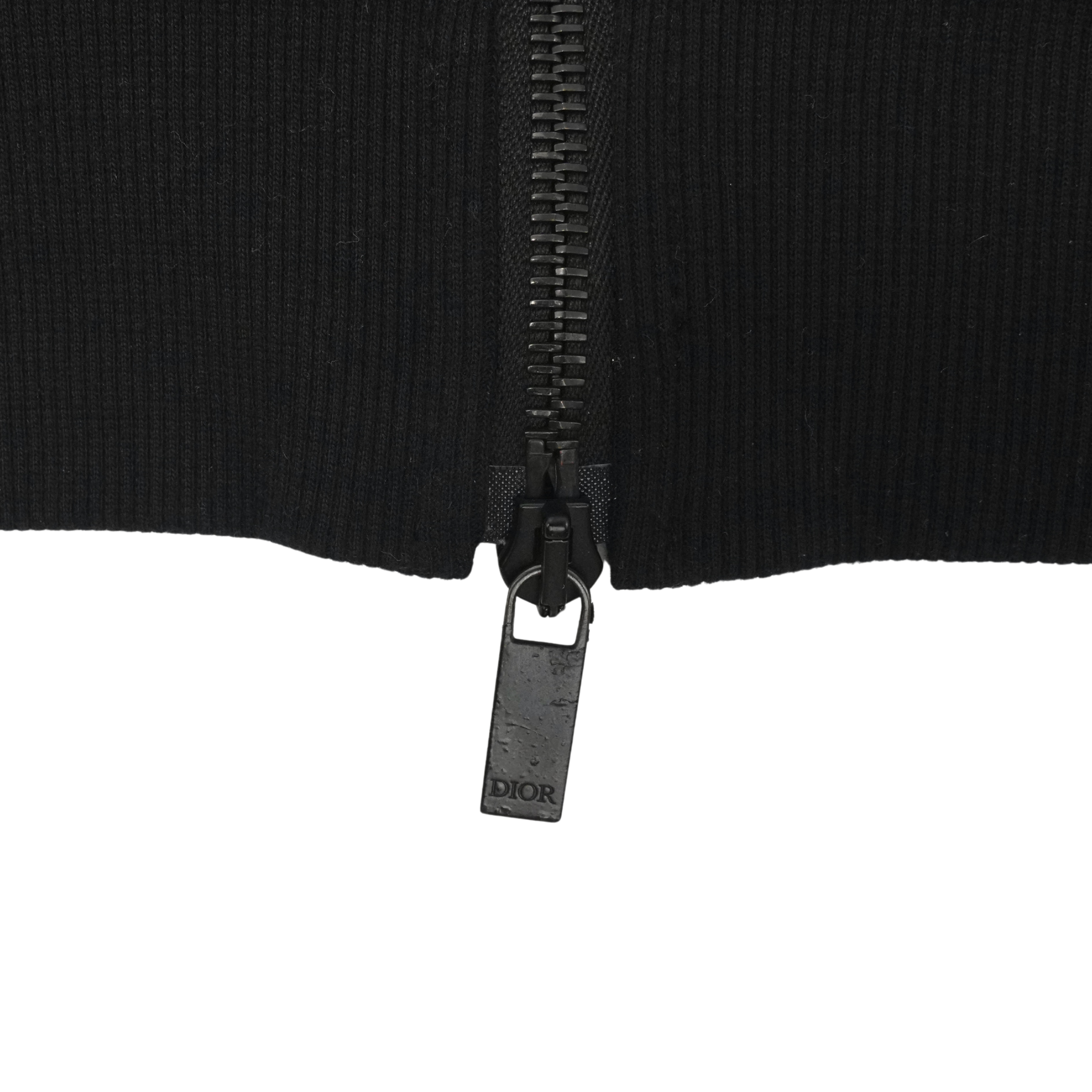 Christian Dior zip up hoodie in black cotton with kangaroo pocket, two way zipper in black hardware, ribbed trim and side slits. Featuring black monogram hood lining and small embroidered logo on the cuff.