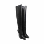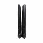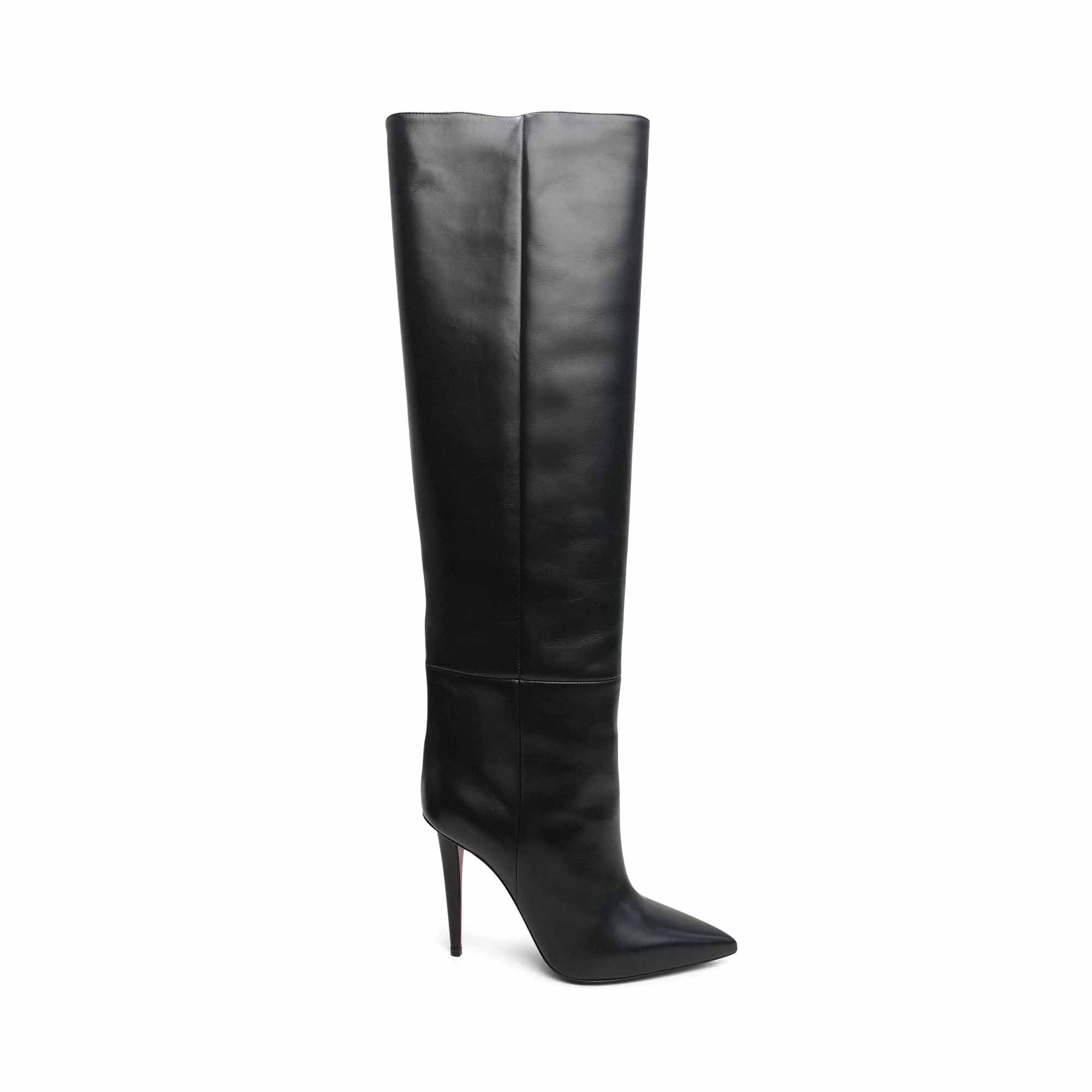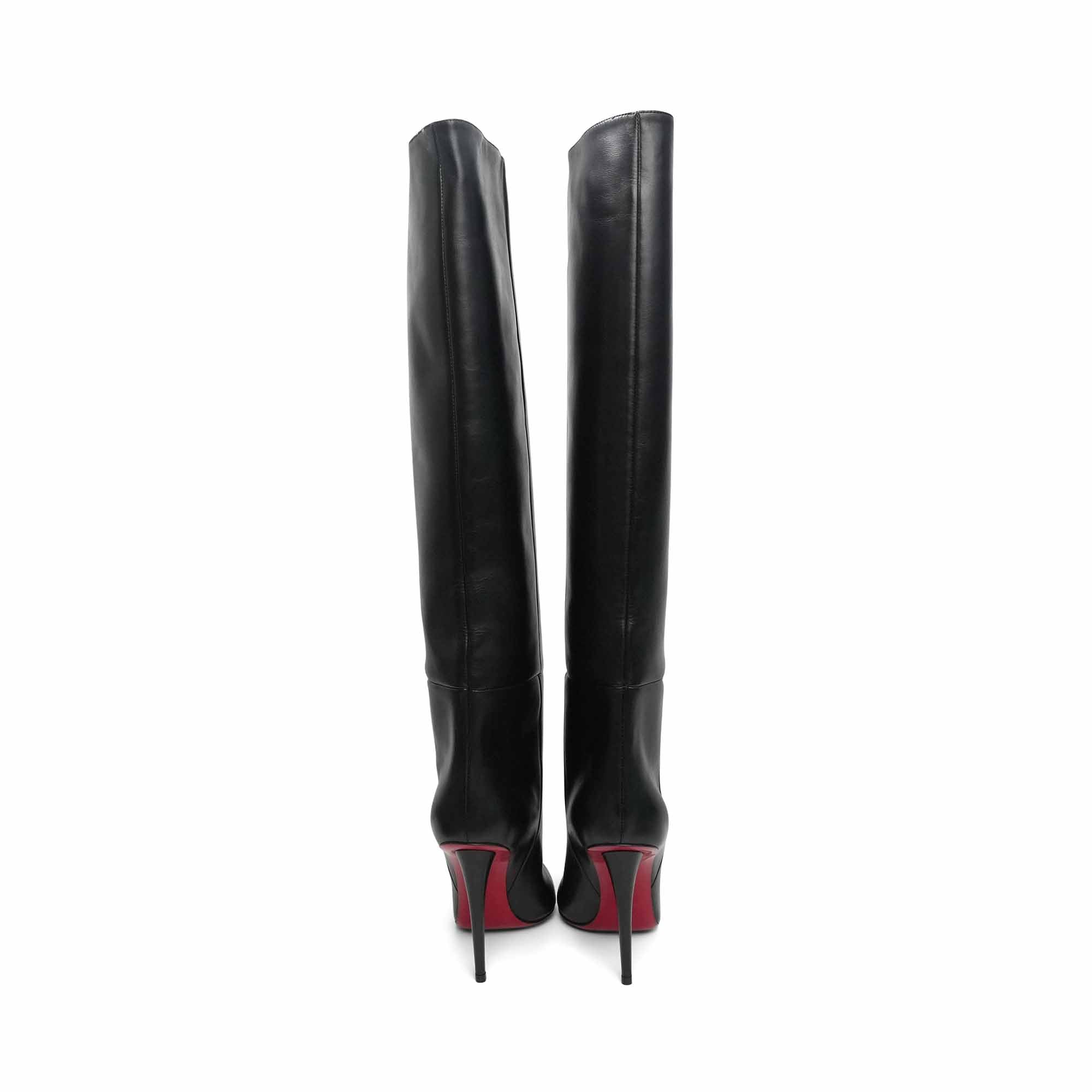 Christian Louboutin 'Astrilarge' calf high boots in black leather with pointed toe and stiletto heel featuring four leather panels.