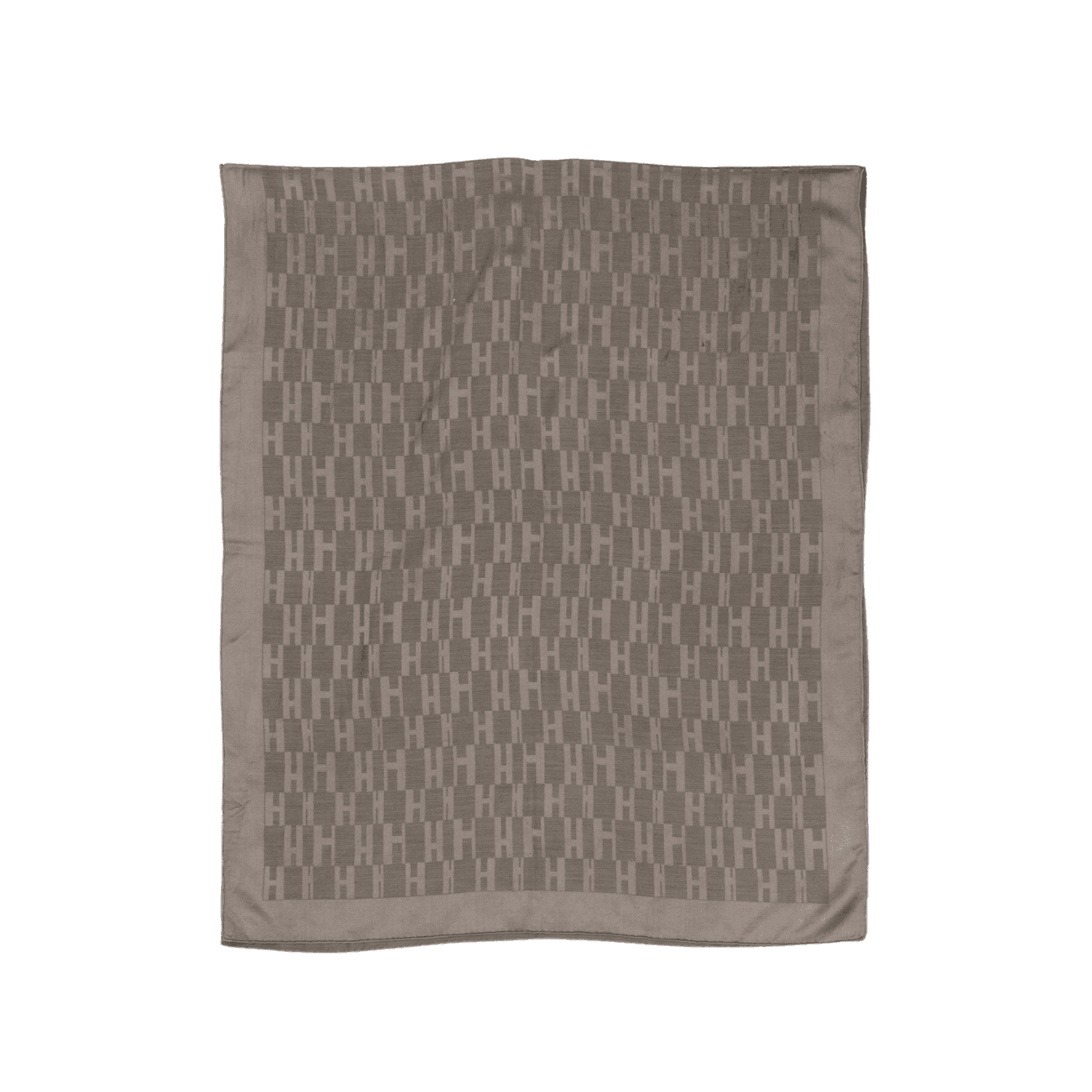 Hermes scarf in a taupe brown cashmere-silk blend with an all-over tonal 'H' monogram print.