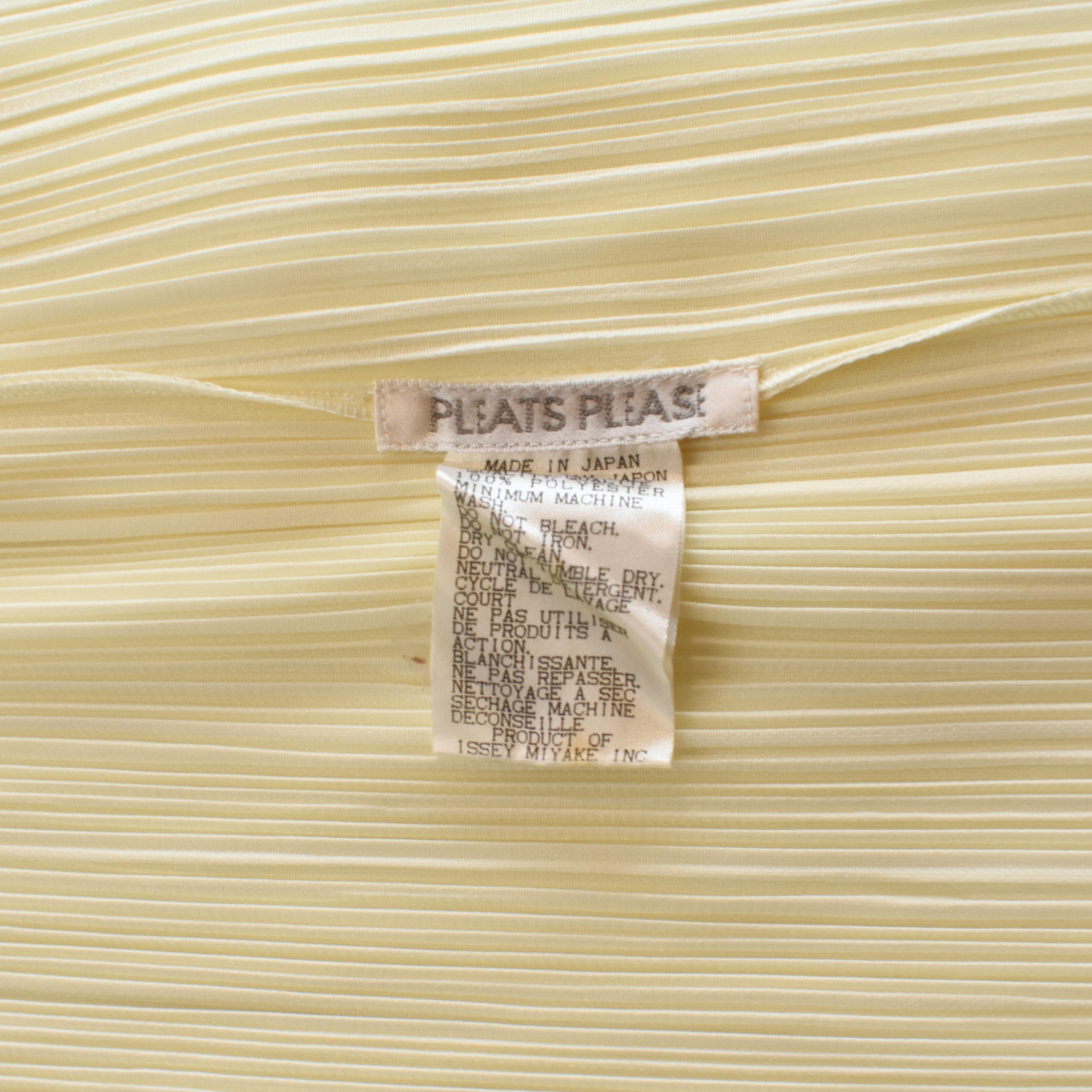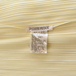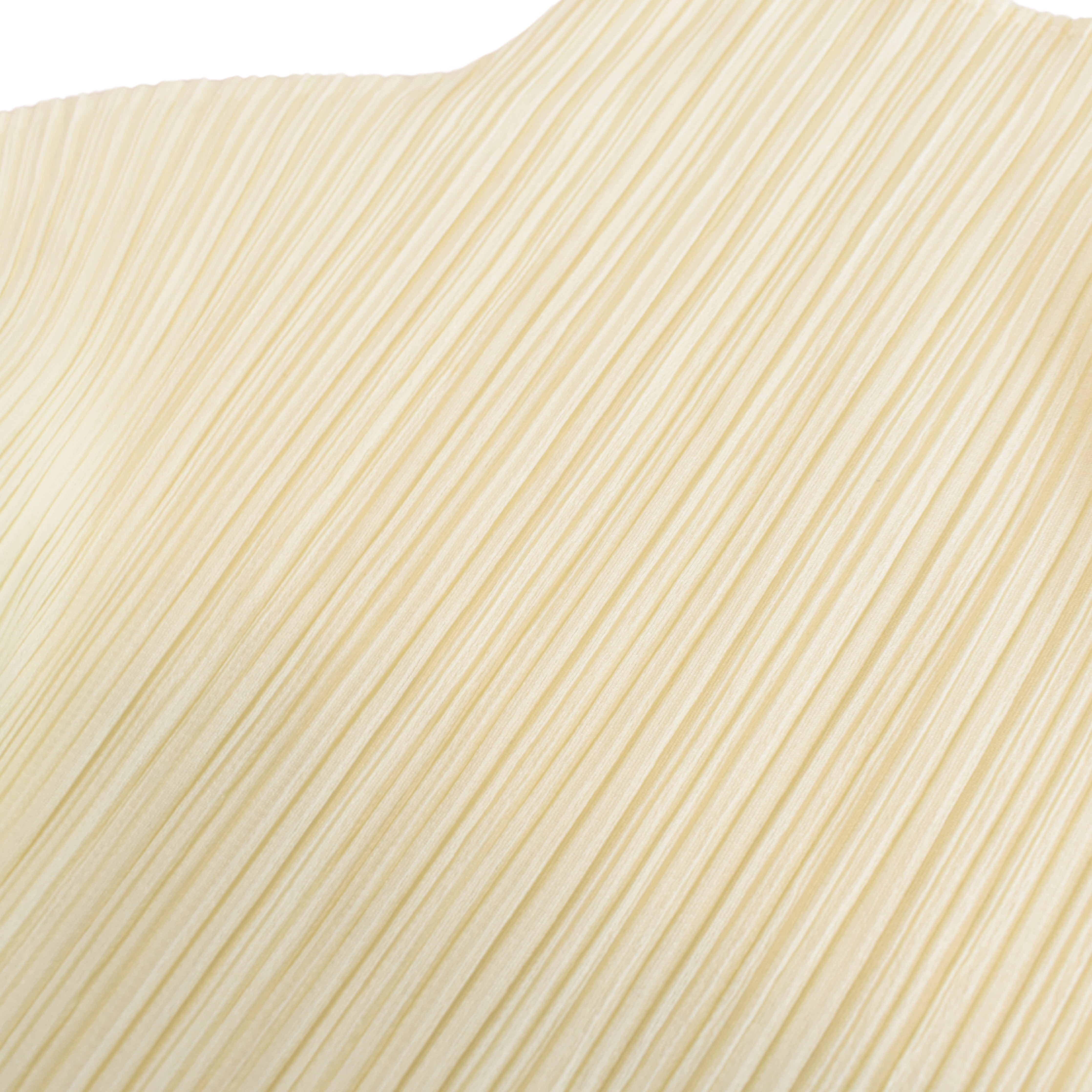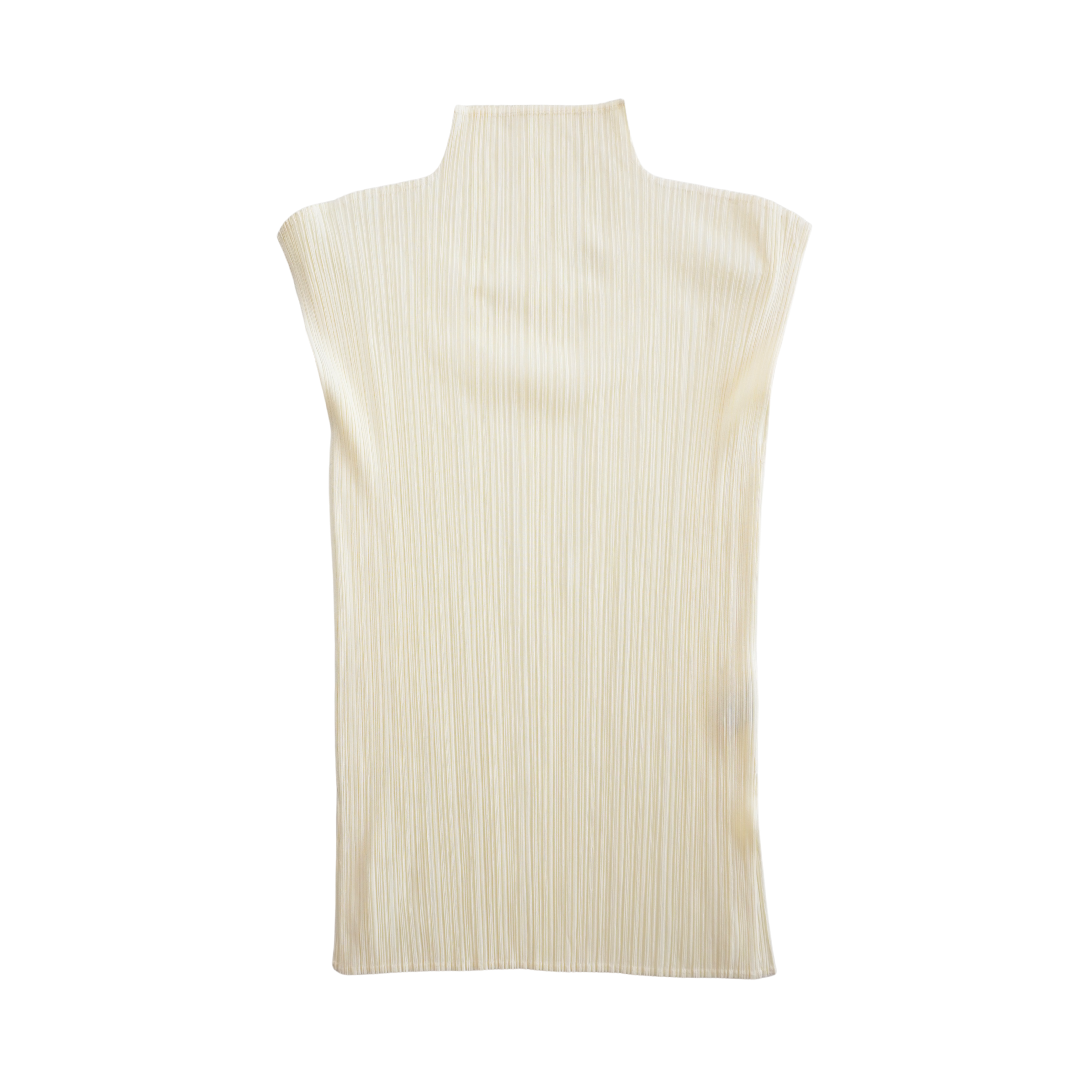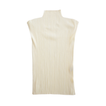 Issey Miyake Pleats Please tank top in pale yellow with a mock neckline.