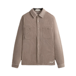 Kith 'Apollo' longsleeve shacket in beige chenille twill with two patch pockets on the chest, small embroidered logo at hem, shirt collar and barrel cuffs. Featuring satin lining.