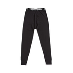 Supreme x Hanes 'Bones' thermal pants in black waffle knit cotton with a white skeleton bones graphic and an elastic monogram logo waistband.