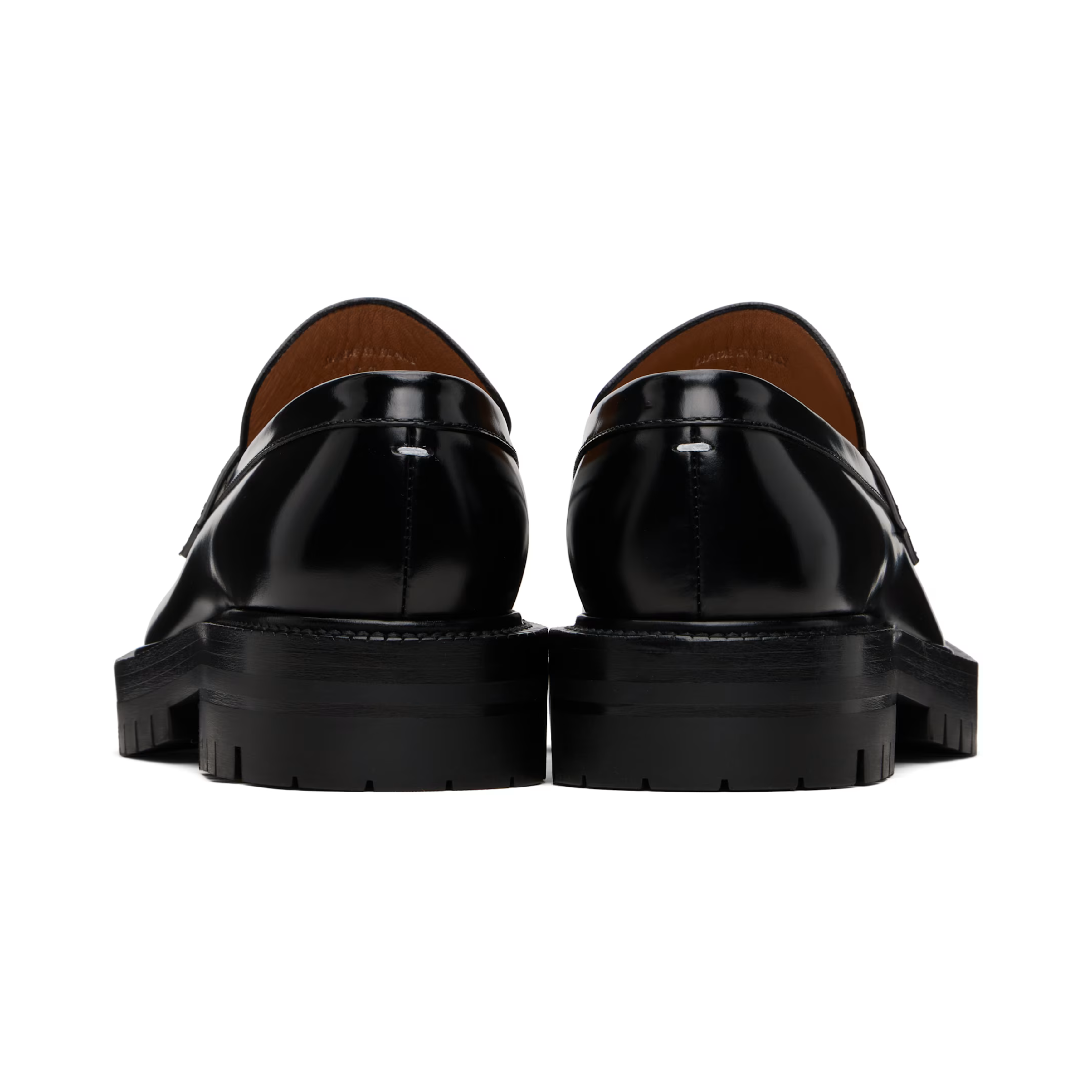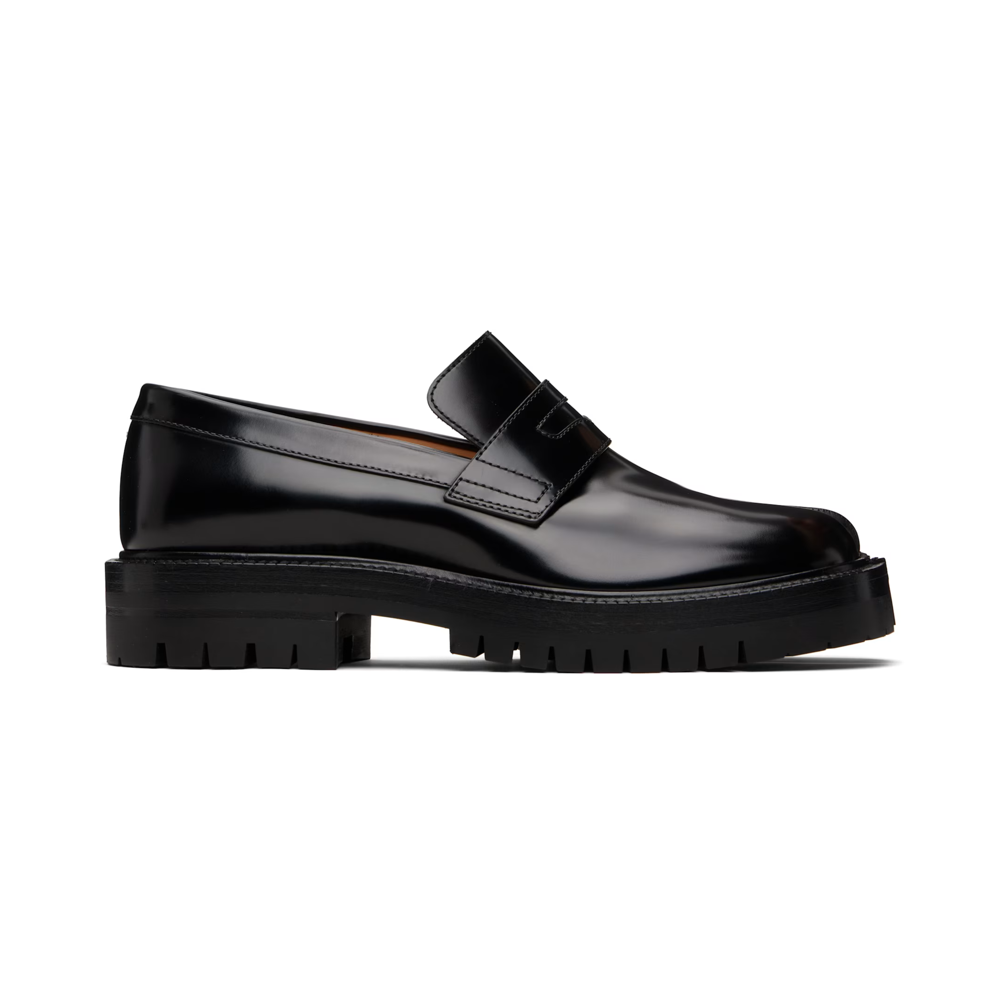 Maison Marigela 'Tabi' loafers in black smooth leather with signature toe-slit detail.