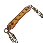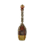 Louis Vuitton 'A/W 2004 Trompe L'oeil' pochette shoulder bag in brown and chartreuse terrycloth with an all-over monogram pattern, a front lock graphic, and a brown vachetta leather trim. The bag has a chain shoulder strap with a crocodile leather panel, crystal studding along the exterior, and a brushed gold top-zip opening revealing a black leather interior lining.