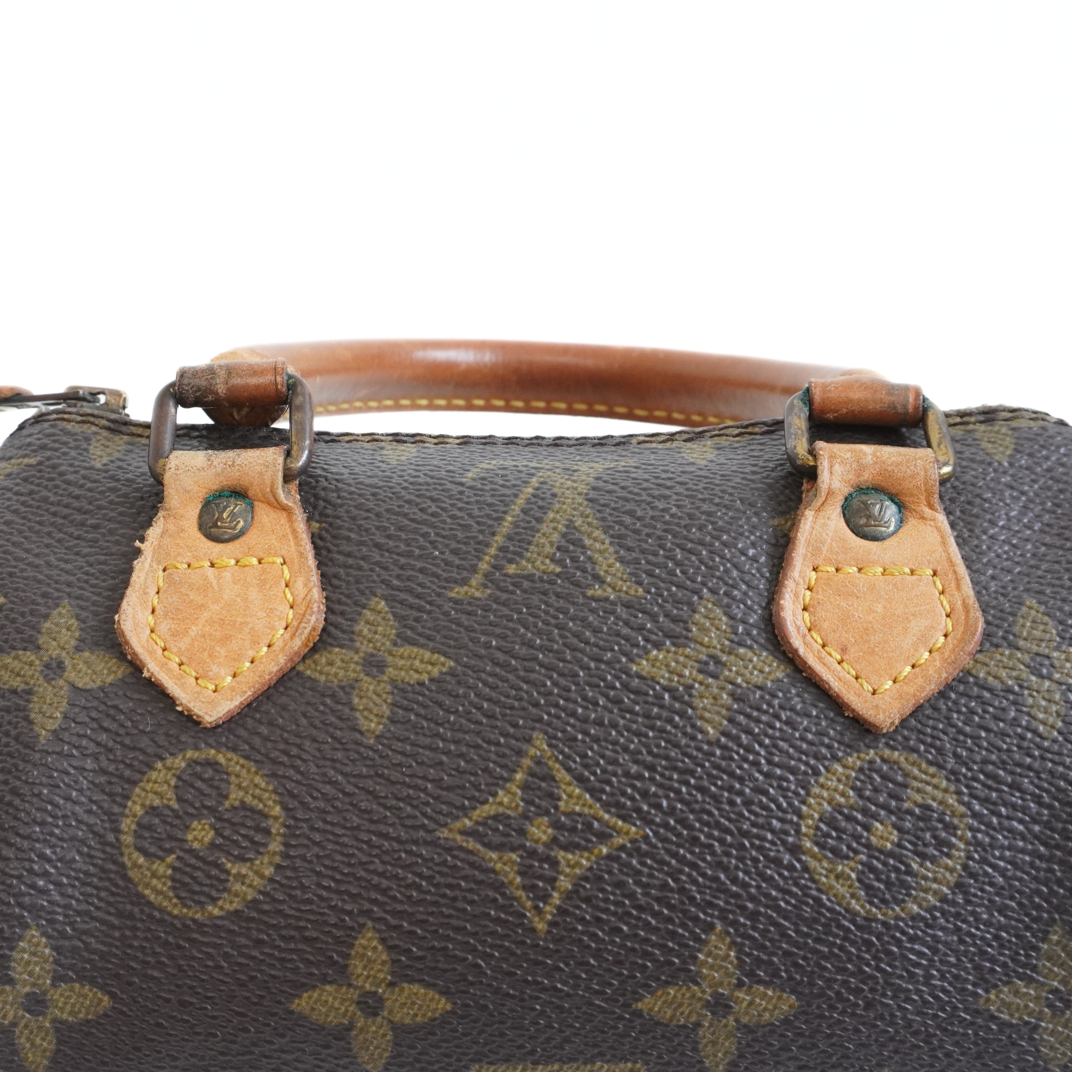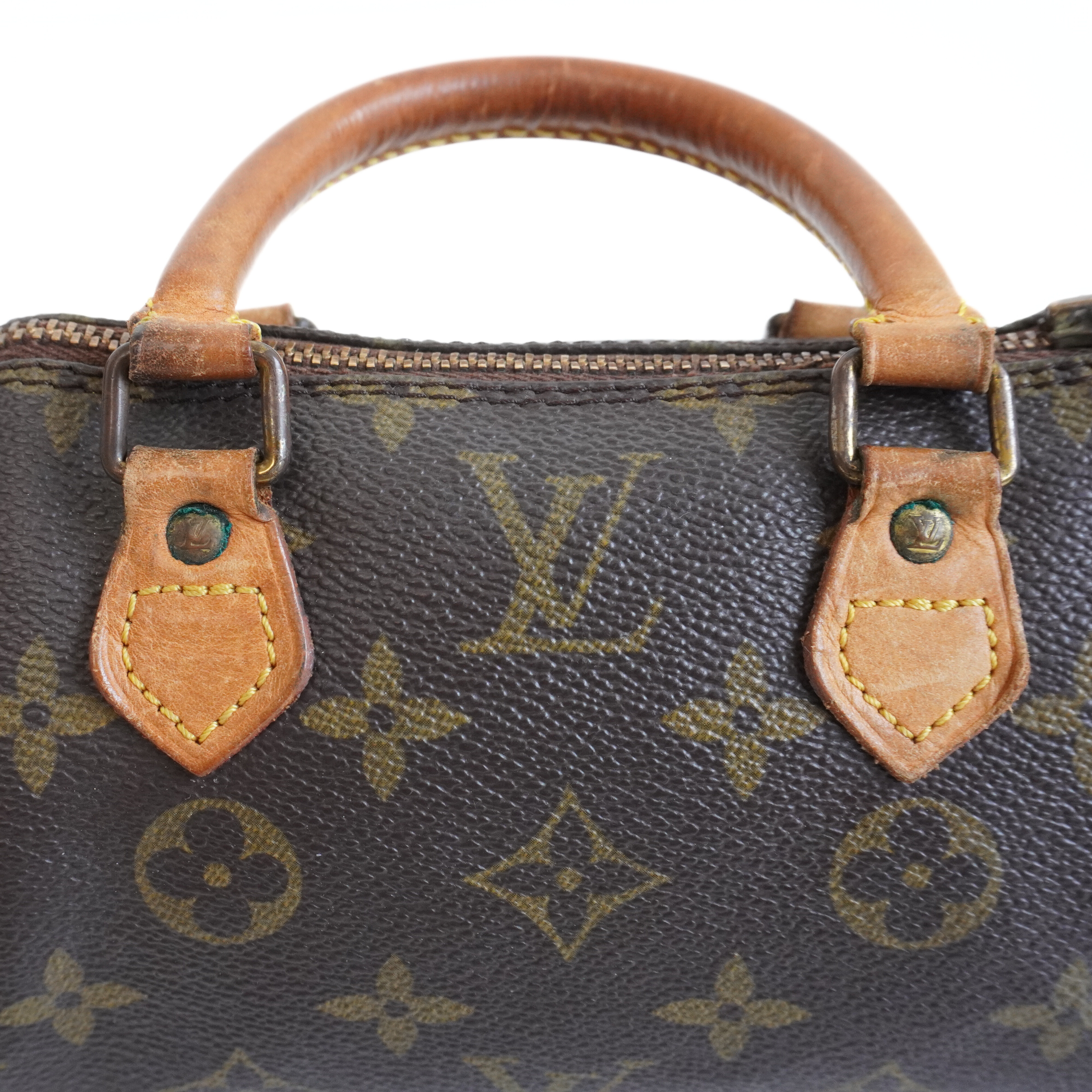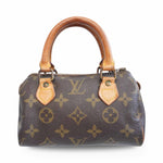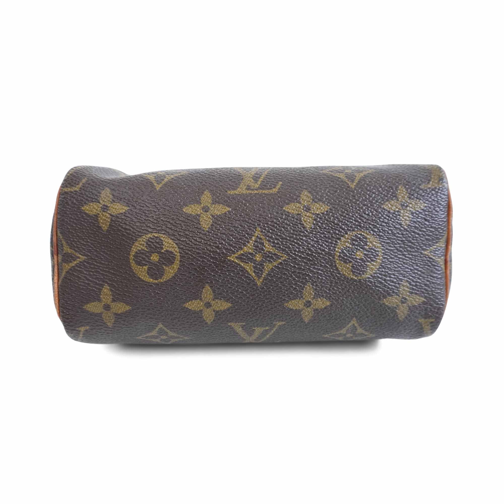 Louis Vuitton 'Nano Speedy' handbag in brown monogram coated canvas with rolled top leather handles and canvas lining.