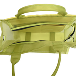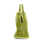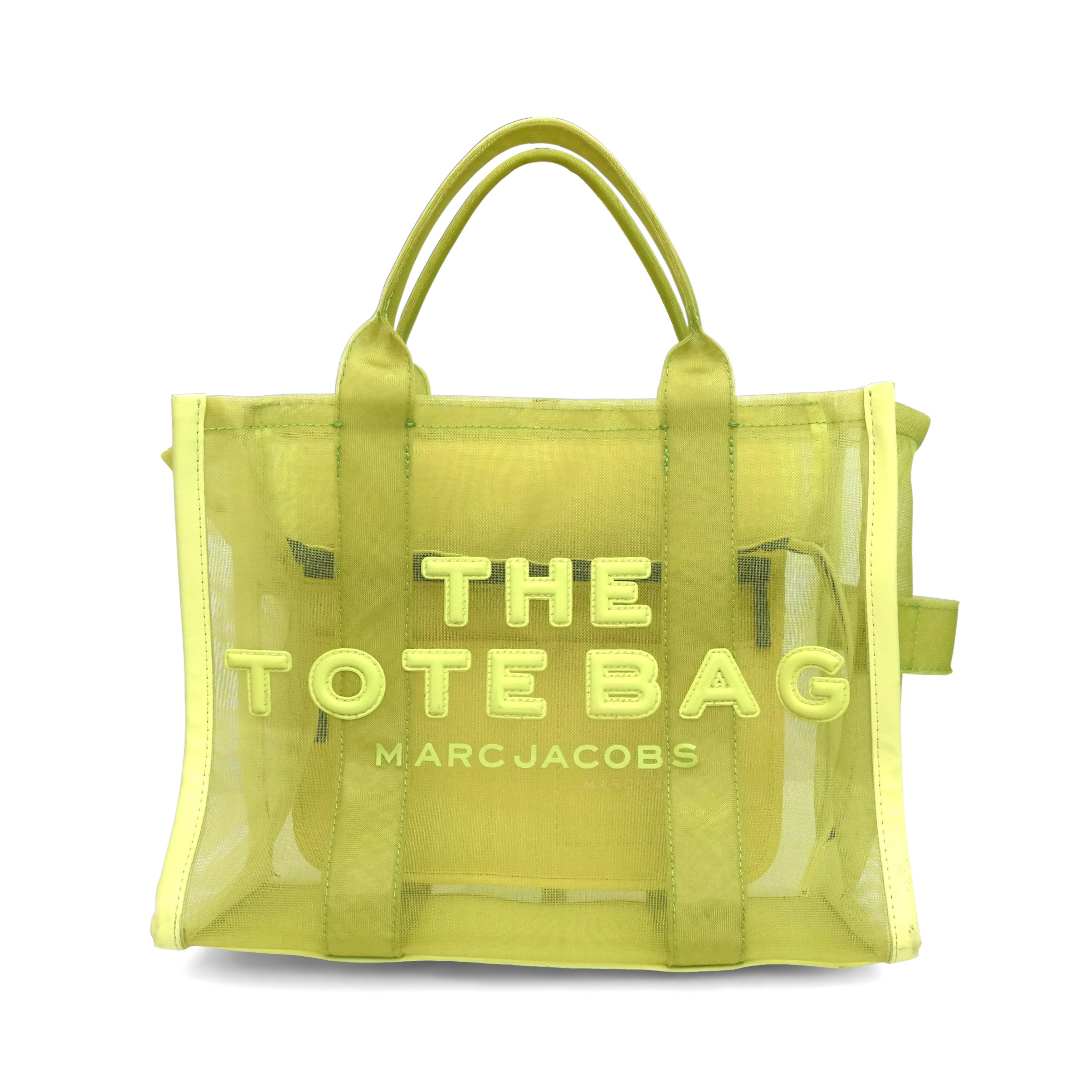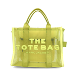 Marc Jacobs 'The Tote Bag' medium in a chartreuse nylon mesh with a leather logo on front, leather trim and silver hardware. Features a top zip closure, dual handles and a removable adjustable shoulder strap with an inner zip pocket.
