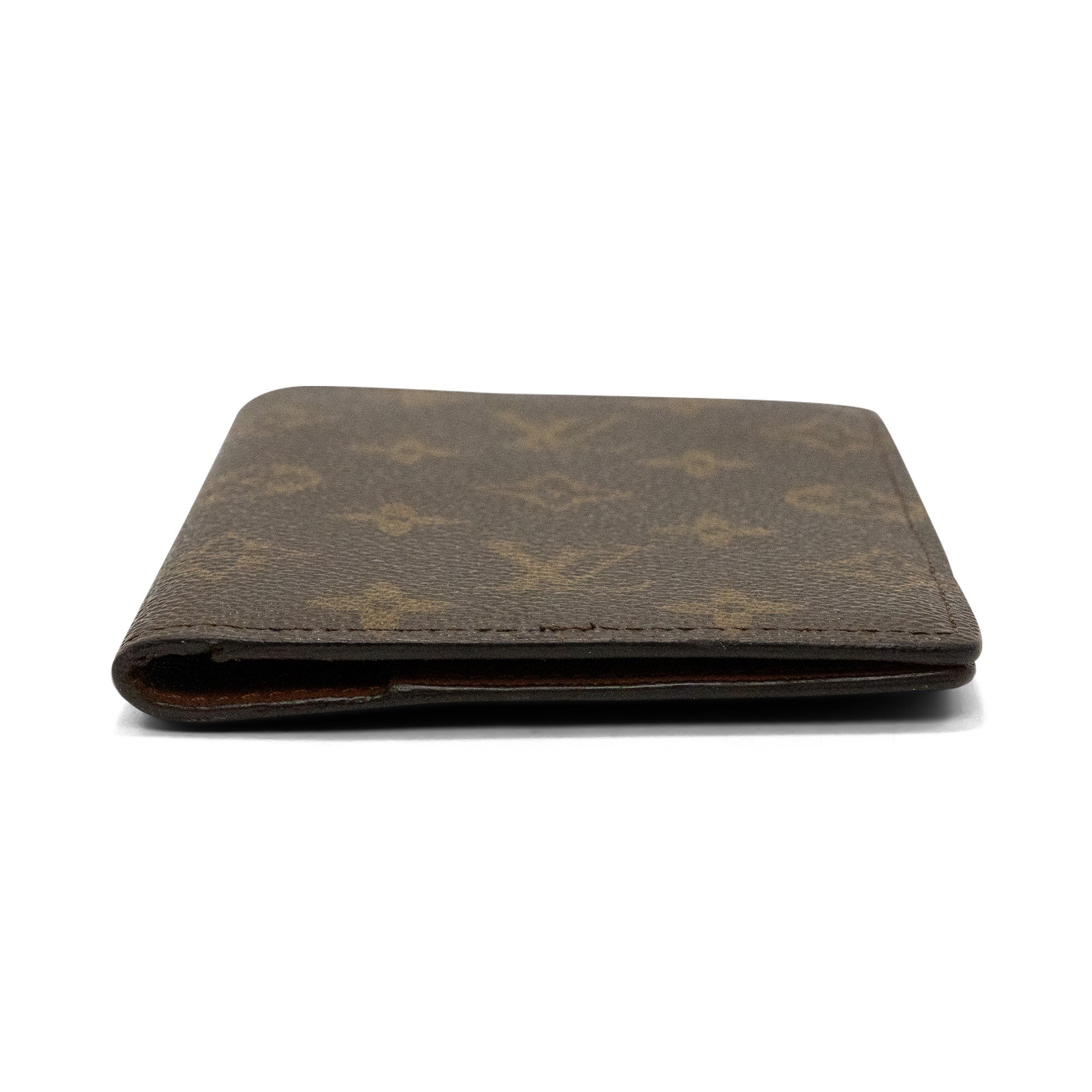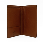 Louis Vuitton passport holder in brown monogram coated canvas with brown interior and single card slot.