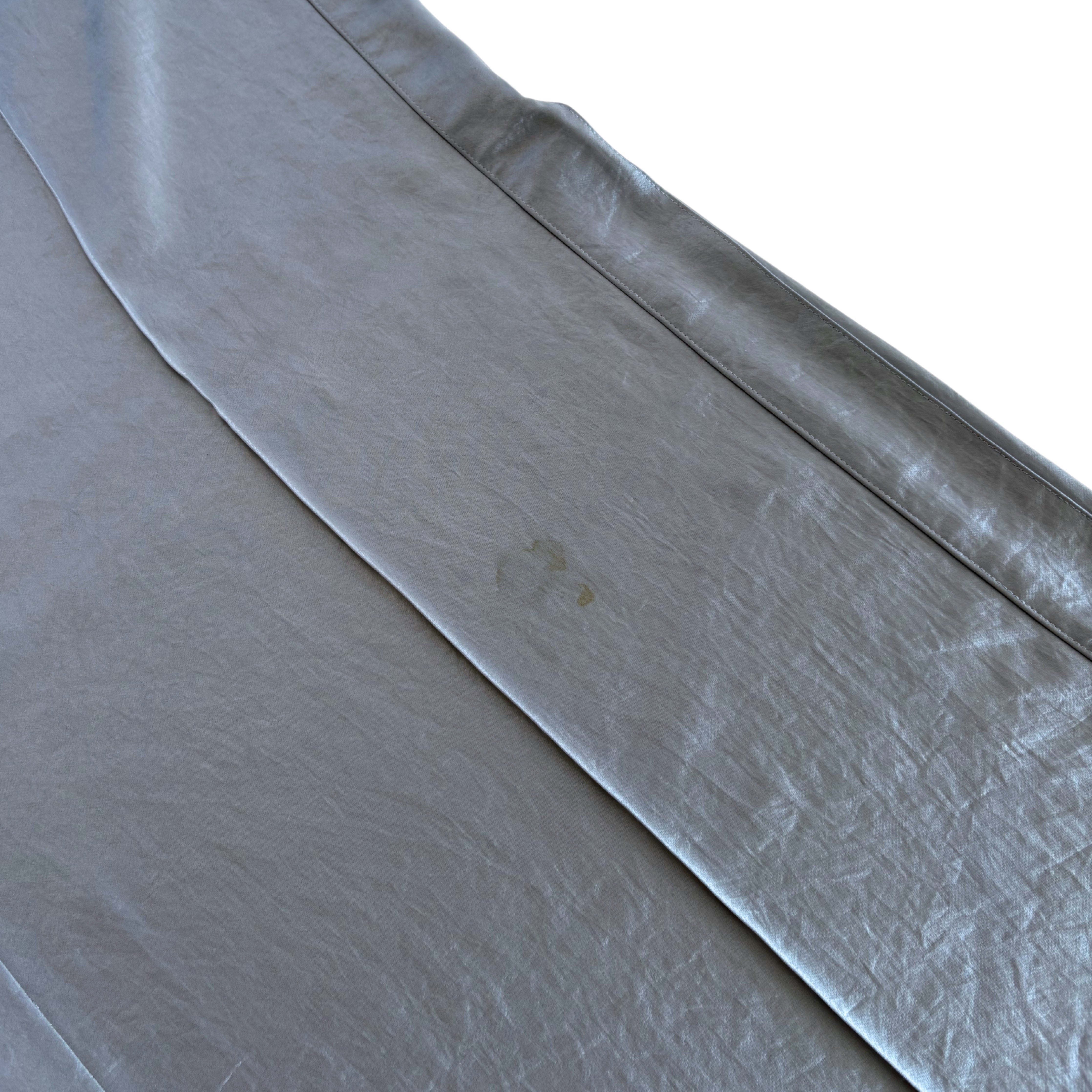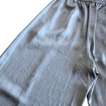 Alexander Wang.T wide straight leg trousers in grey-blue satin with elastic waist and slit pockets on the hips.