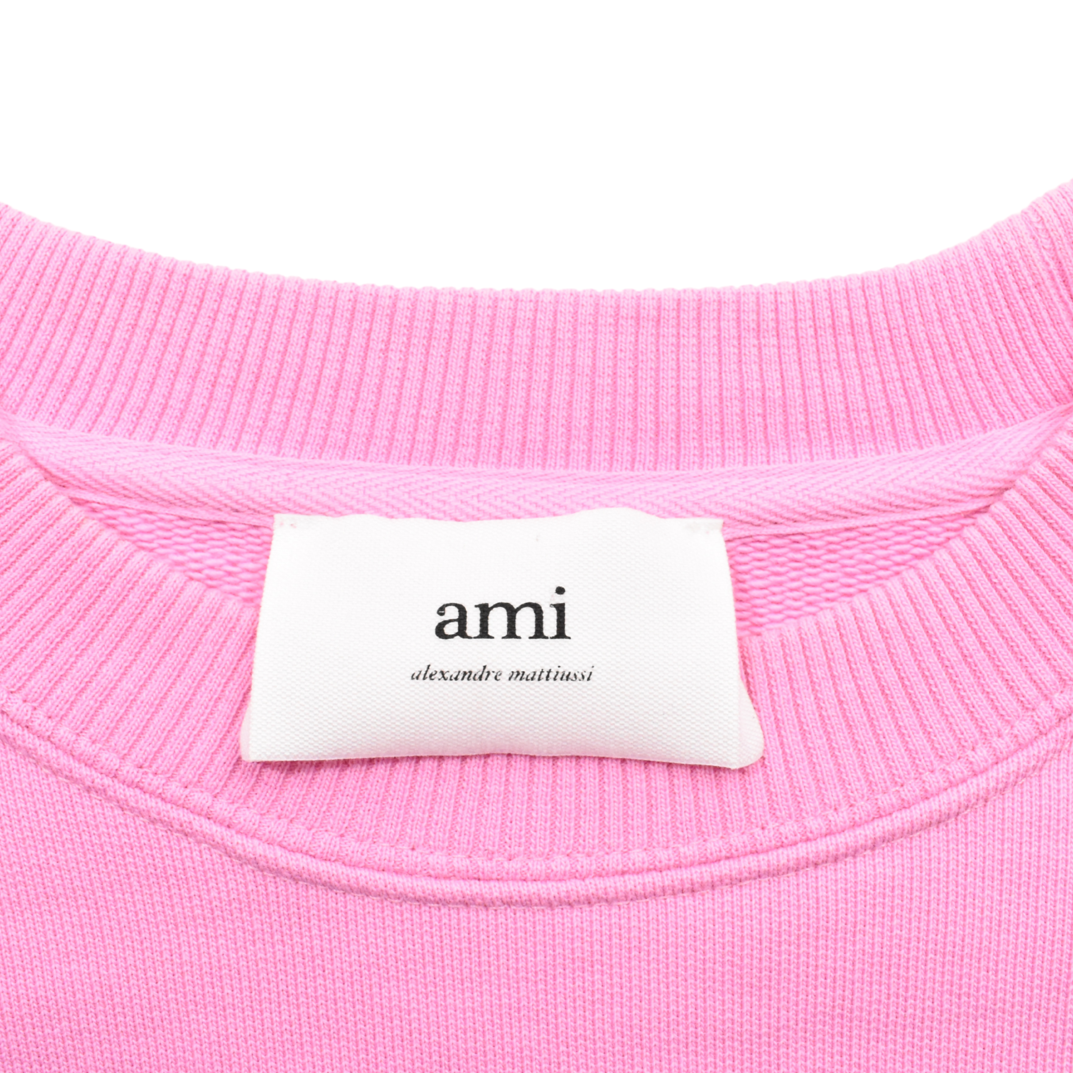Ami boxy-fit sweatshirt in bright pink cotton with a small tonal embroidered logo on the chest.