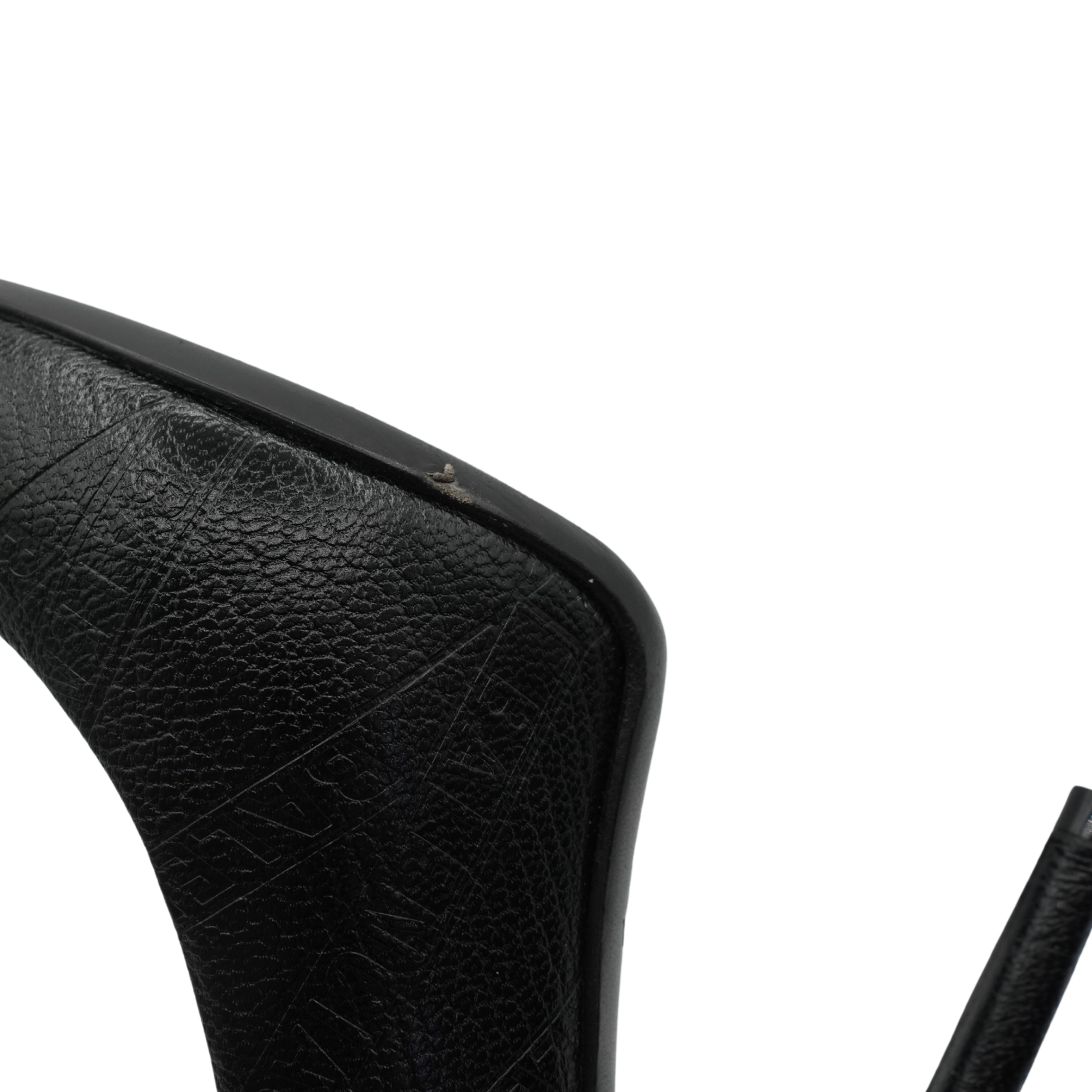 Balenciaga 'Knife' pumps in black logo embossed leather with a square heel and pointed toe.