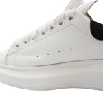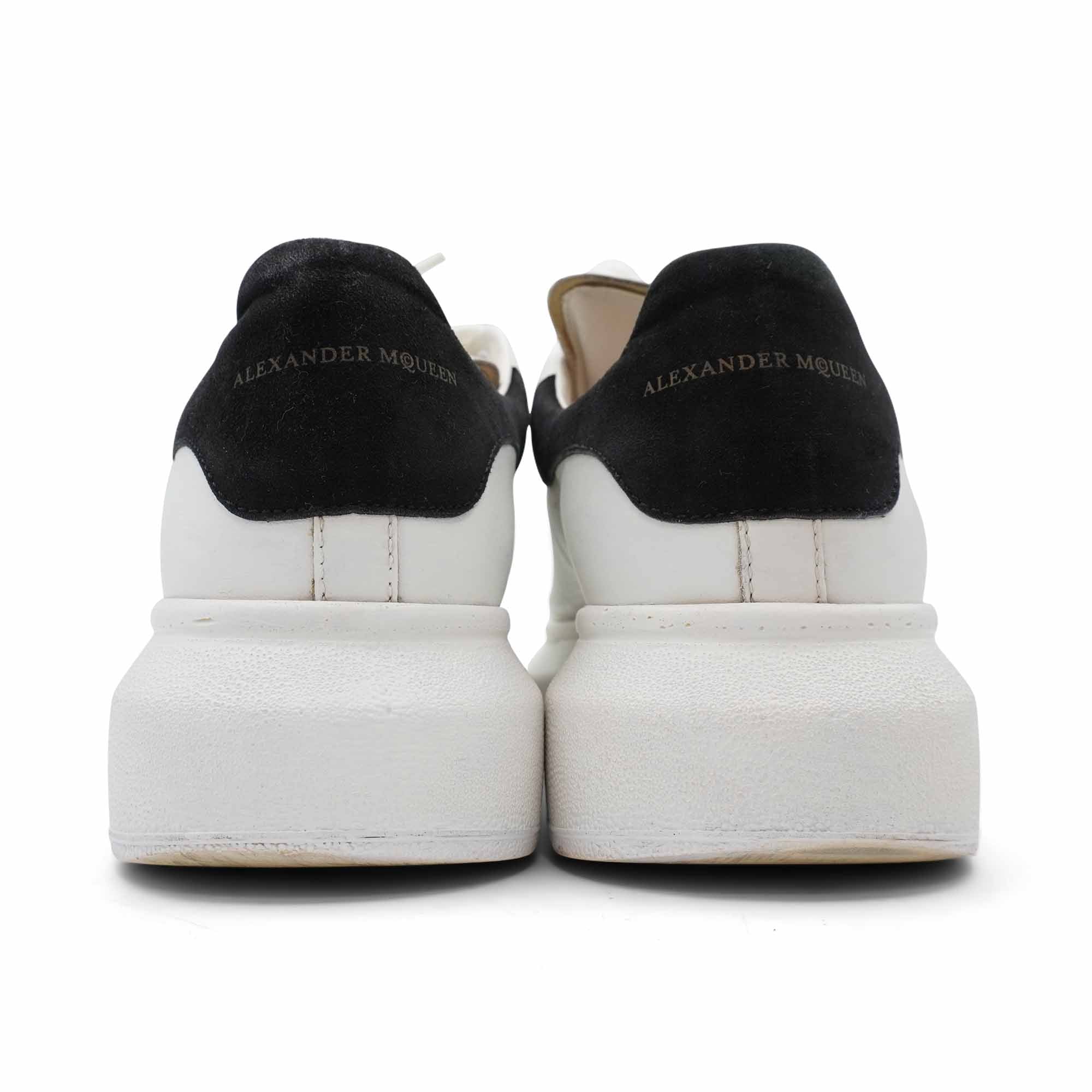 Alexander McQueen 'Larry' sneakers in white leather with black suede detail at the heel and a platform rubber sole.