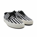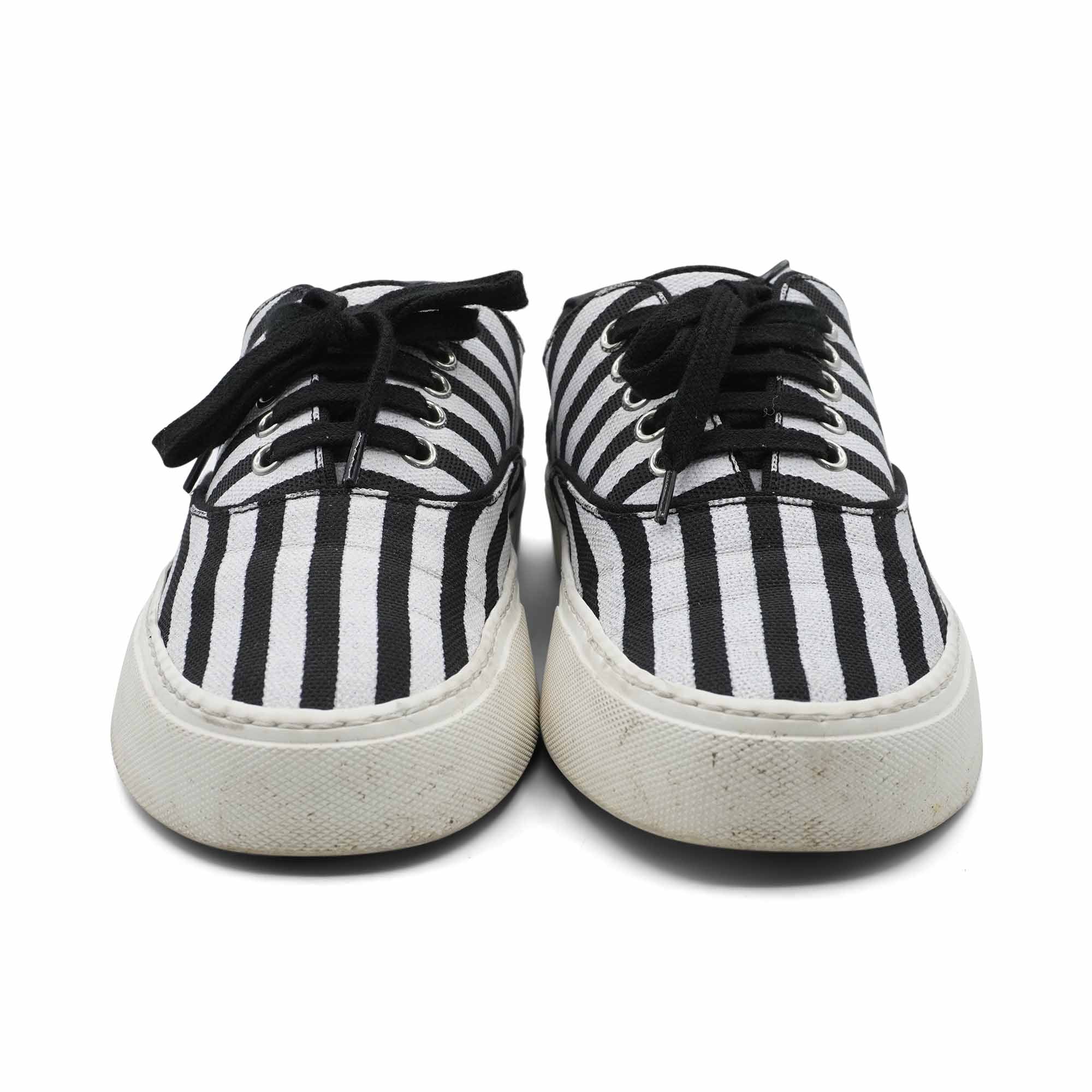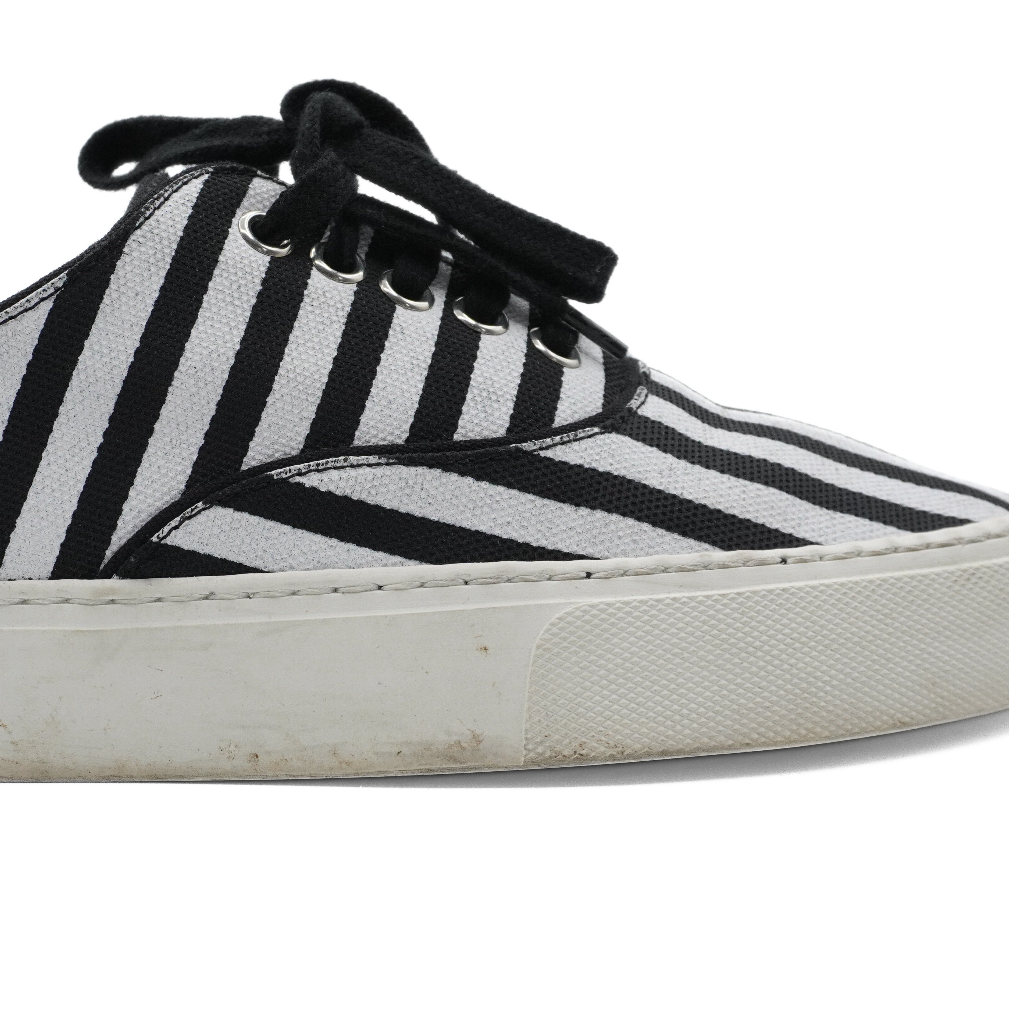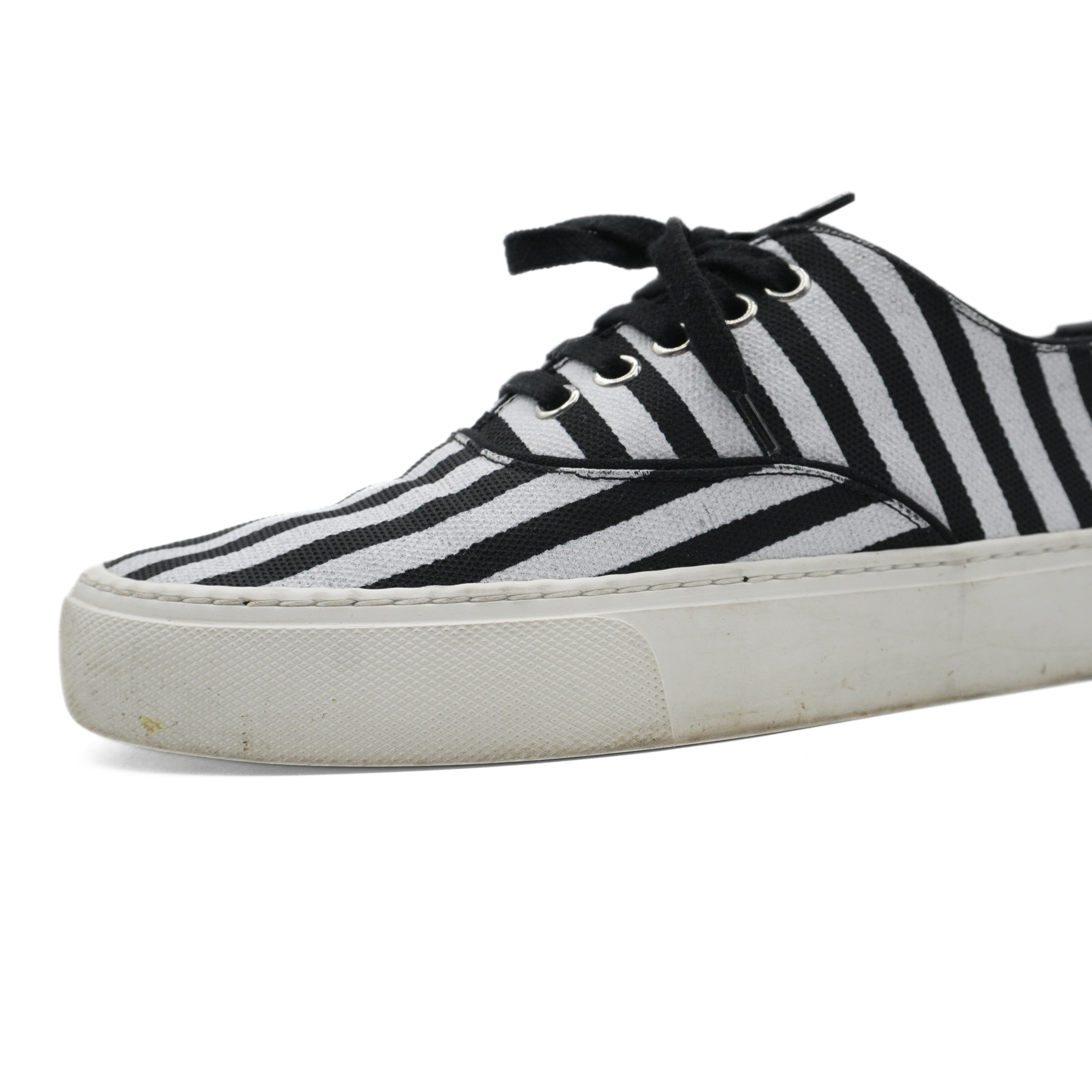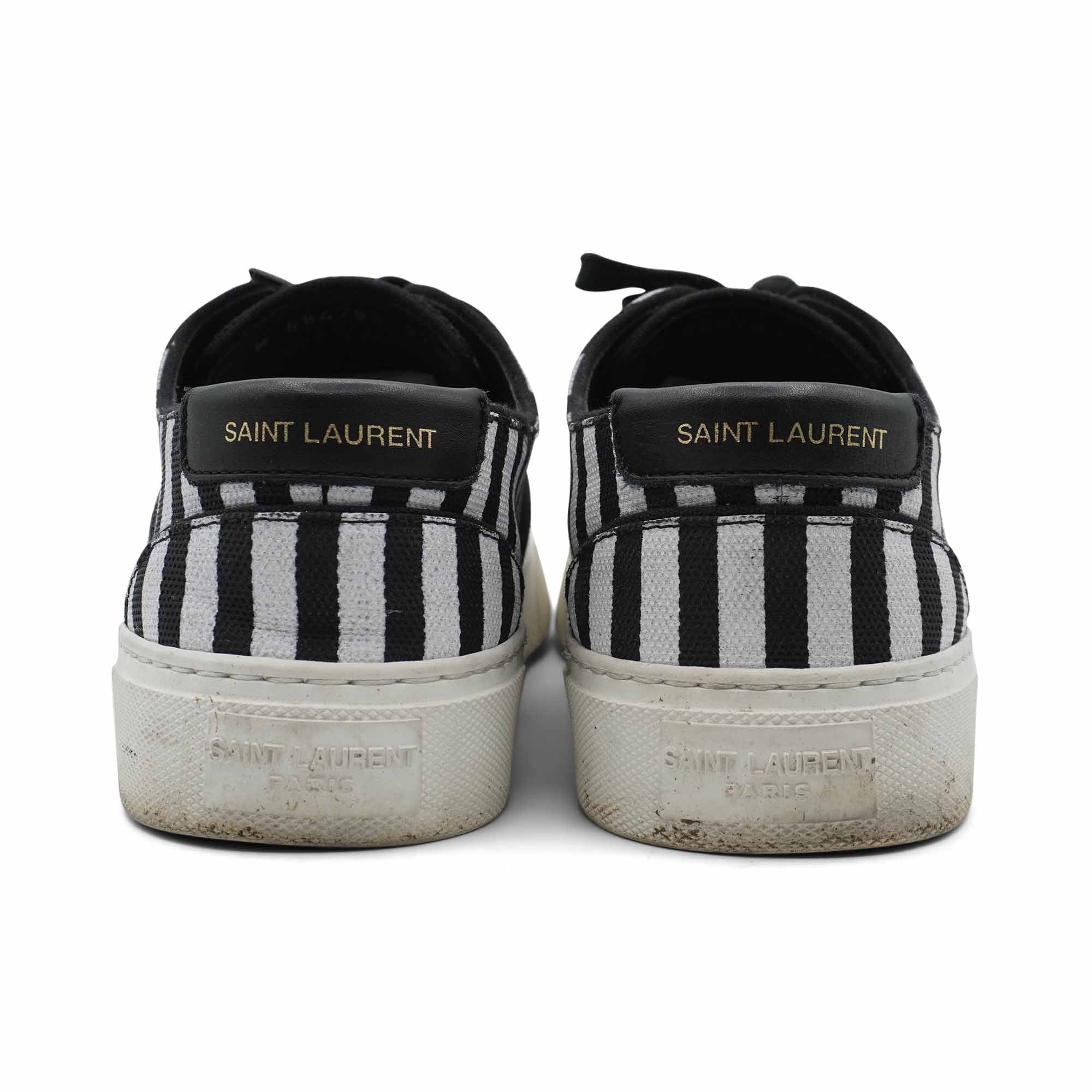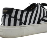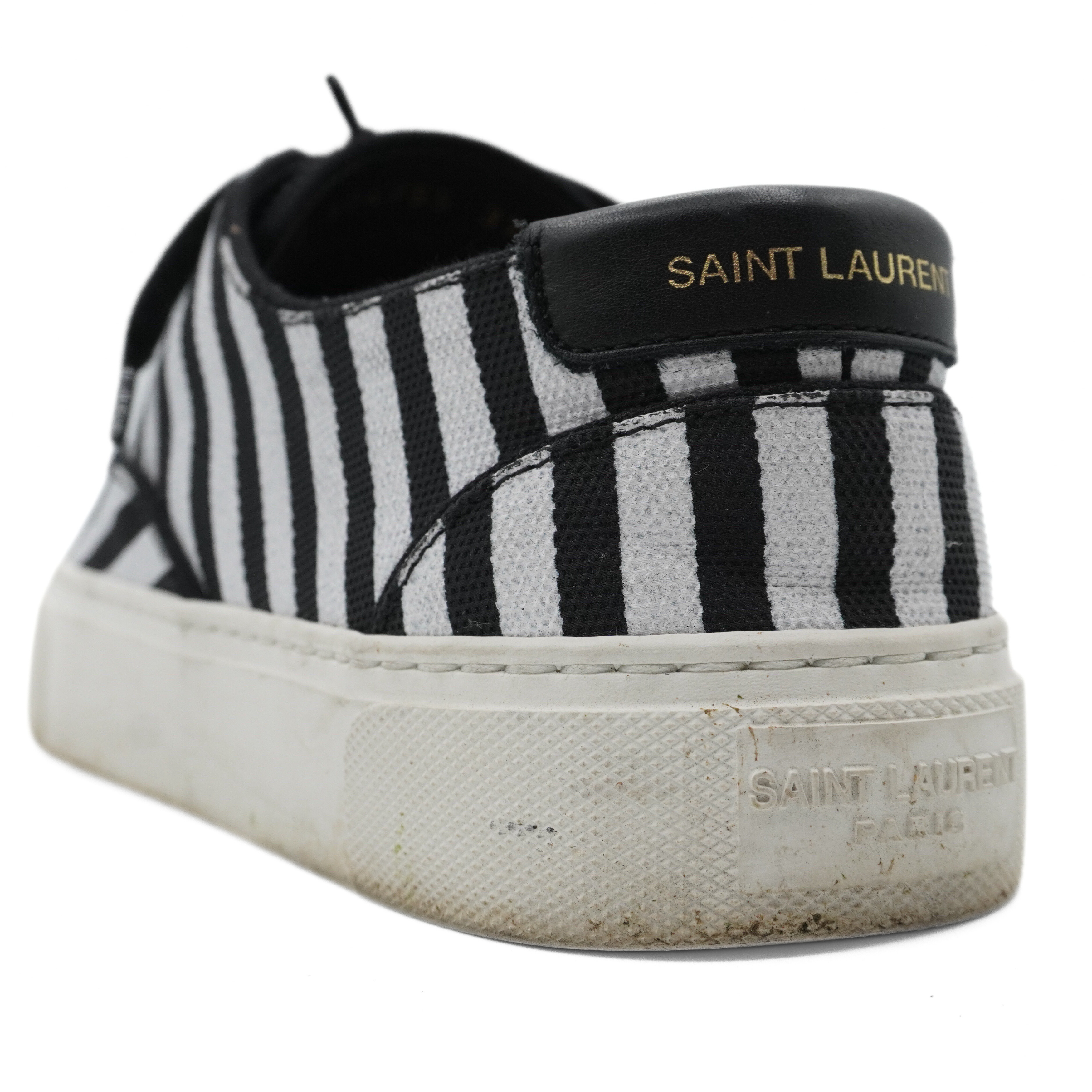 Saint Laurent 'Venice' low-top sneakers in black and white striped canvas with black laces and a white rubber sole.