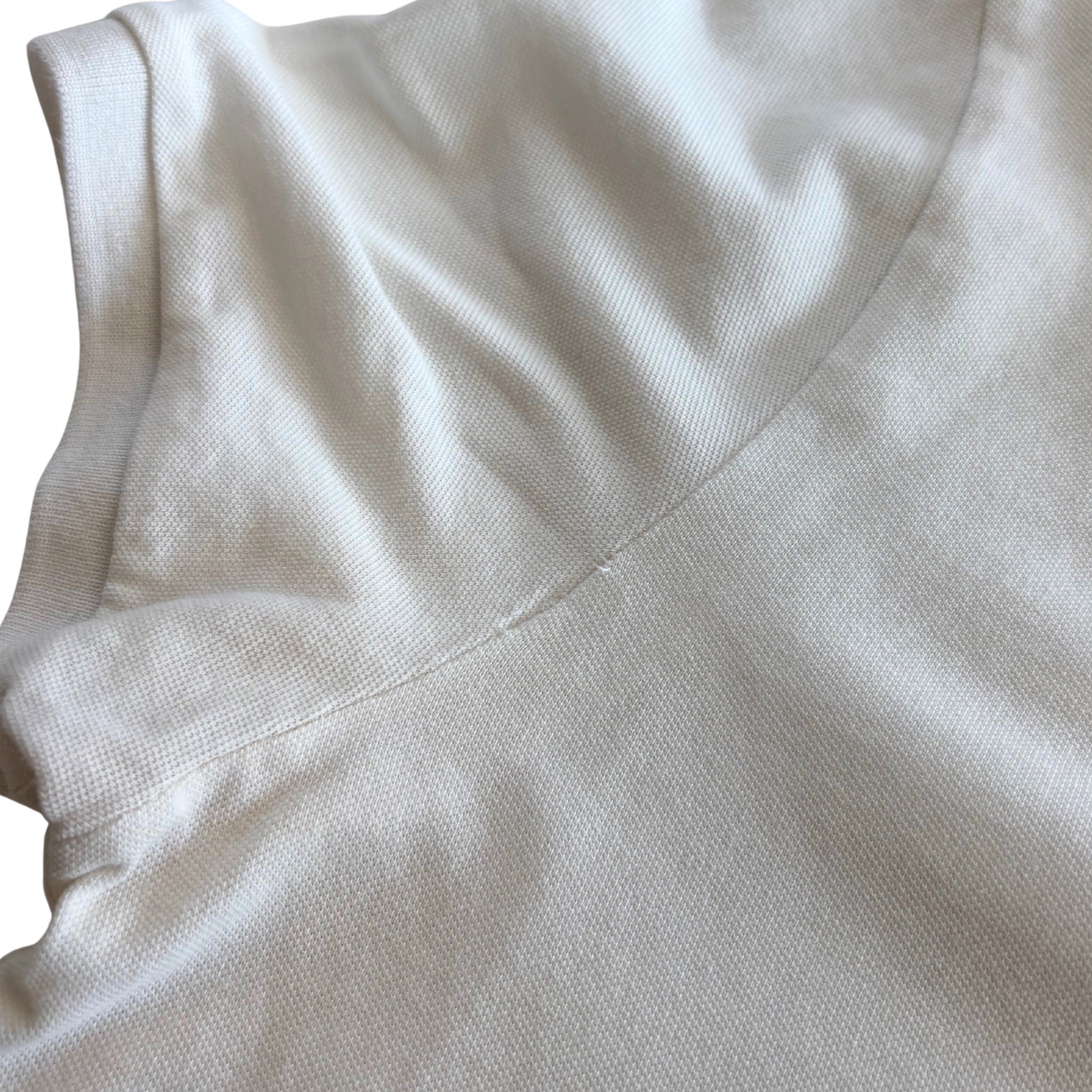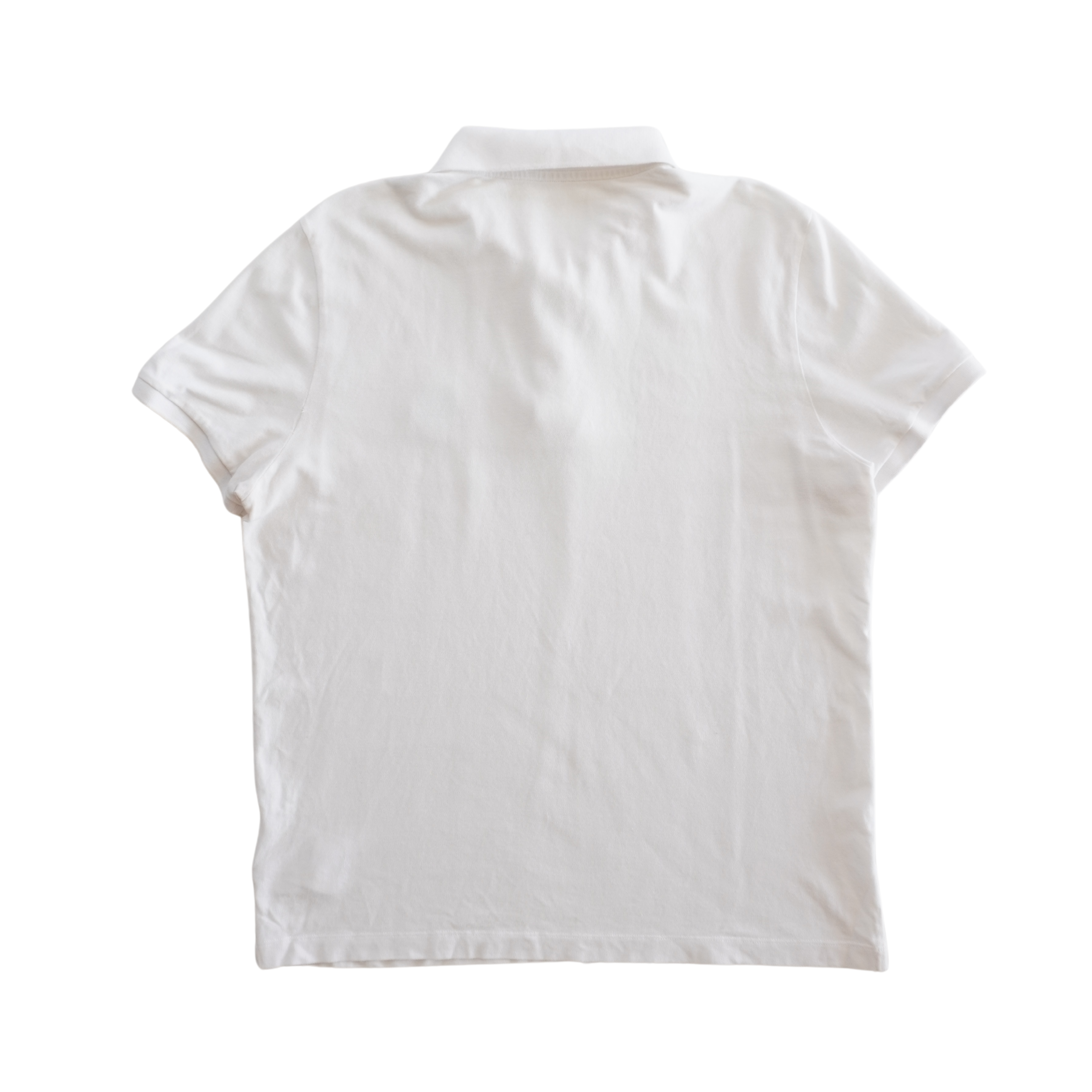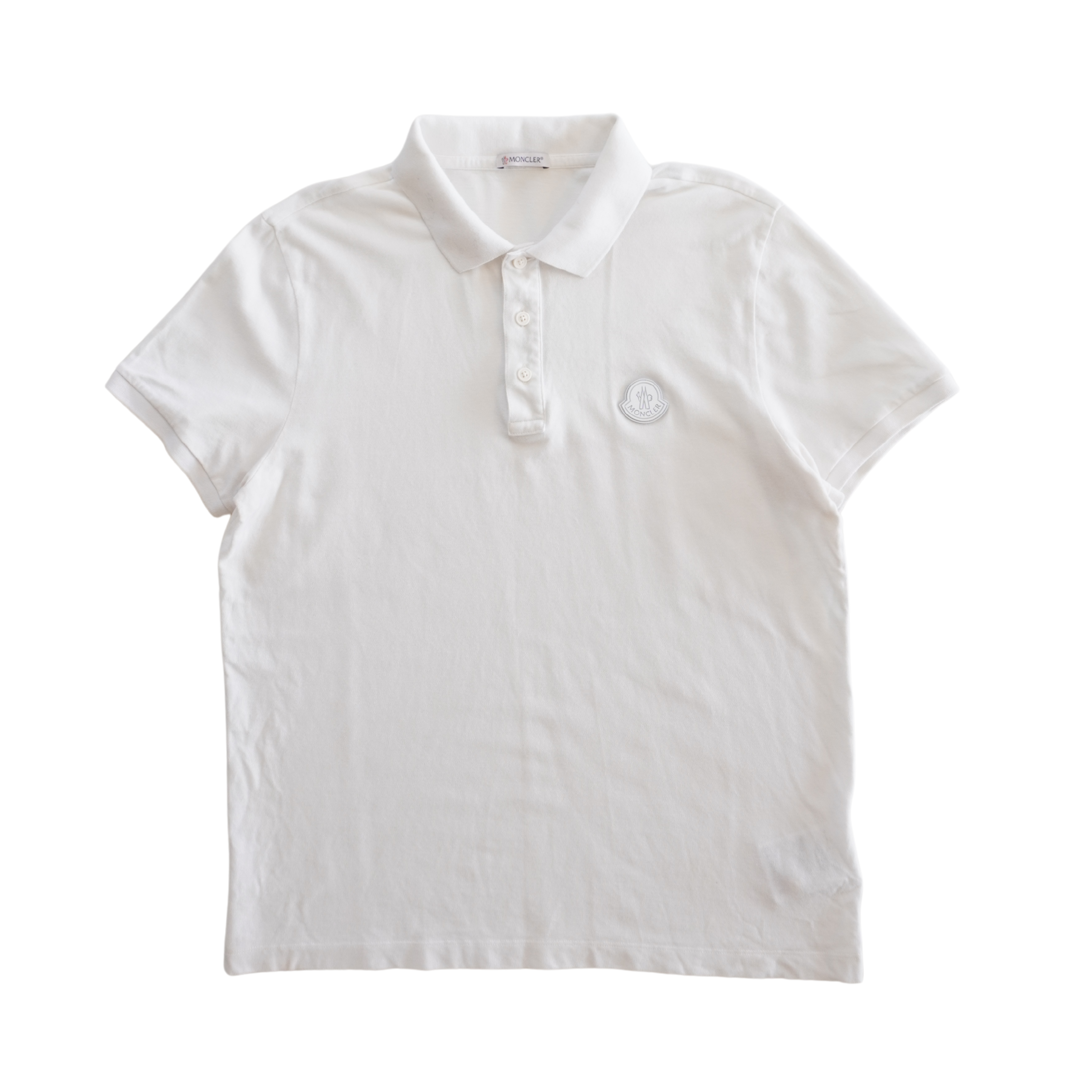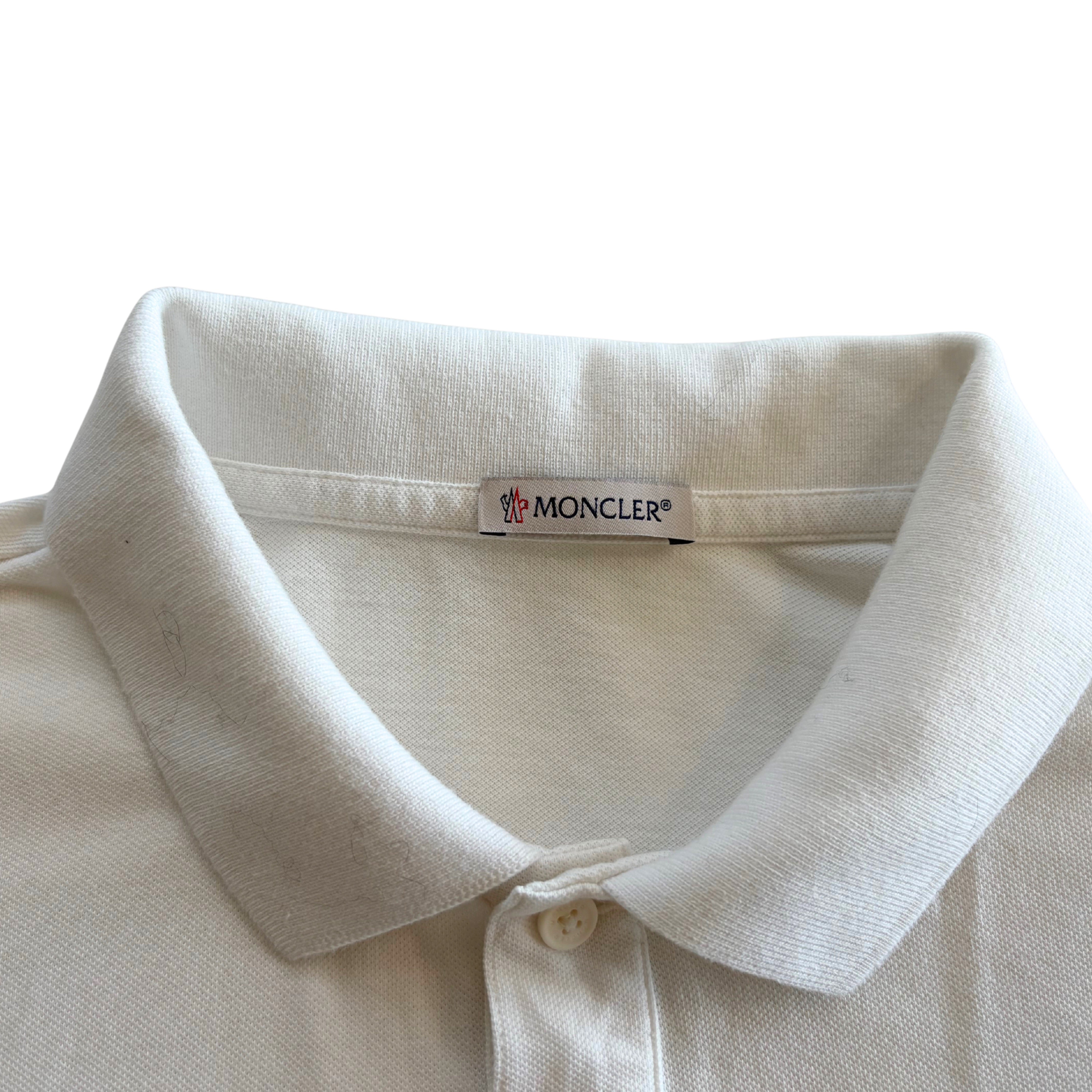 Moncler polo T-shirt in white cotton with a white rubber logo on chest and partial button placket.