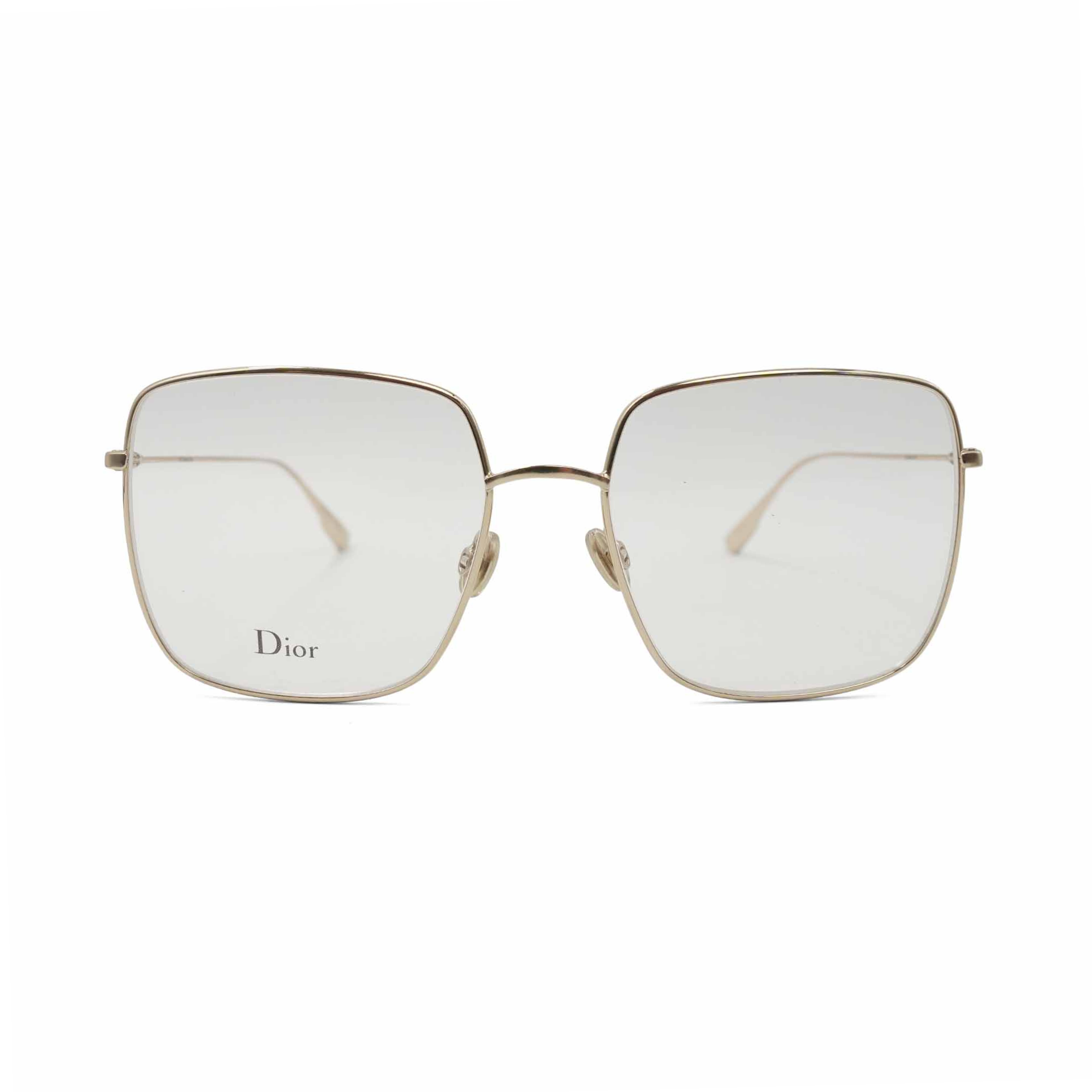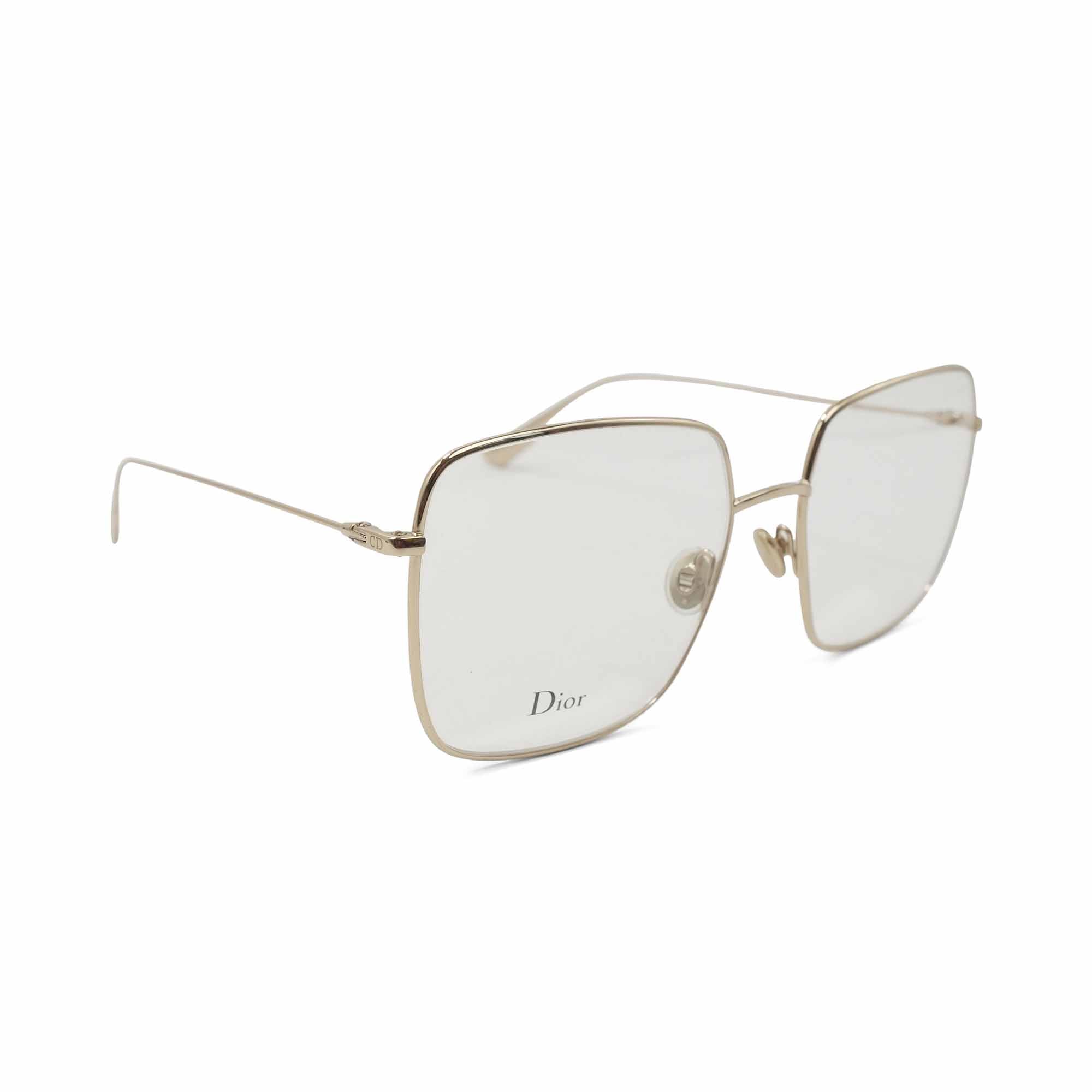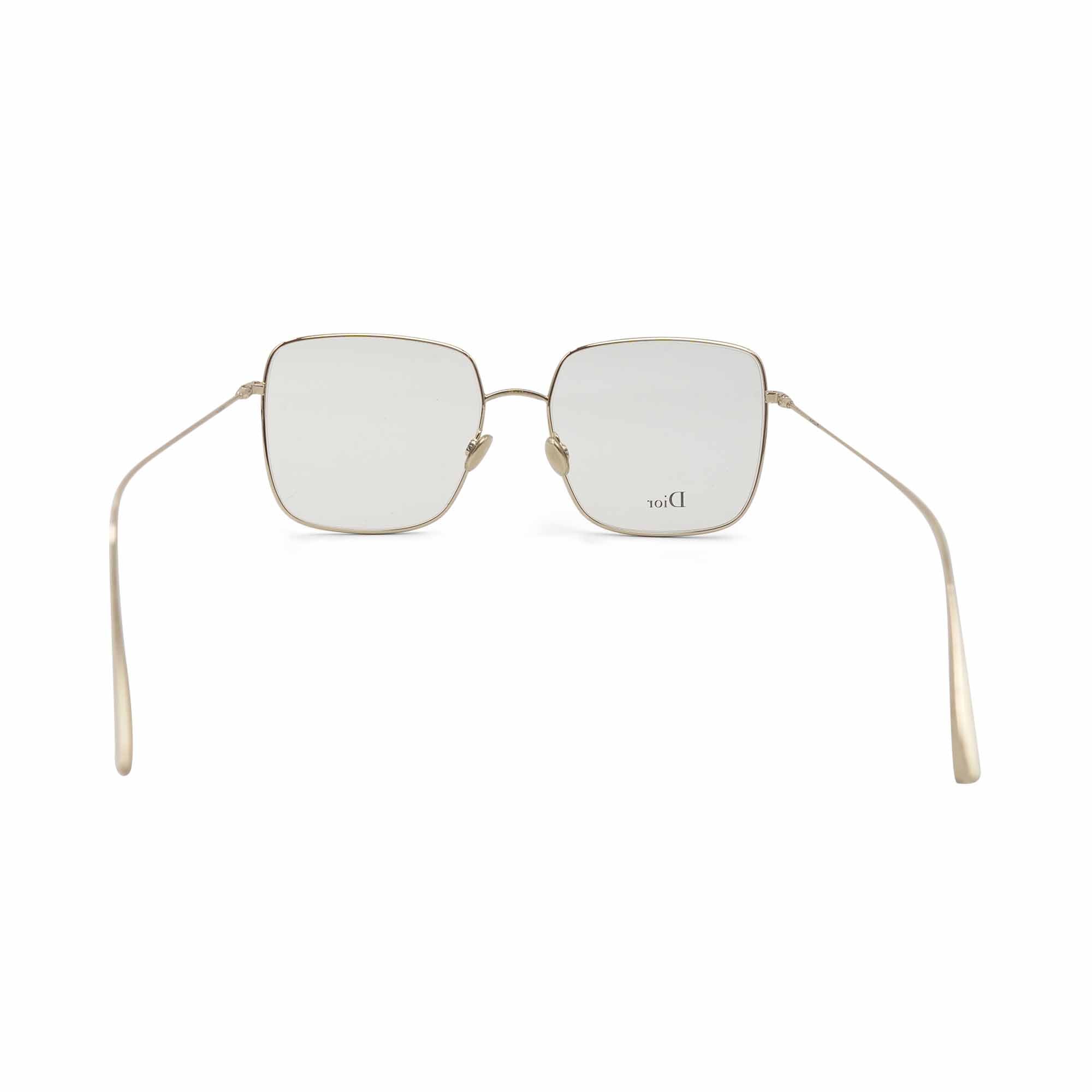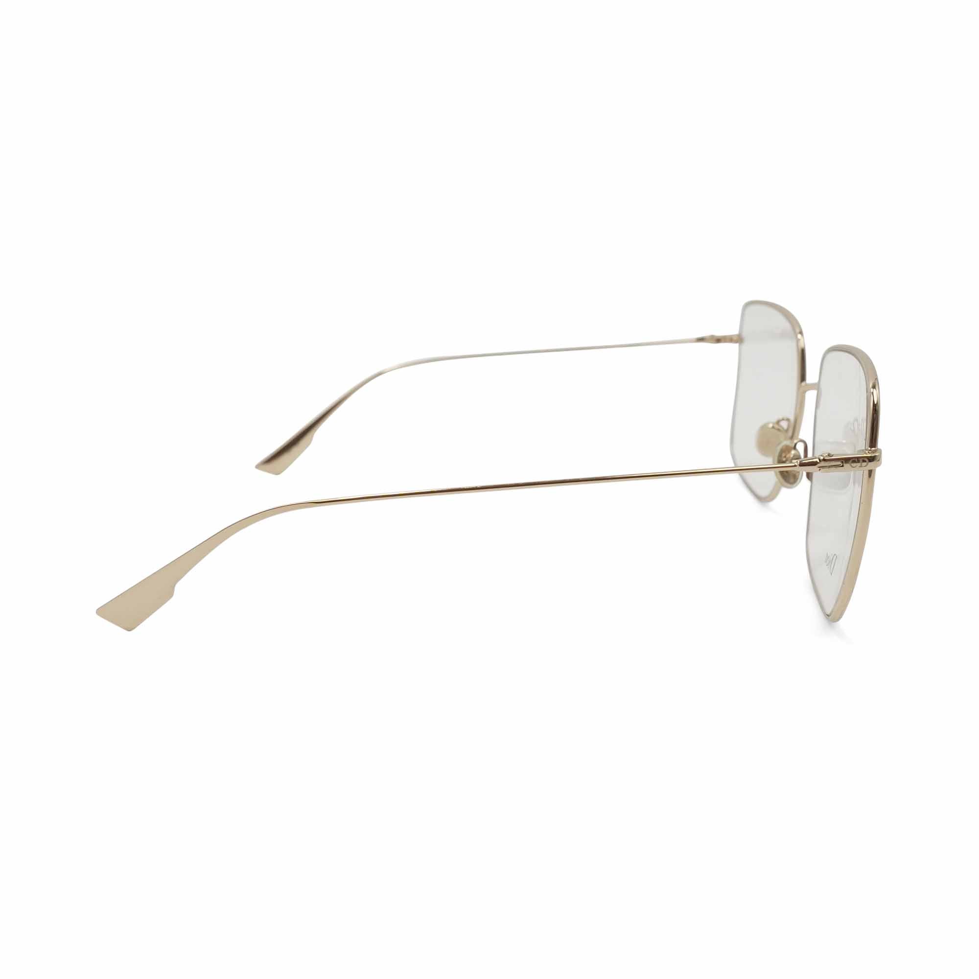 Christian Dior 'Stellaire01' eyeglasses in soft gold metal with oversized square lenses and a small logo on the lens.