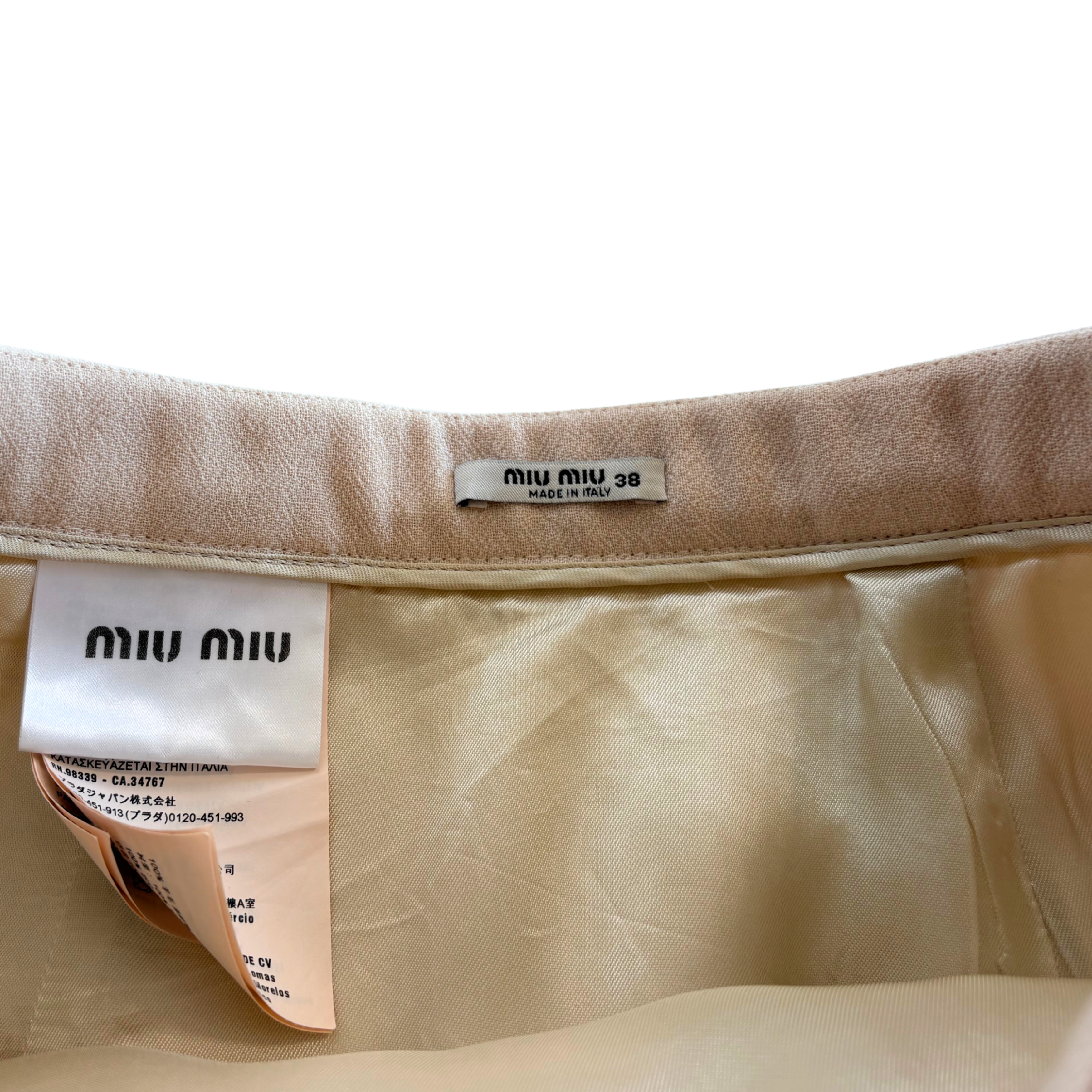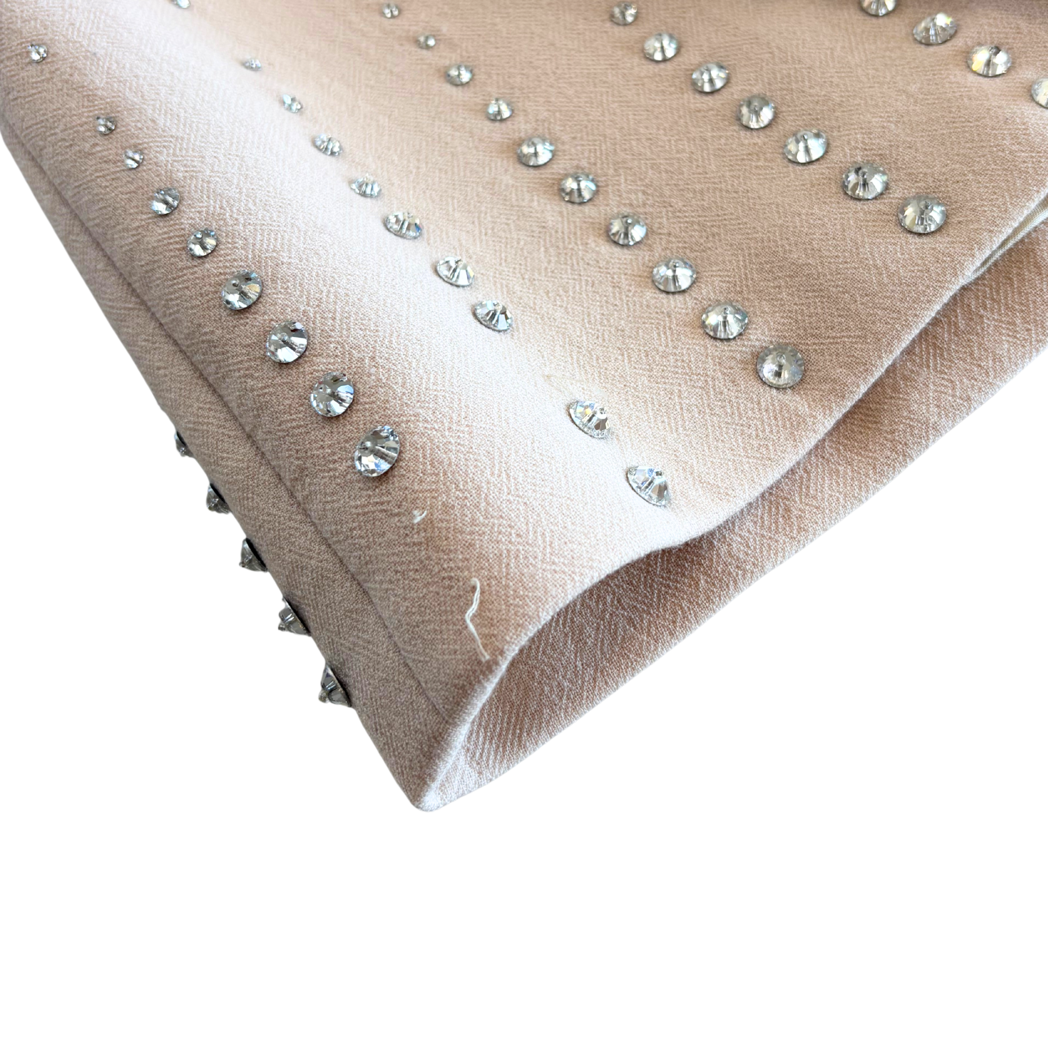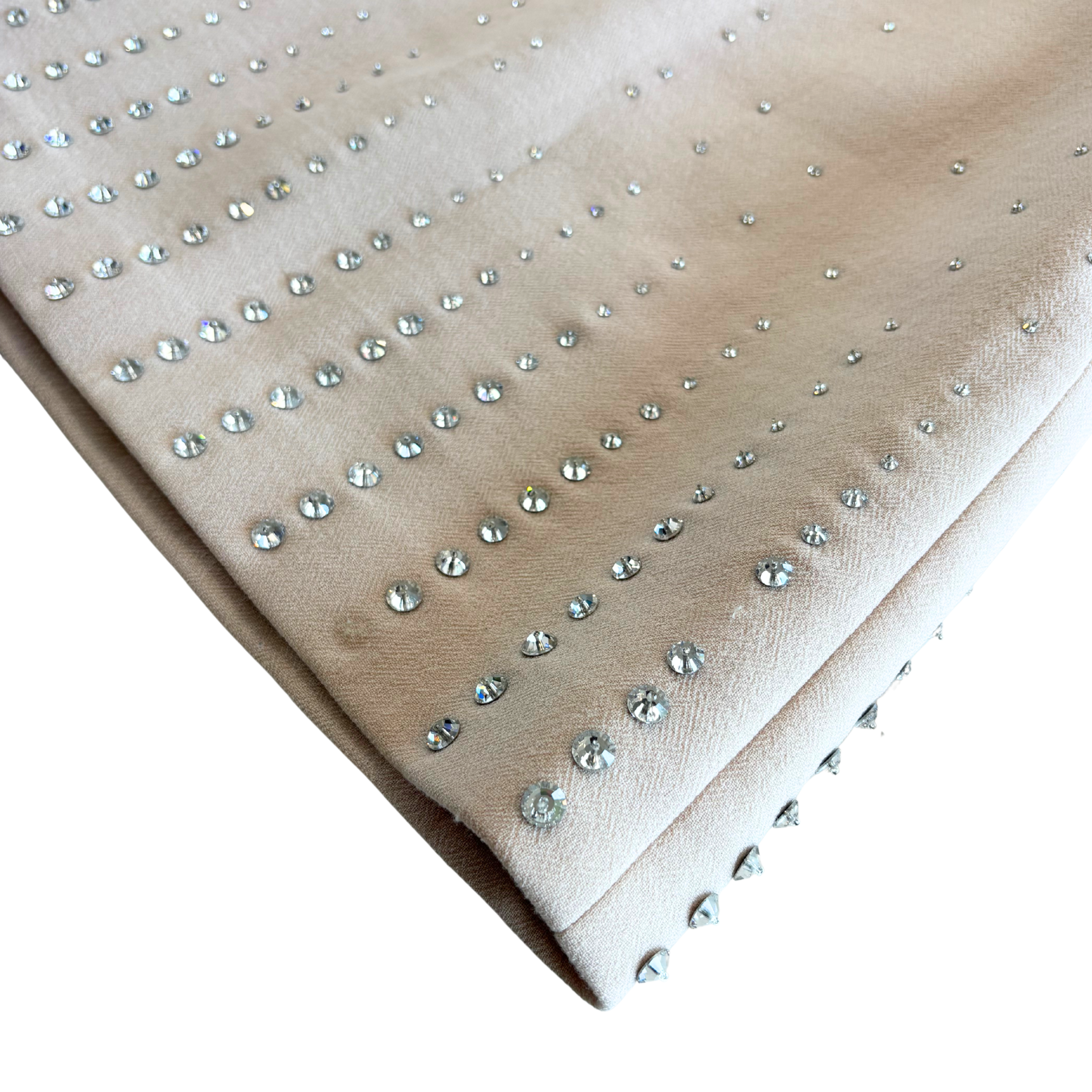Miu Miu mini skirt in light pink wool with graduated rhinestones stripes and invisible tonal zipper.