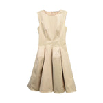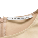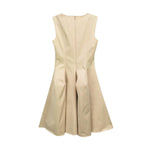 Agnona a-line sleeveless dress in nude beige. Features a flared knee-length skirt with large pleats and a back-zip closure.