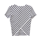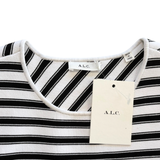 ALC 'Dayle' t-shirt in black and white striped thick knit viscose with a layered crossover detail on the back.
