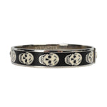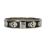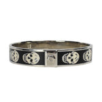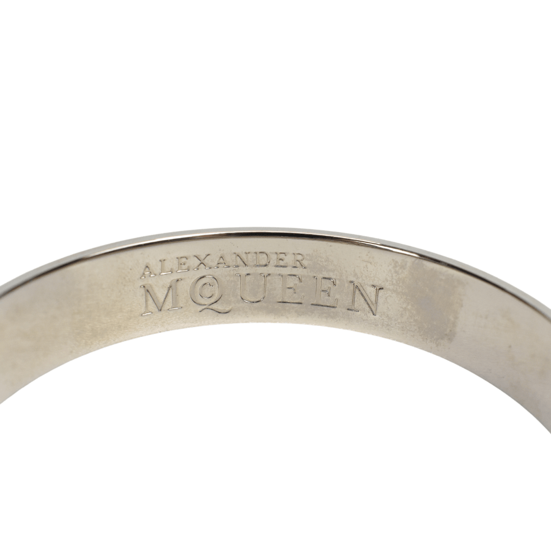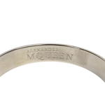 Alexander McQueen silver bangle bracelet with black and white enamel skulls