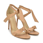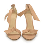 Alexandre Birman heels in nude beige leather with an ankle tie and a bow on the strap.