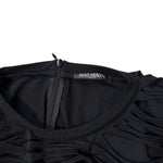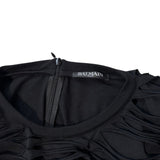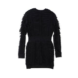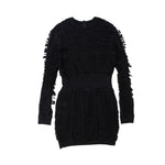 Balmain black long sleeved mini dress with a slashed top layer and opaque lining.