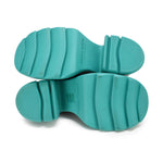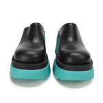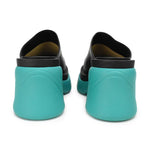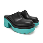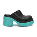 Bottega Veneta mule in black leather with a turquoise chunky sole.