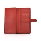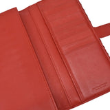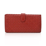 Bottega Veneta wallet in red intrecciato woven leather with flap push button closure. Features card slots, inner slots and cash slots.