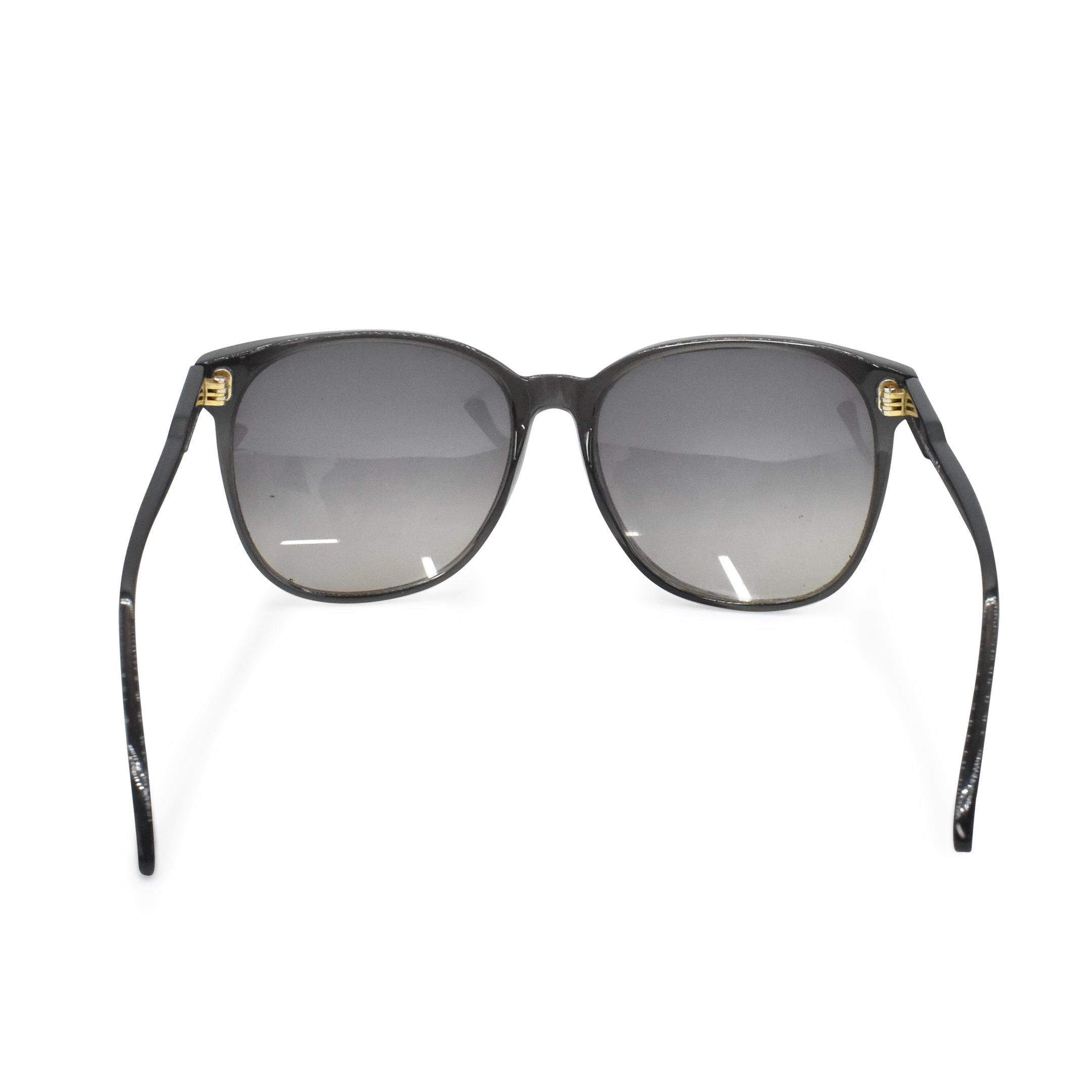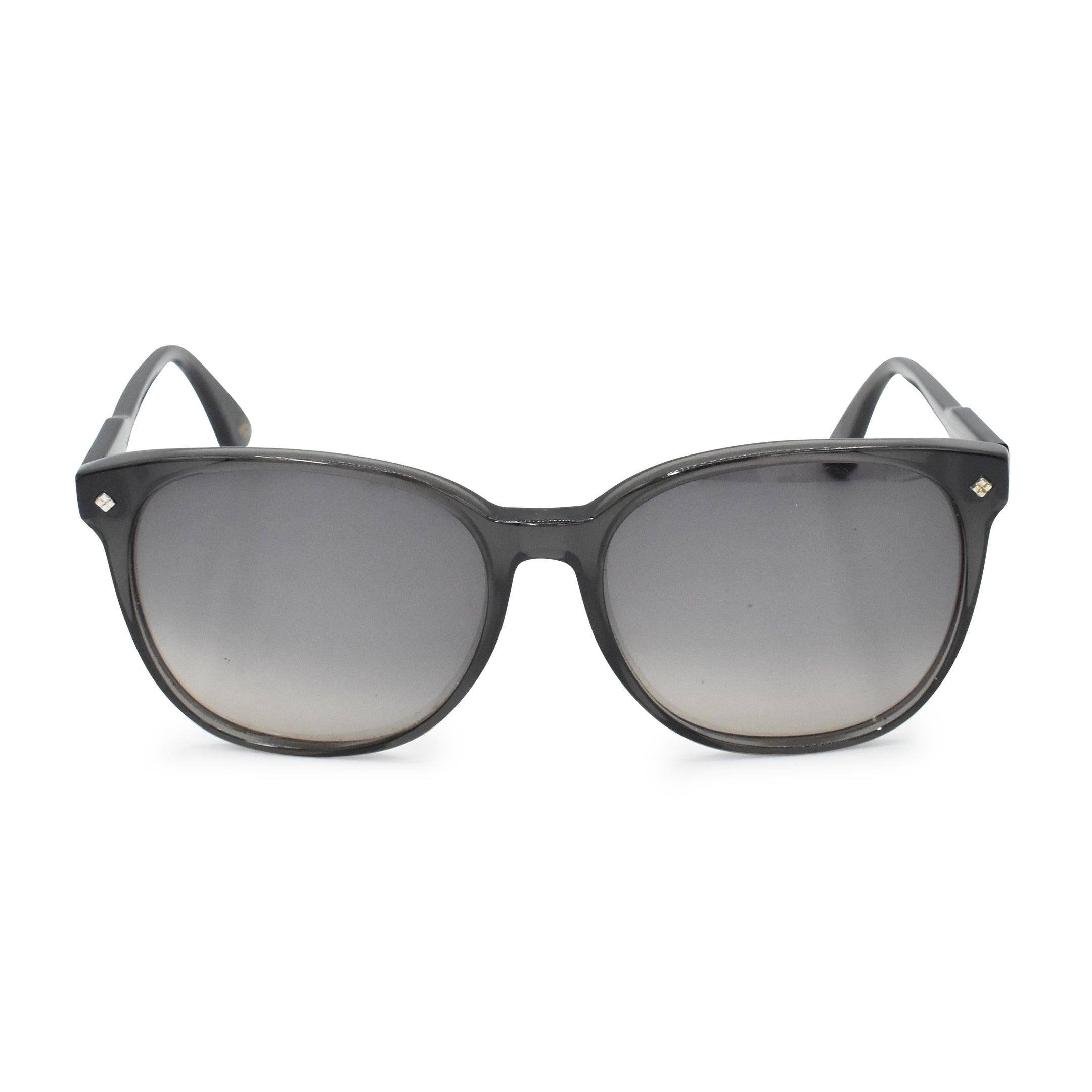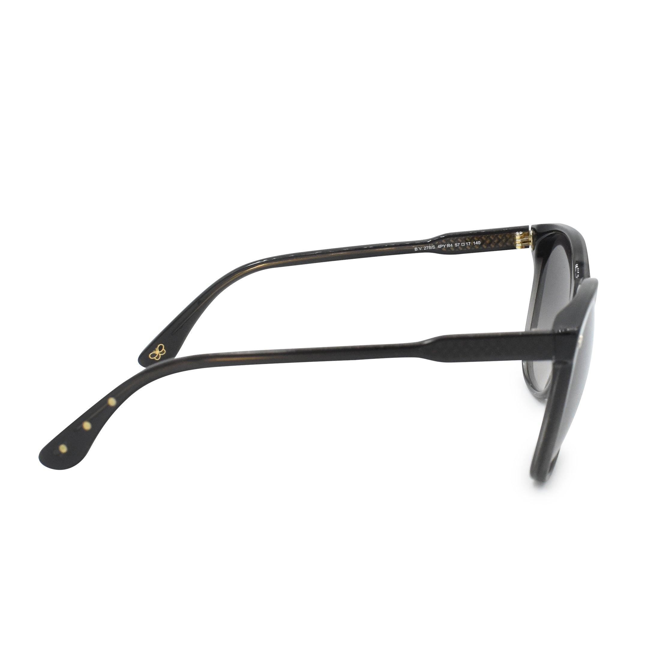 Bottega Veneta rounded sunglasses with black acetate frame and gold hardware. Features quilted design on arms.