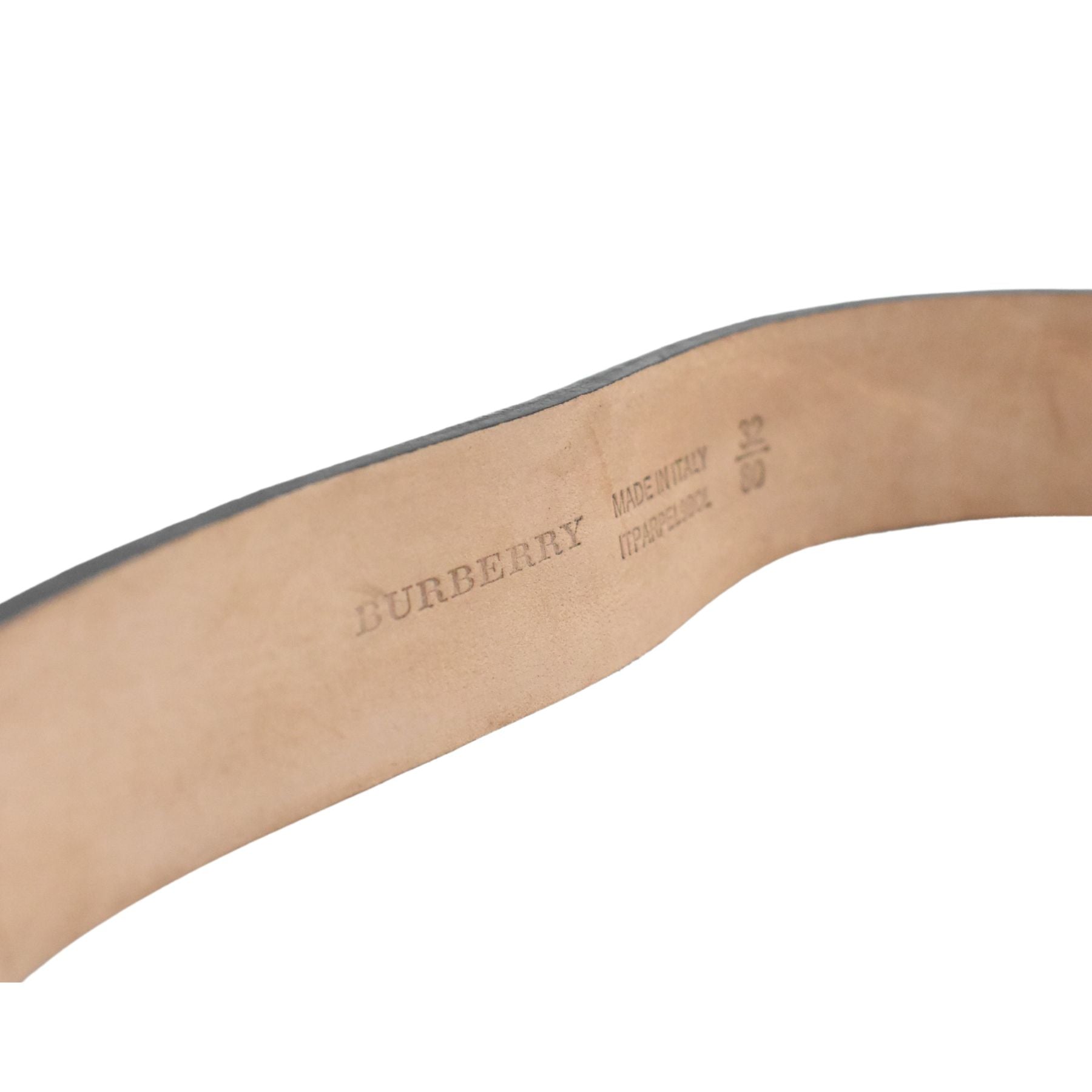 Burberry belt in brown check-embossed leather with a gold square logo buckle.