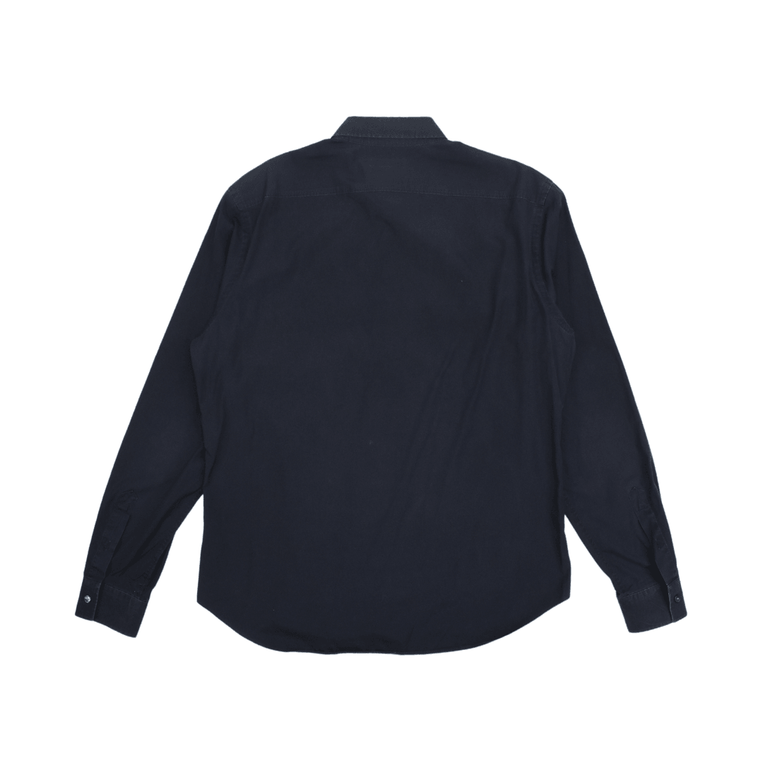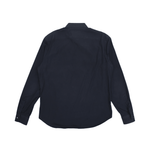 Burberry Brit button-down shirt in navy cotton with pearlescent grey buttons and a novacheck detail on the inner collar.